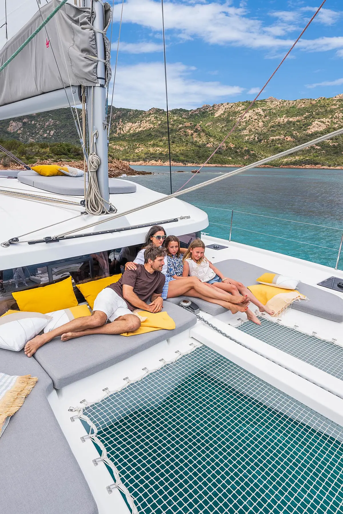 Dinghy, Teak Deck, Air Conditioning, Watermaker, Generator, Inverter, Electric Toilet, Underwater lights, Gangway, Outboard engine, Indirect Lighting in cabins