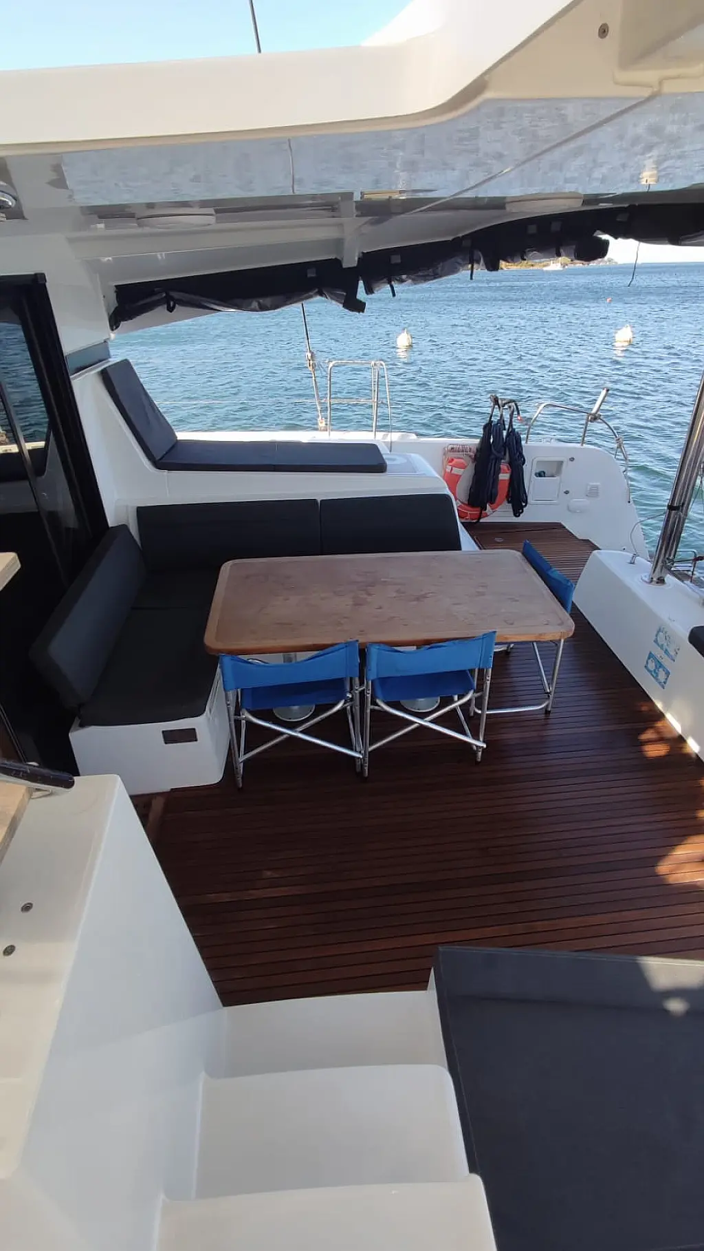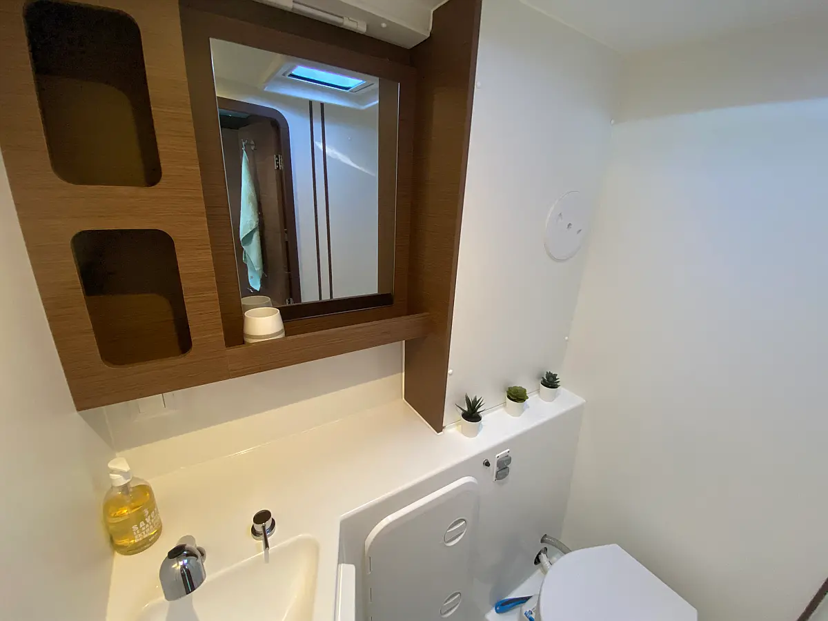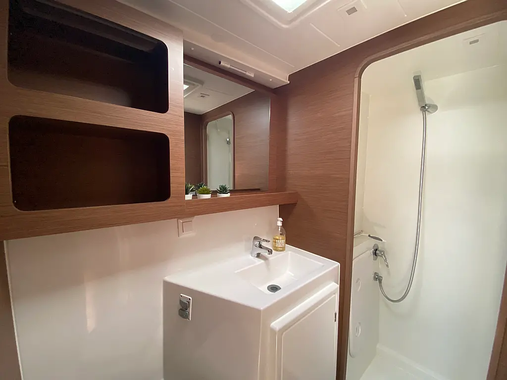 Deck shower, Bimini top, Connection cable, Sprayhood, Hot water, Cockpit table, Radio stereo, Fridge