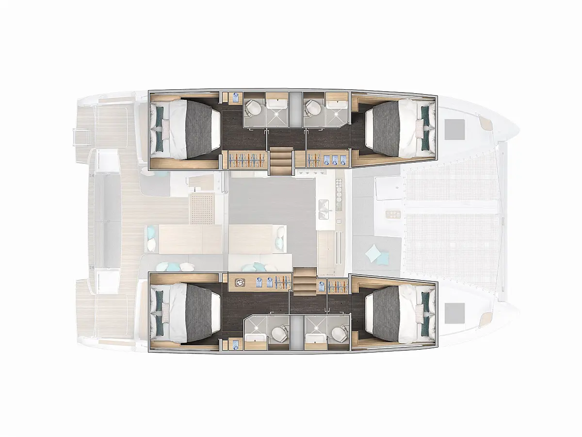Anchoring, Bimini, Cockpit speakers, Cockpit table, Cockpit upholstery, Davits, Dinghy, Dinghy motor, Flybridge, Mooring lines, Outside shower, Roof protection, Steering wheel, Sunbathing, Swimming ladder, Teak cockpit, USB