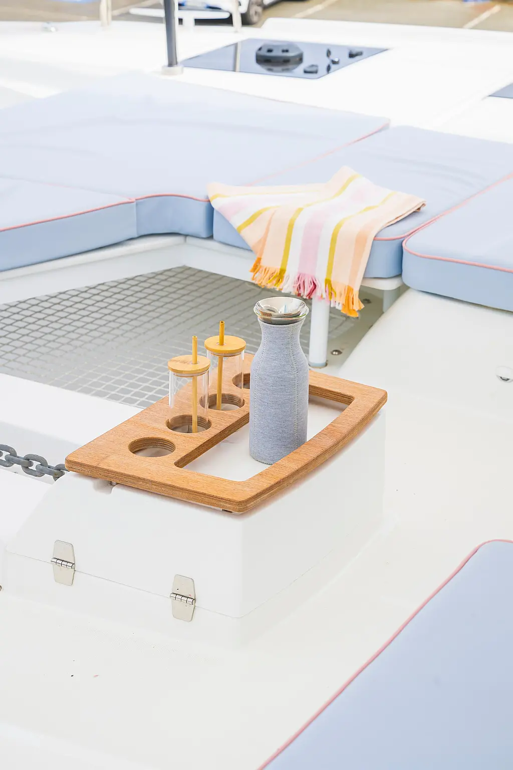 Frigorifero, Dissalatore, Altoparlanti in pozzetto, Aria condizionata, Riscaldamento, Bimini, Flybridge, Teak in pozzetto , Ponte in Teak, Macchina del ghiaccio, Macchina da caffè, Generatore, Inverter, Motore fuoribordo, Tender