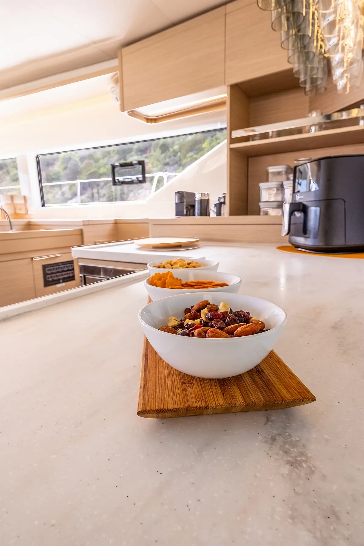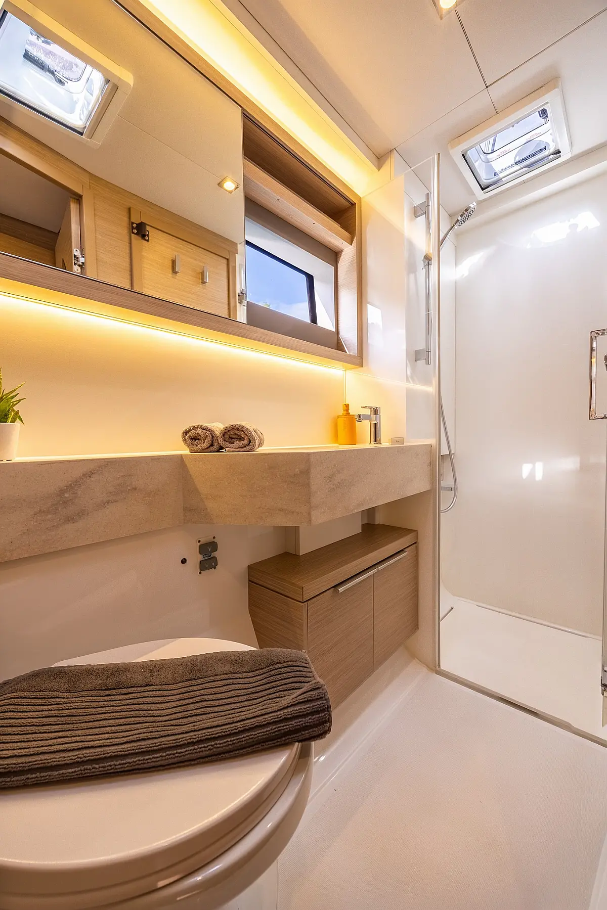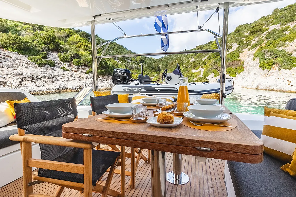 Ice-Maker, Teak Deck, Air Conditioning, Bimini (Hard Top), Watermaker, Generator, Inverter, Electric Toilet, Electric winch, Underwater lights, Gangway (Hydraulic), Large Flybridge