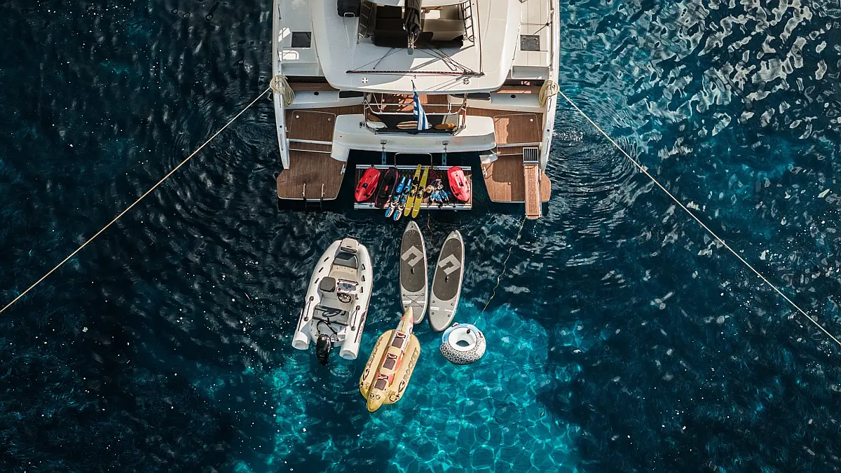 TV, Underwater scooter, WiFi, Snorkeling Equipment, Waterski (adult & junior), Wakeboard, SUP (2), Luxury 3.30m dinghy with center console steering with 40HP engine, Towable tubes (banana & airstream)