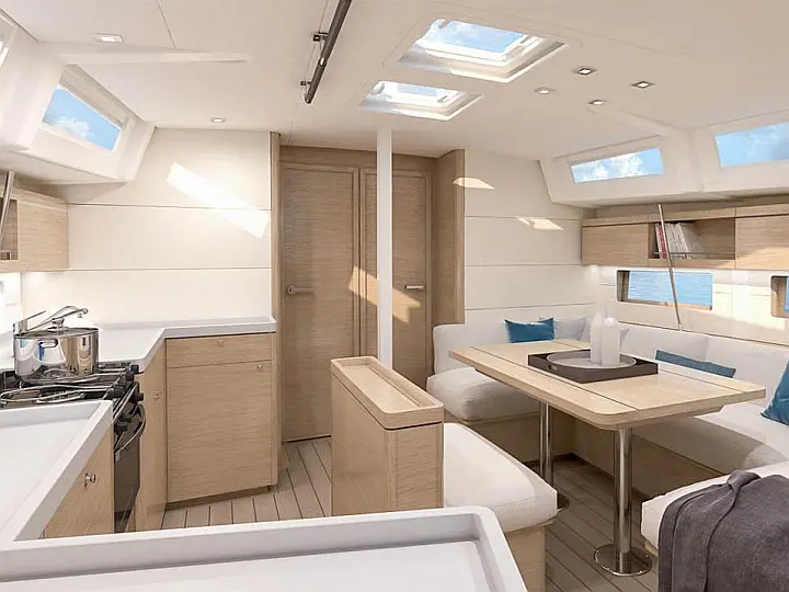 Cockpit table, Locker (3), Compass (at helm station), Bimini, Liferaft locker (1), Hardtop cover, Electric grill, LED floor lighting, Wetbar (with sink, faucet and Corian worktop)