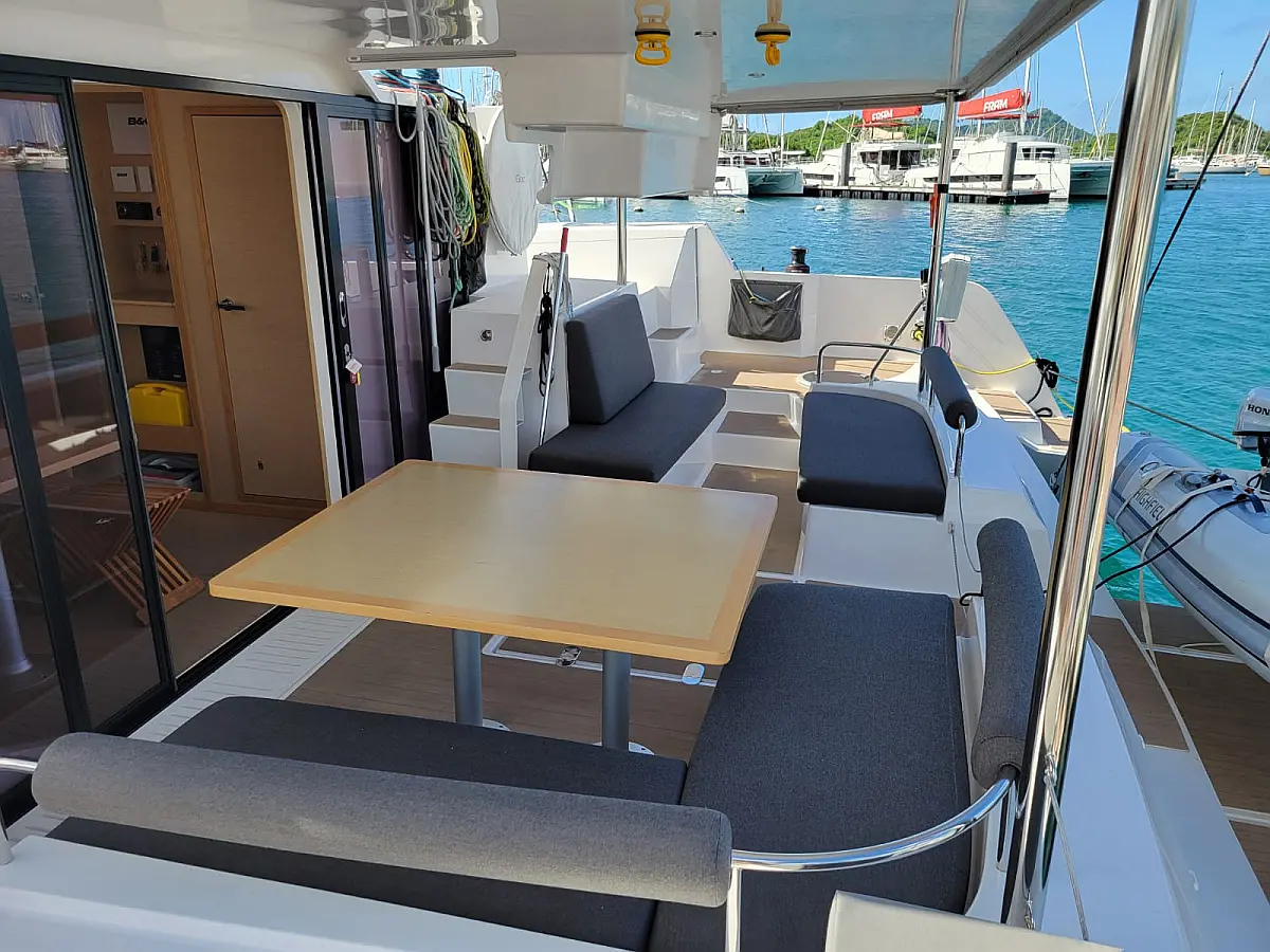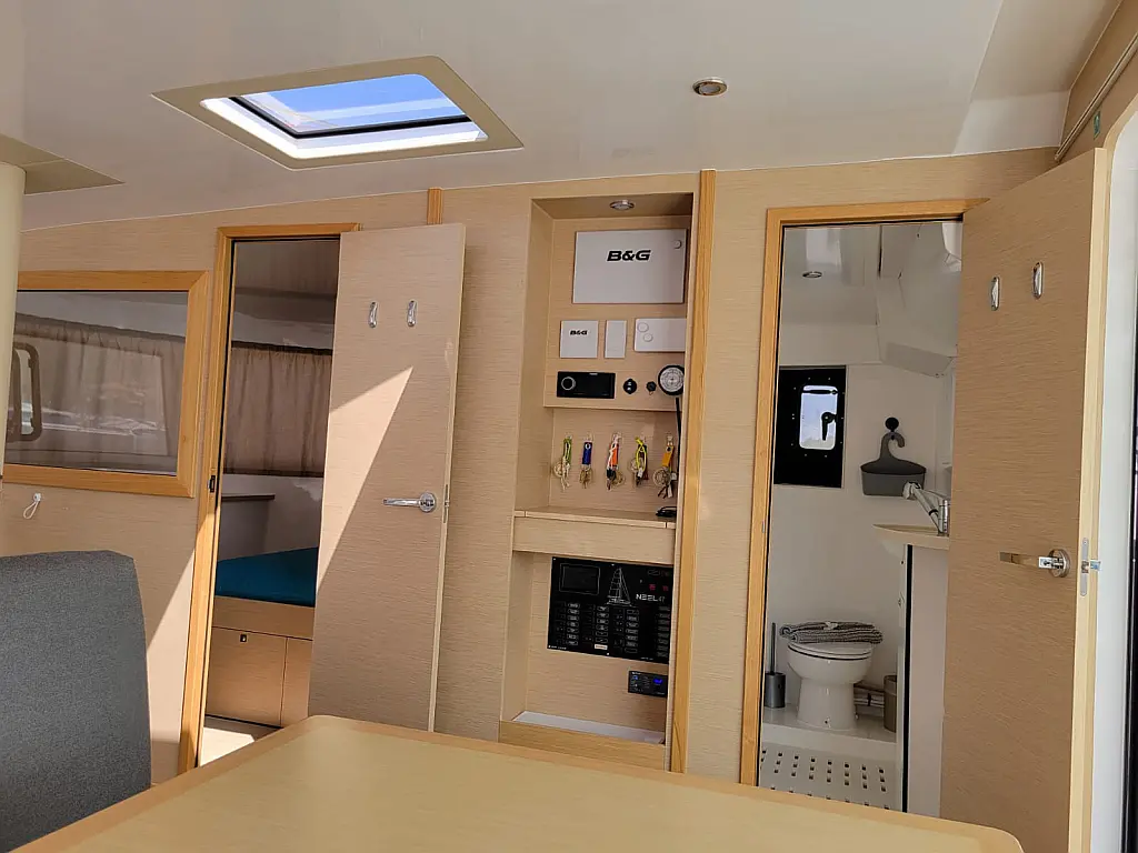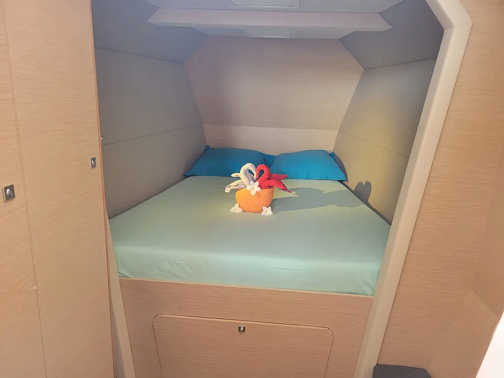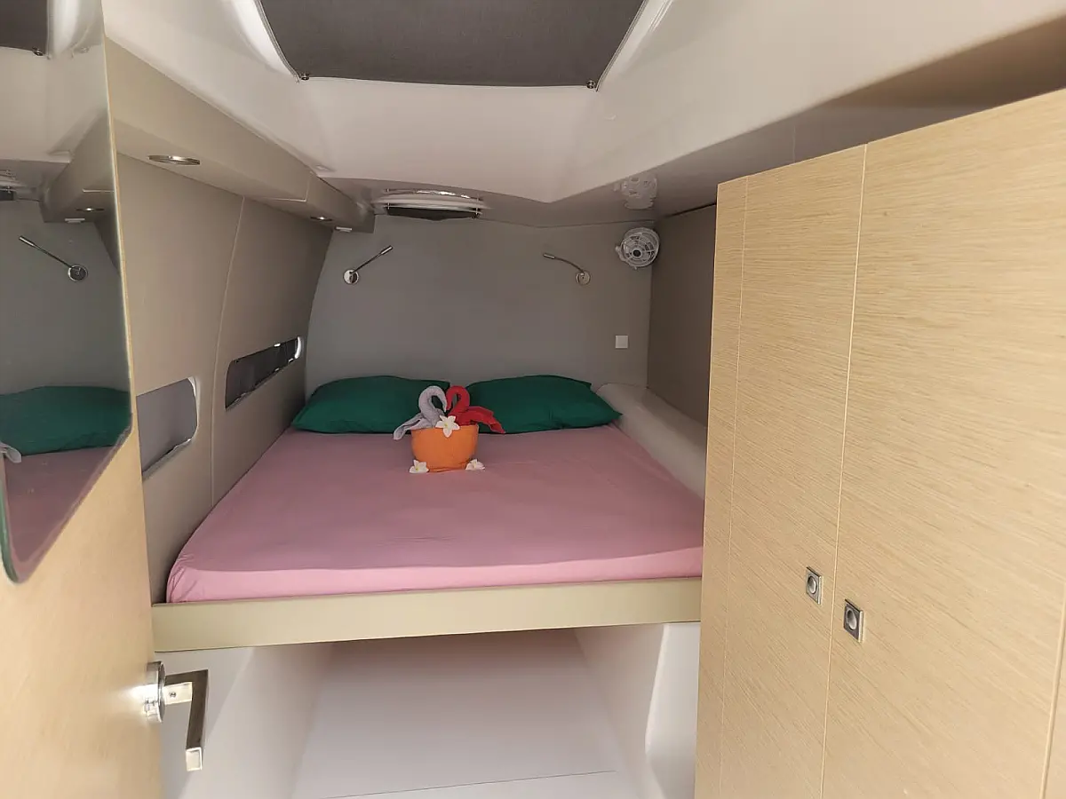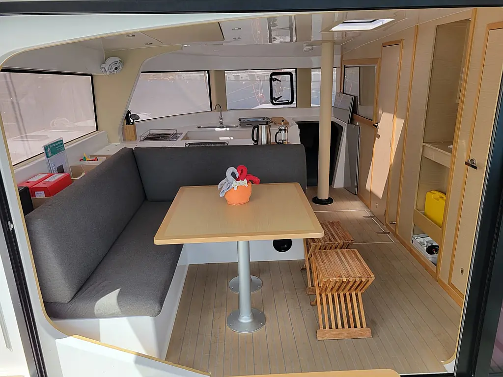 Cockpit bimini, Cockpit cushions, Electric windlass, Dinghy
