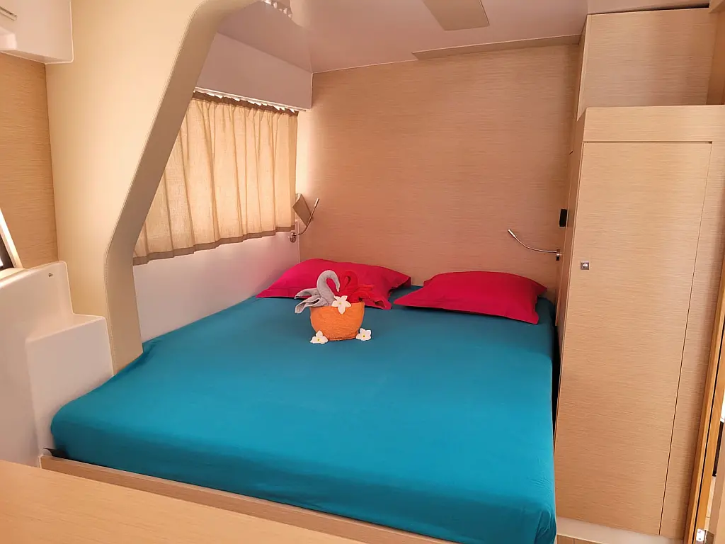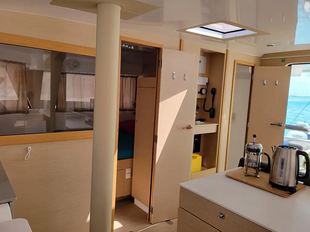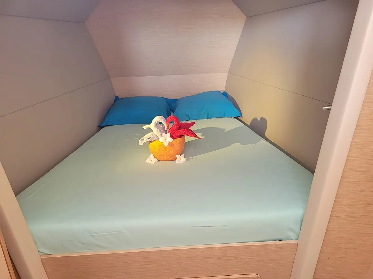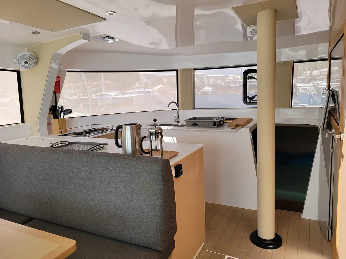Cockpit bimini, Cockpit cushions, Electric windlass, Dinghy