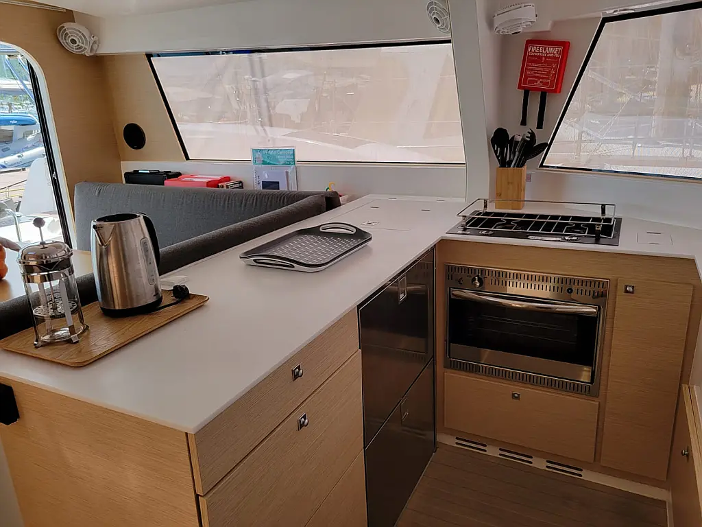 Oven, Hot water, Fridge, 12V/220V Converter, Solar panels, Water maker