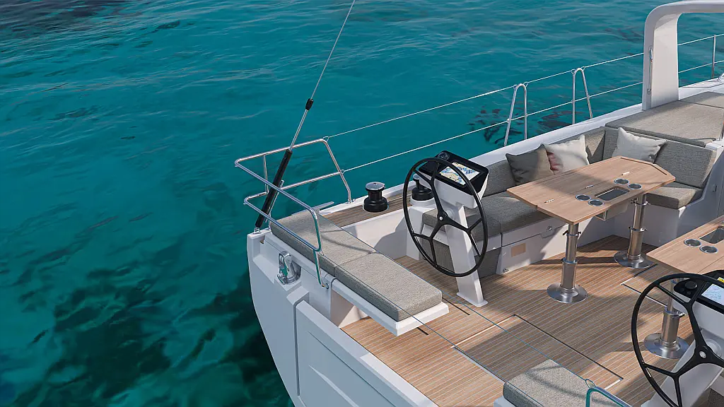 Altoparlanti in pozzetto, Aria condizionata, Bimini, Frigorifero, Generatore, Pannelli solari, Tender, WC elettrico, Macchina da caffè, Motore fuoribordo, Sprayhood
