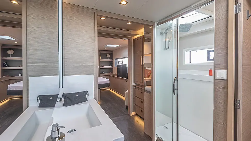 Generator, Air Conditioning, Electric Toilets, BBQ Gas Plancha, Outside Sink, Outside shower, Watermaker, Black Water Tank, Refrigerator/Freezer, Additional Fridge, Ice maker, Stove/Oven, Cockpit cushions, Outboard Engine, Dinghy (4 m)