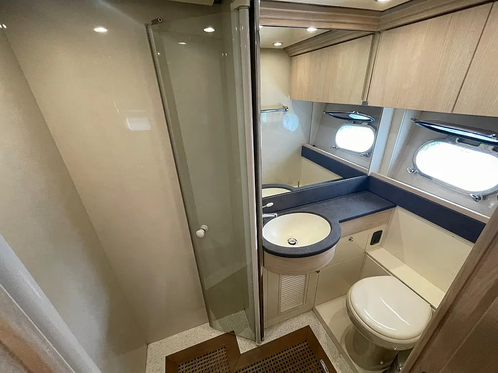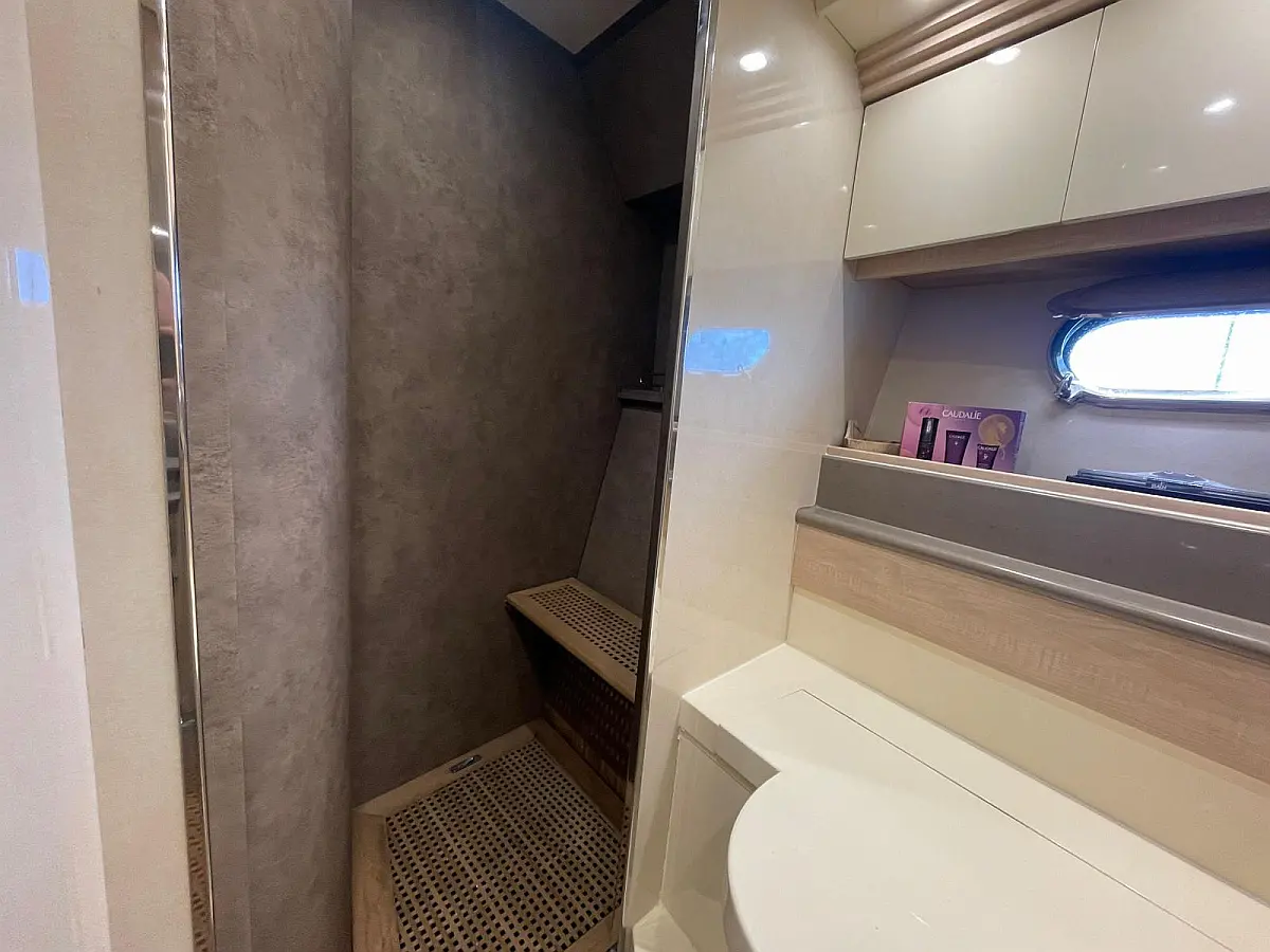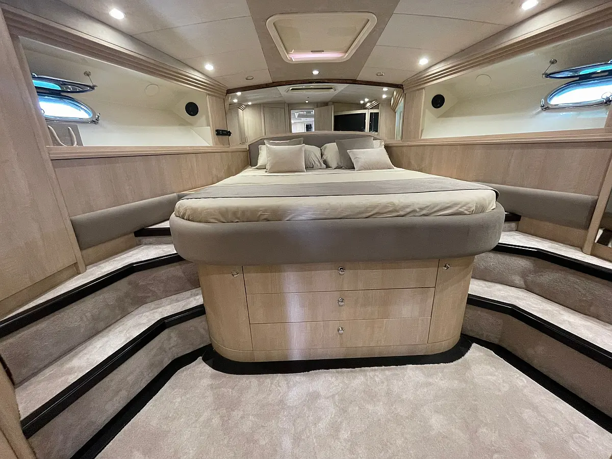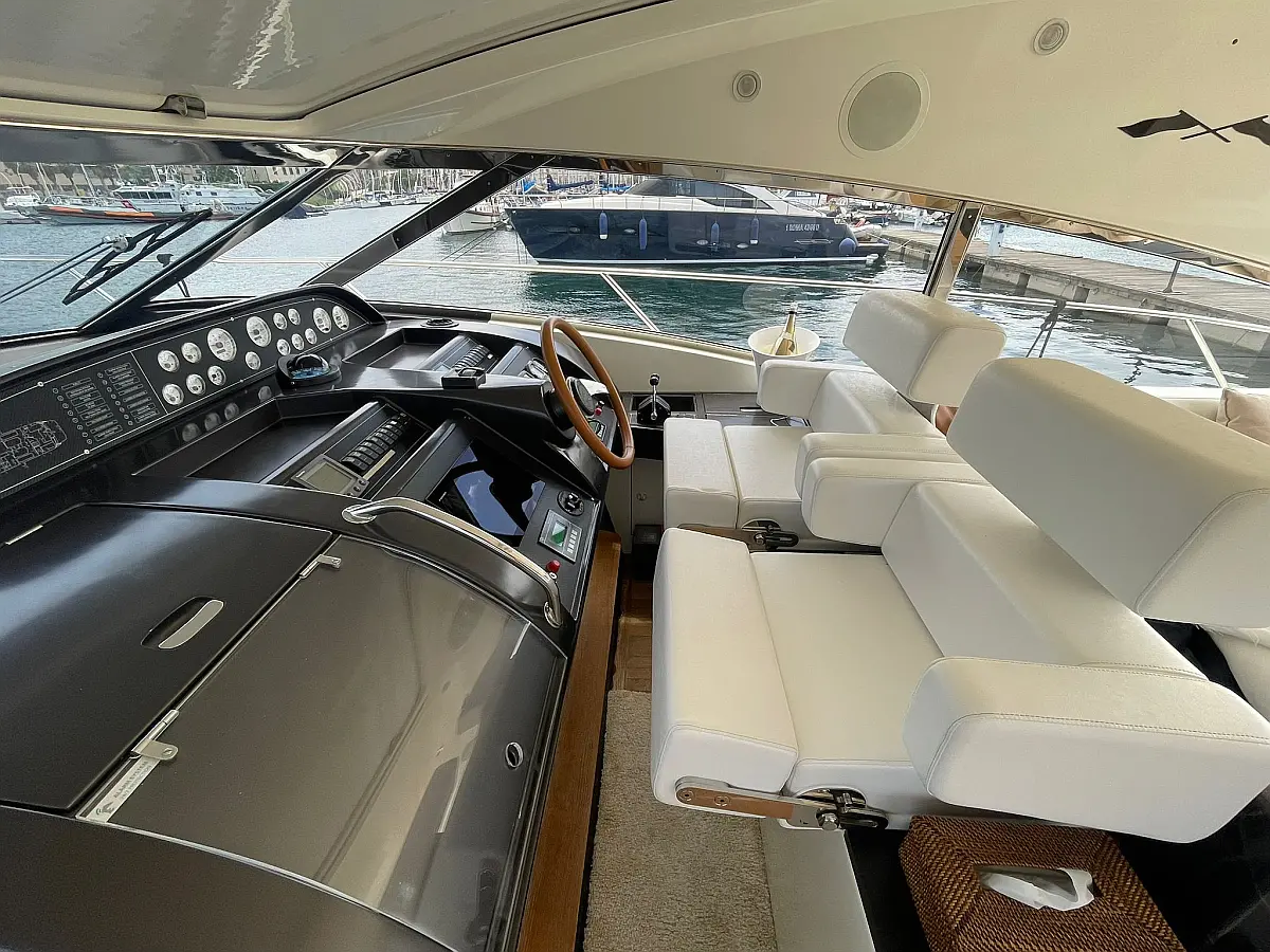Autopilot, Bow thruster, Electric Generator, Fridge, Freezer, Sink, Hob, Oven, Watermaker, Coffee machine (electric), Cutlery and pots, Microwave oven, Ice Maker, Air Conditioning, Cushions on deck, Heating System, Covered shower, Radio CD / MP3 player / Audio system, Internal speakers, External speakers, Flat screen TV, Sunbathing cushions, External GPS plotter, Inverter, Radar, Teak deck (entire deck), Bimini, Bathing platform