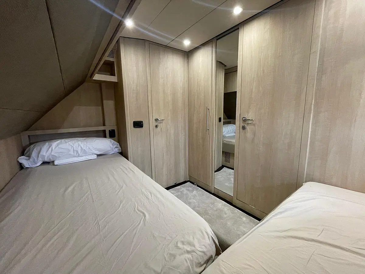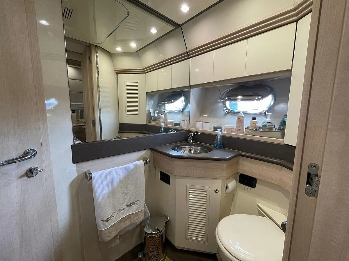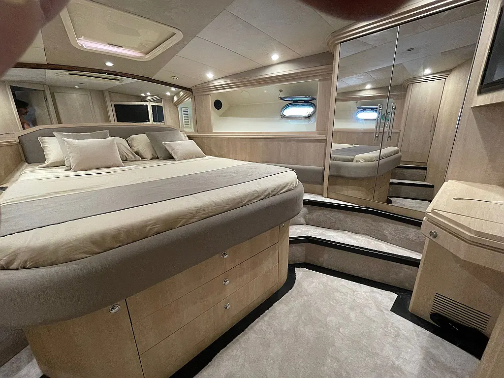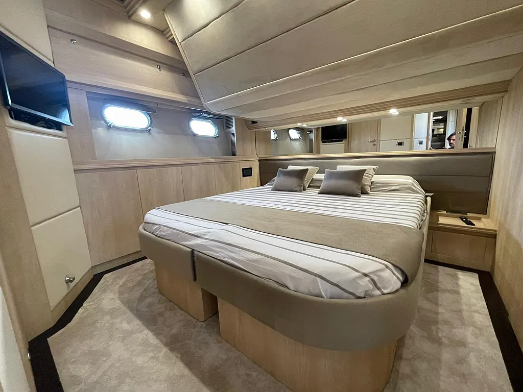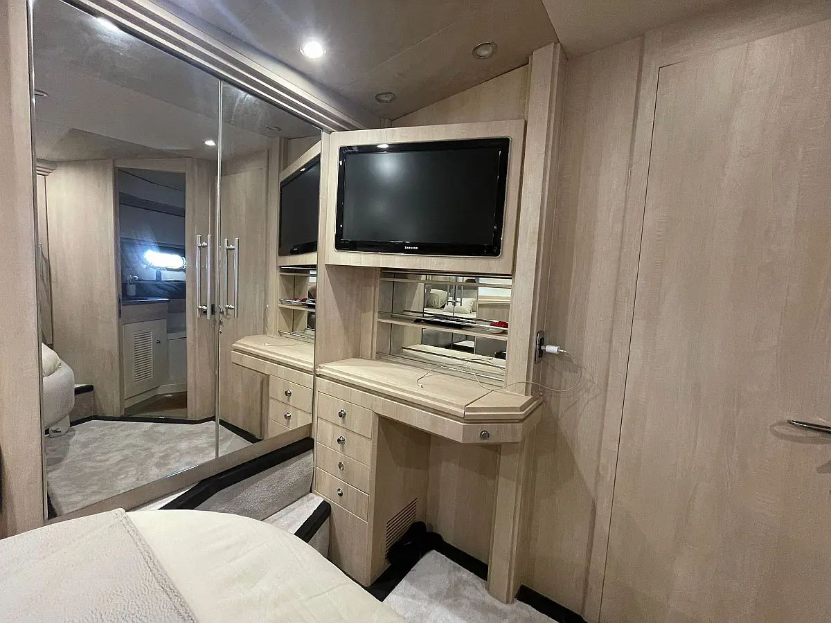 Autopilot, Bow thruster, Electric Generator, Fridge, Freezer, Sink, Hob, Oven, Watermaker, Coffee machine (electric), Cutlery and pots, Microwave oven, Ice Maker, Air Conditioning, Cushions on deck, Heating System, Covered shower, Radio CD / MP3 player / Audio system, Internal speakers, External speakers, Flat screen TV, Sunbathing cushions, External GPS plotter, Inverter, Radar, Teak deck (entire deck), Bimini, Bathing platform