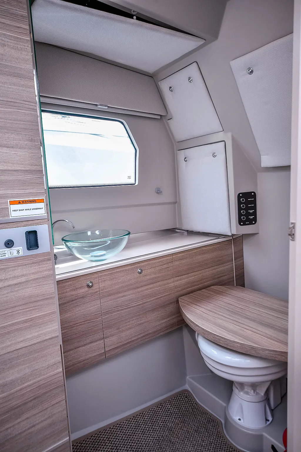 Aft bench cushions, Forward cockpit cushions, Electric toilet head with fresh water, Aft back cushions