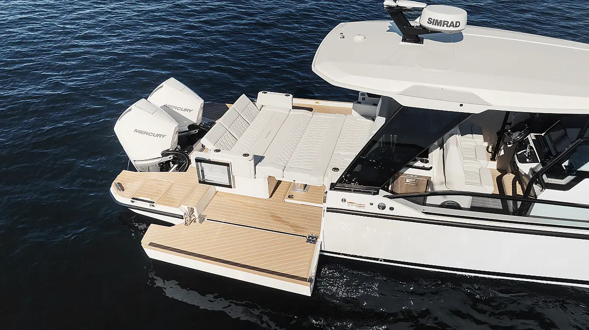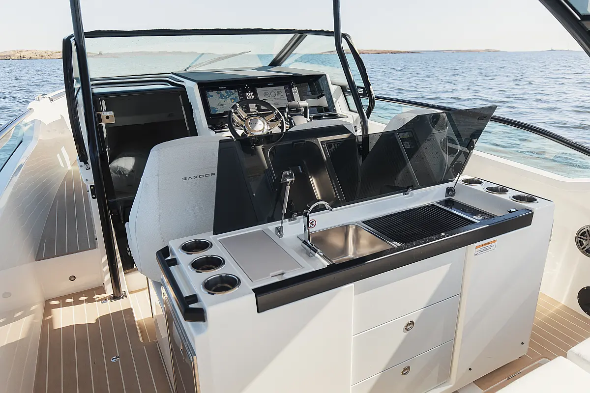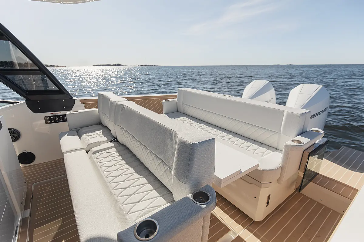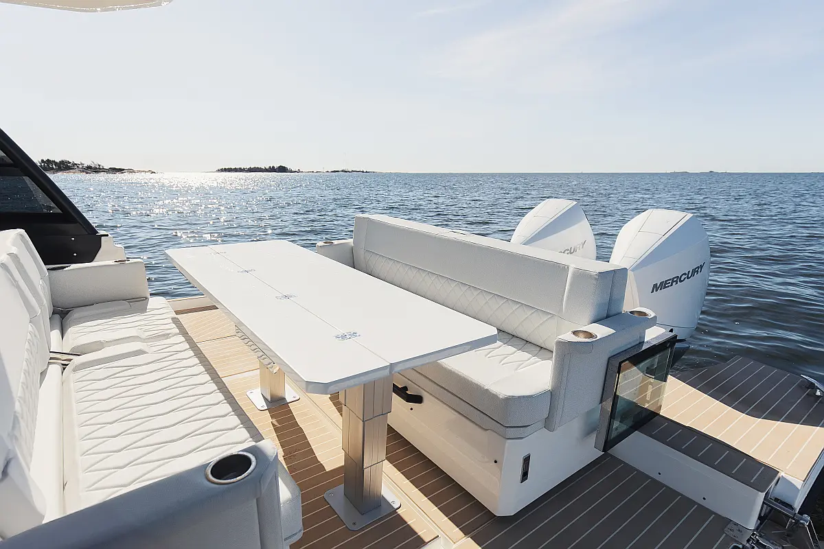 Cockpit table, Cockpit shower, Swimming ladder, Cockpit cushions, Cockpit fridge