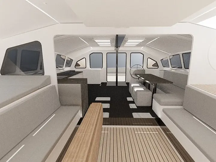 Air conditioning, Inverter, Solar panel, BBQ, Carbon rudder, Carbon sails, Carbon daggerboards, Cruising speed is 15 knots