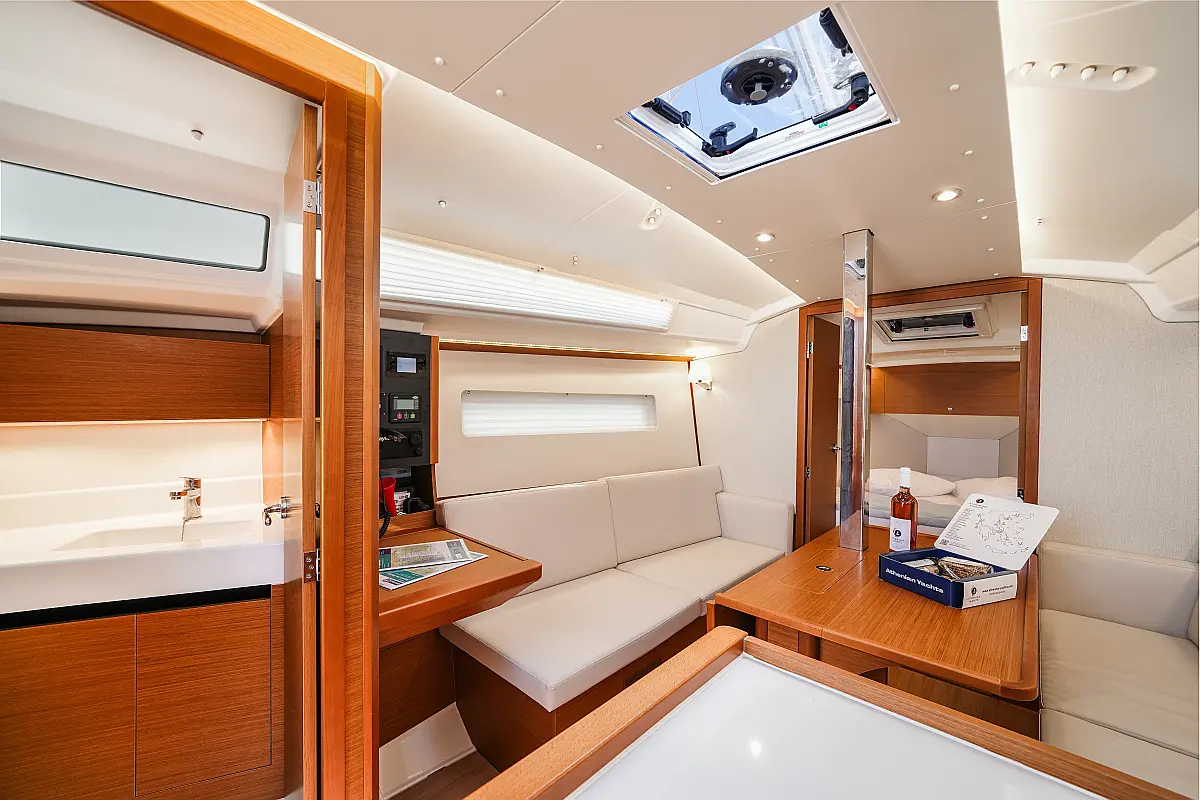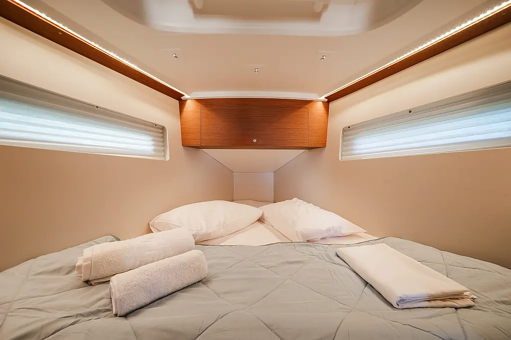 Fans in cabins /saloon, Hot Water, Manual toilet, Pax onboard (max) (6), Convertible saloon table, Holding tank, Freezer, Air-Conditioning (12btu)
