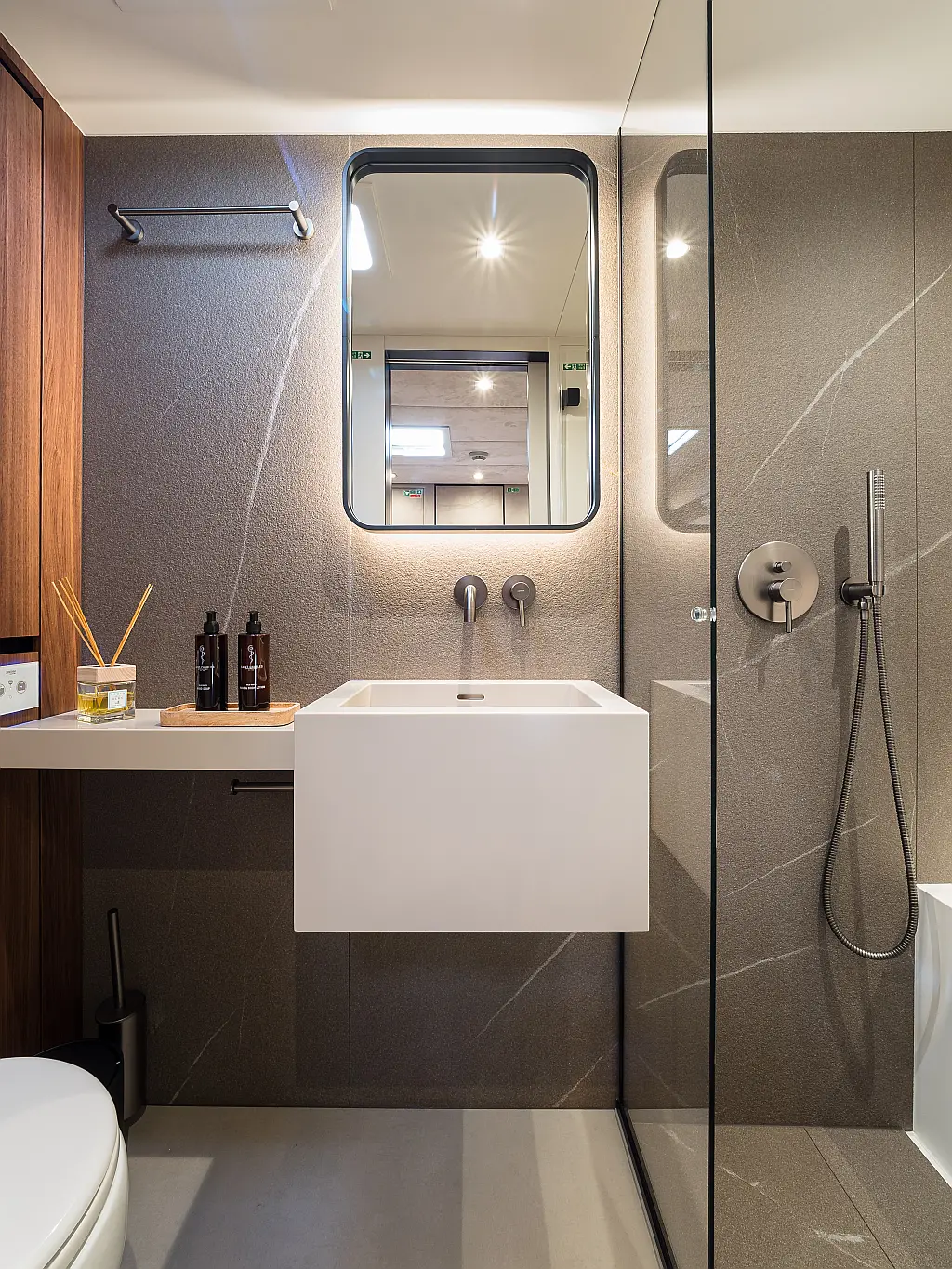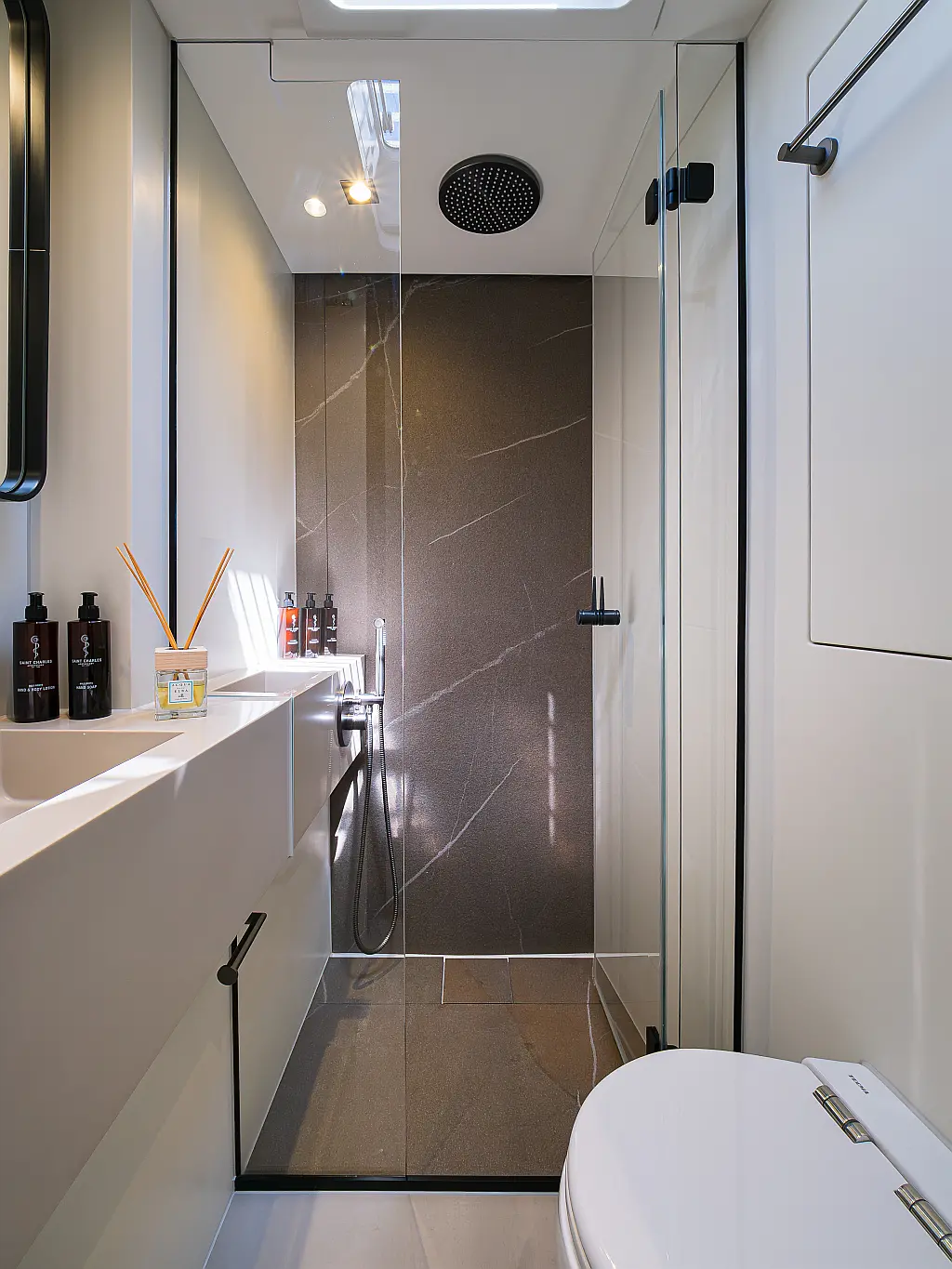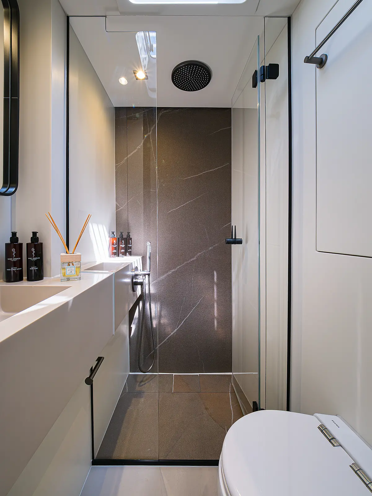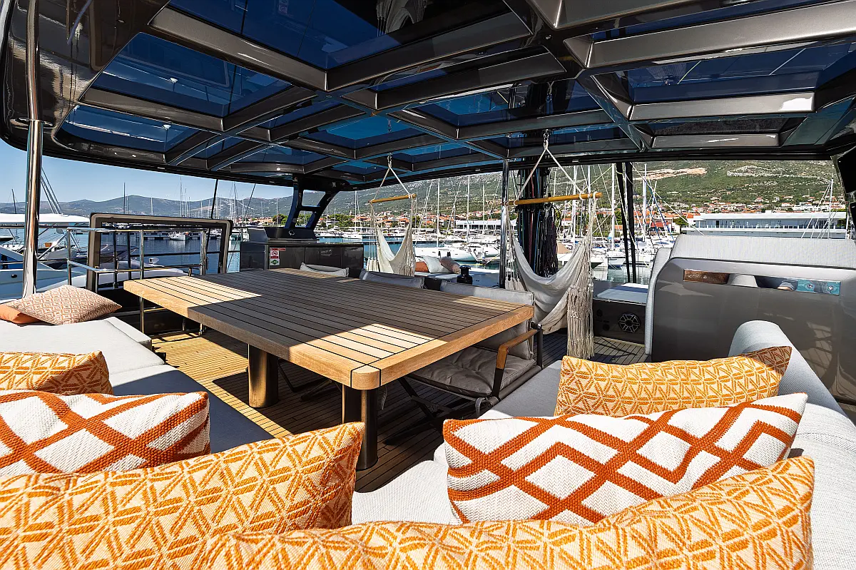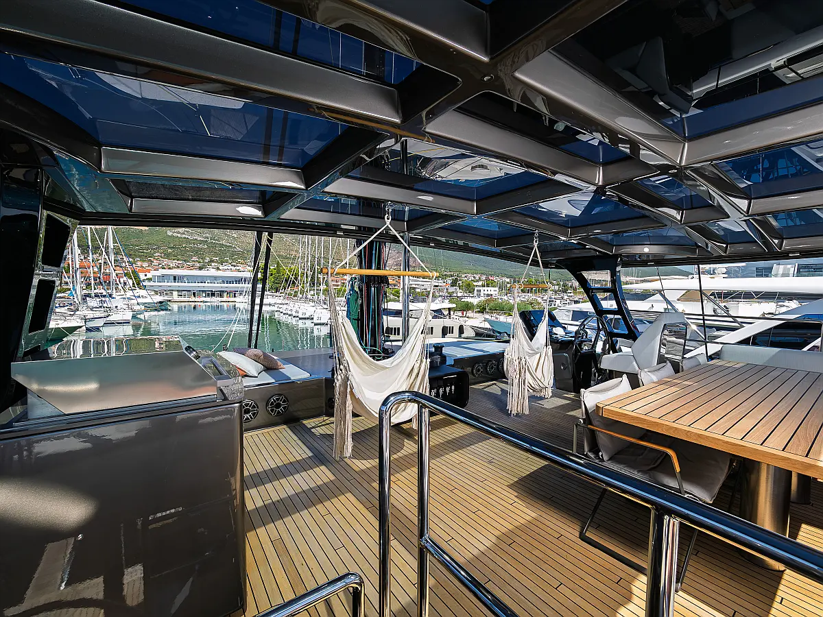 Altoparlanti in pozzetto, Aria condizionata, Riscaldamento, Bimini, Piattaforma da bagno, Frigorifero, Generatore, Tender
