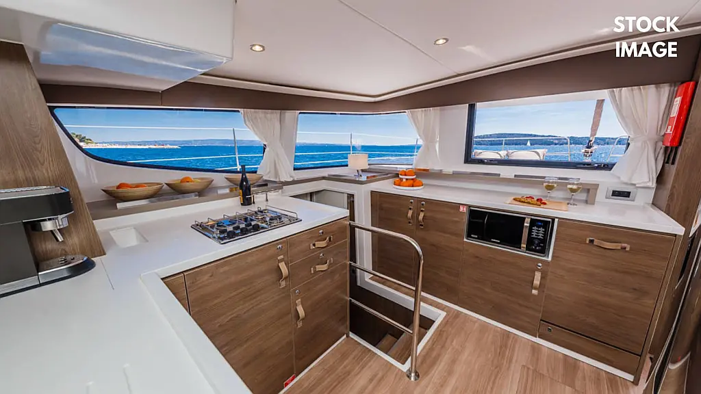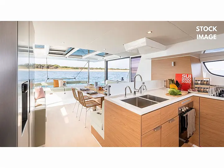 External shower, Hydraulic system for salon tilting bay door, Micro-wave oven 230V, Nespresso coffee machine, Outboard engine, Radio&Music player, Warm Water, 220V and 12V sockets, Complete range of cushions, Inverter12/230V 2000W, Watermaker105lt/hour –12V, Dishwasher 230V 9-place, Gas plancha