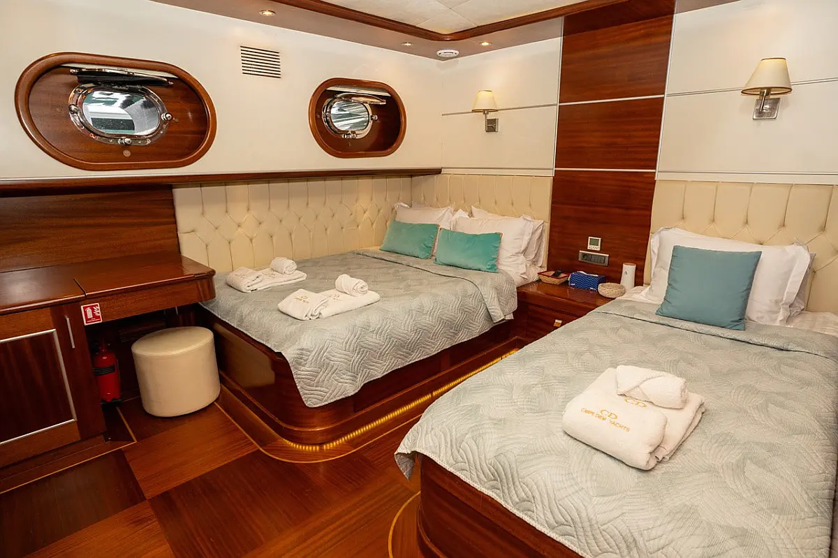 6 6 cabins: 2 Master, 2 Double, 2 Twin all en suite.
