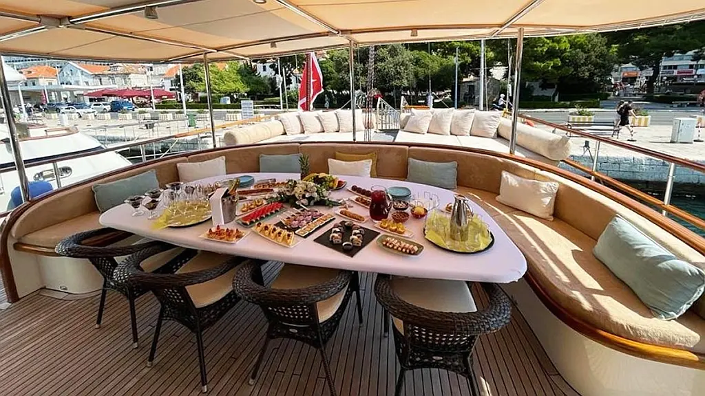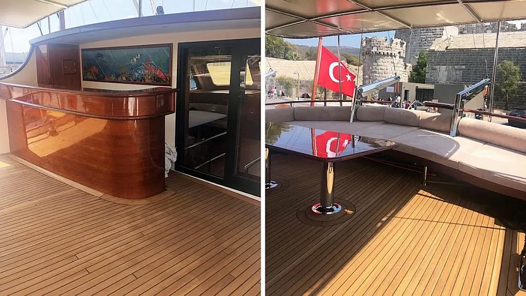 Teak deck, 220V power outlet, Paddle Board