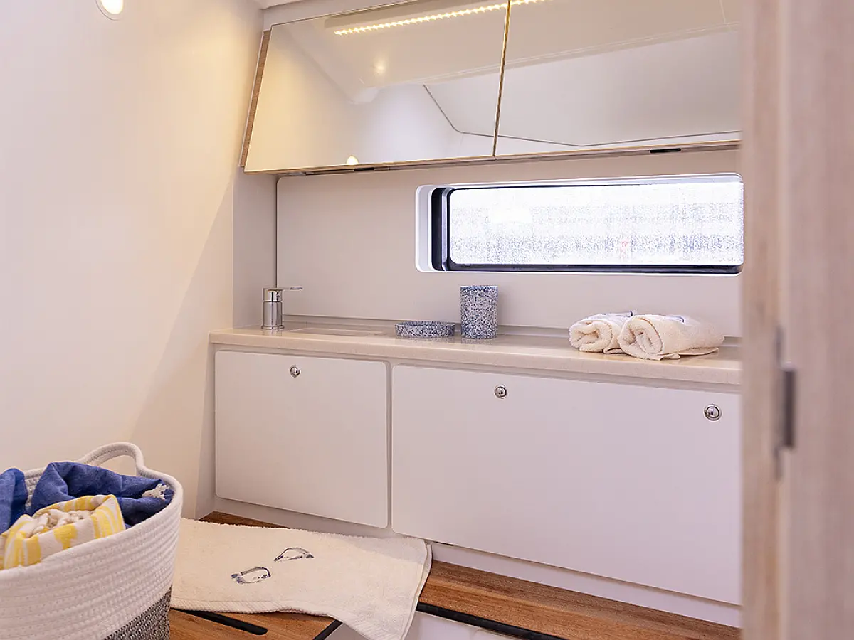 220V sockets, Air condition (cold/warm), Audio system, Big service battery bank, Hot water, Interior illumination LED, Inverter 2000W, LED lighting outside, Radio with bluetooth, Solar panels, USB connection, Watermaker