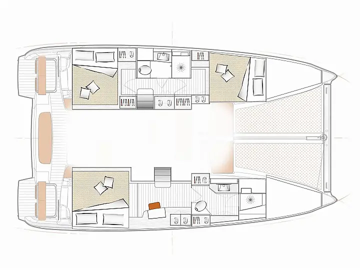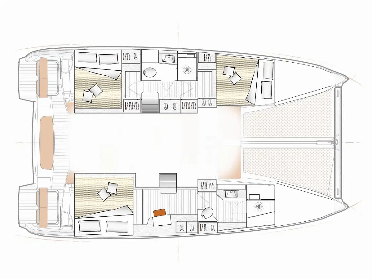 Lazy Bag, Extended Pulse Line rig, Code 0, Electric Halyard Winch, Full batten Main Sail, Furling Genoa, Lazy Jack, Tacking jib, Wheel Steering