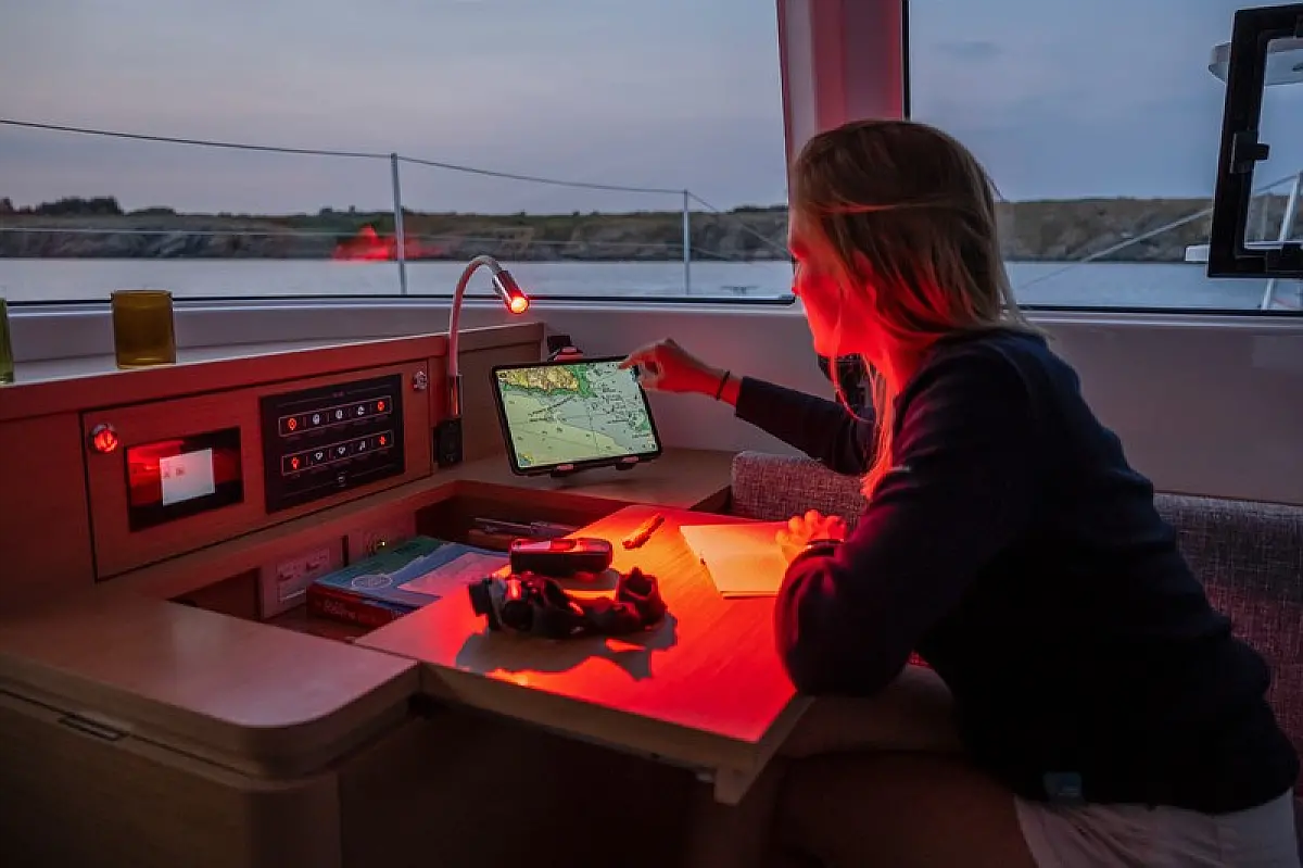 Auxiliary anchor, Calibrated anchor chain, Dan Buoy, Distress flares, Fire extinguisher, First aid kit, Floating line, Lifebuoy, Liferaft, Main anchor, Safety harness