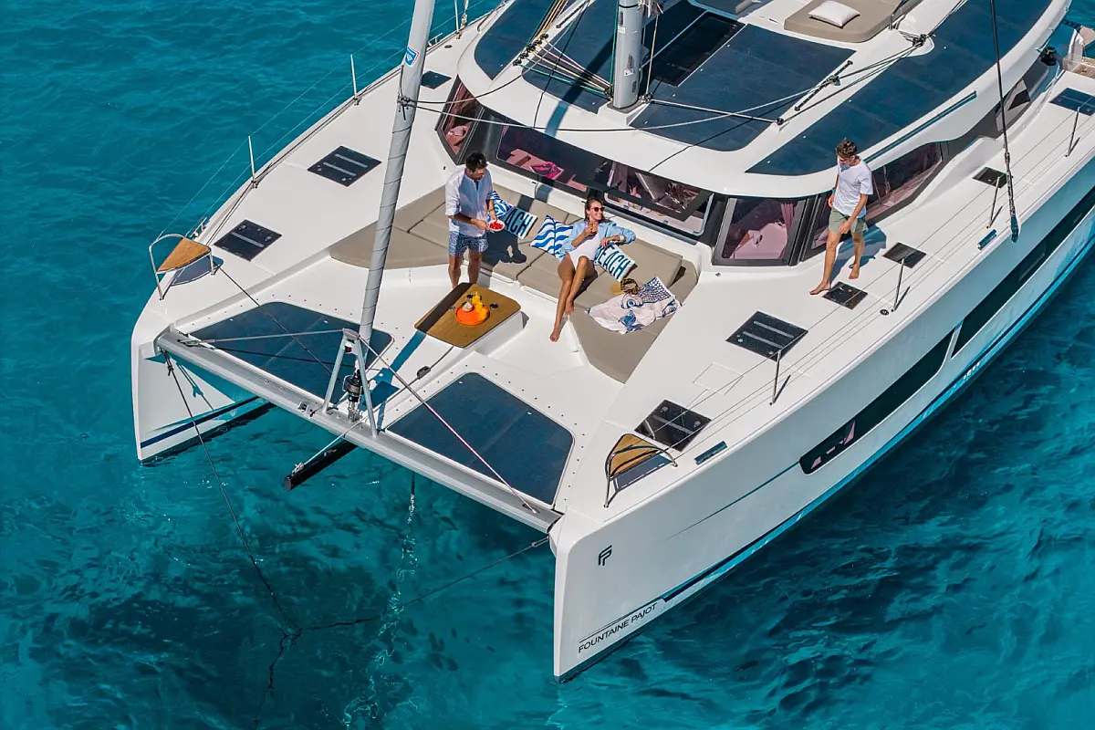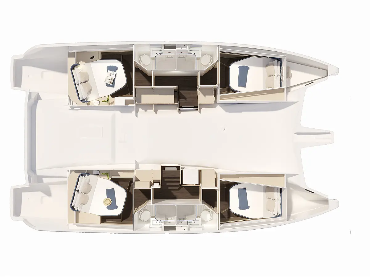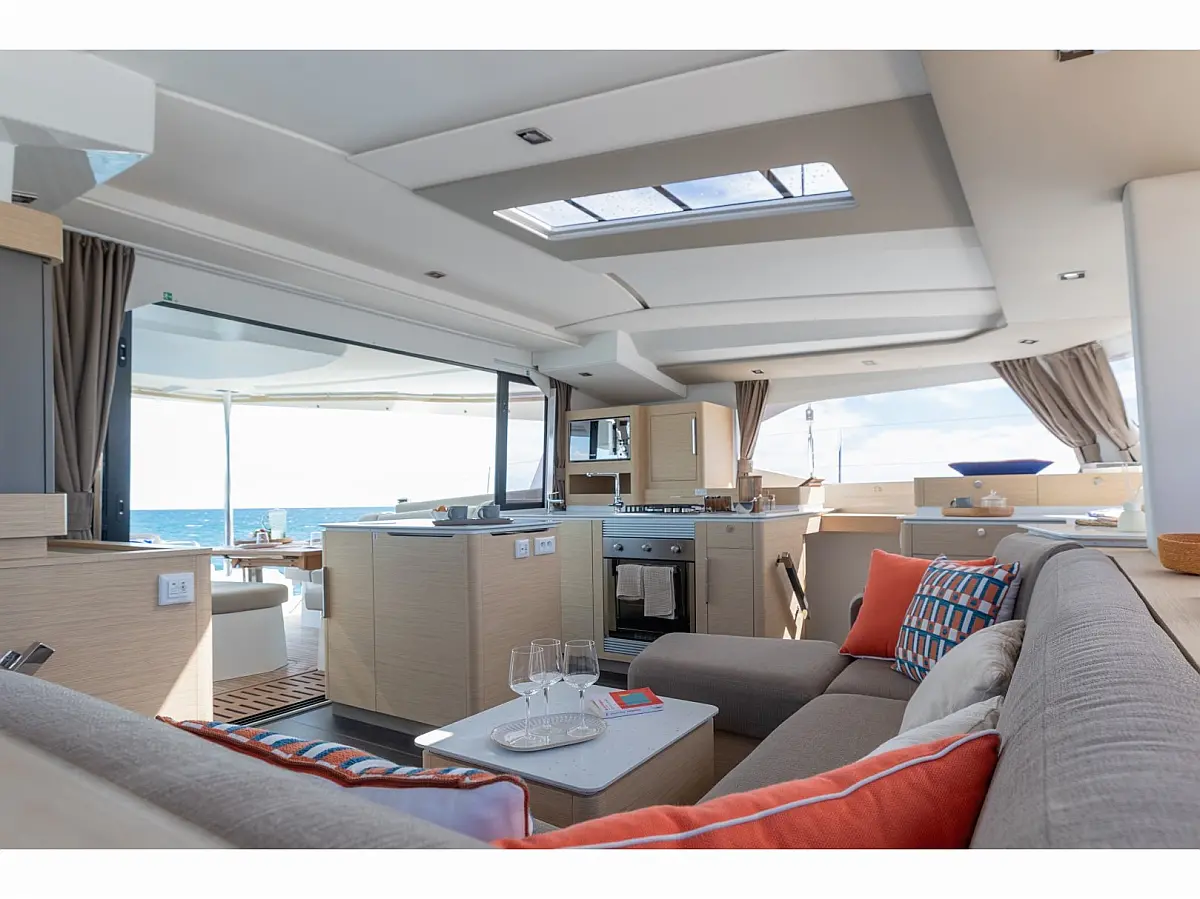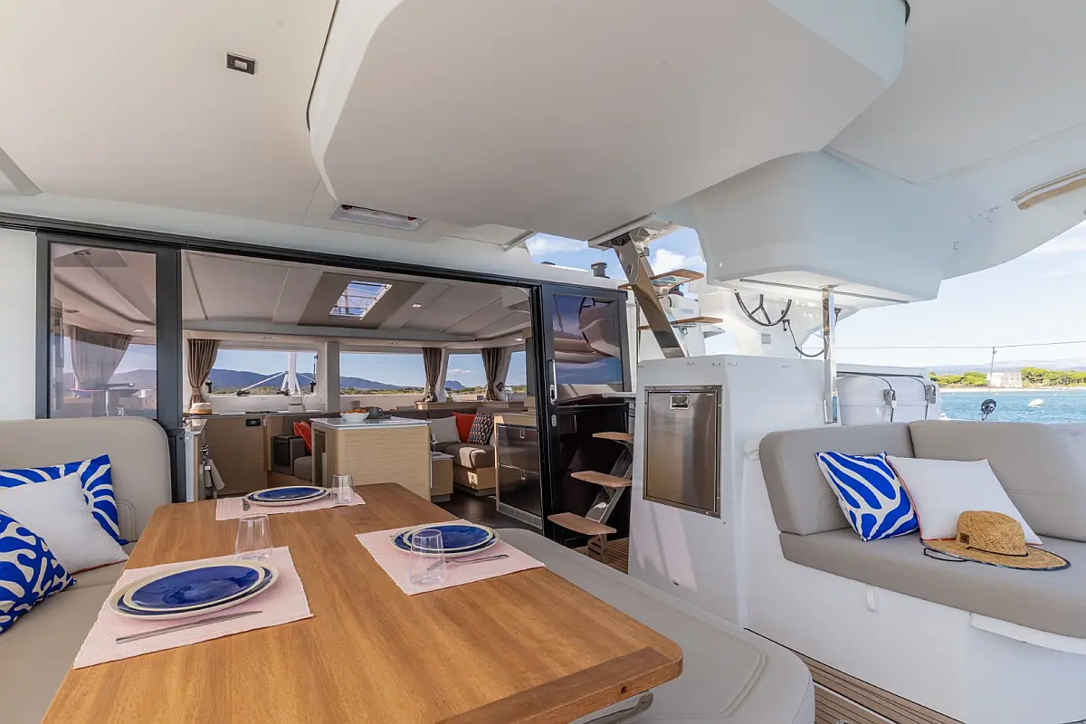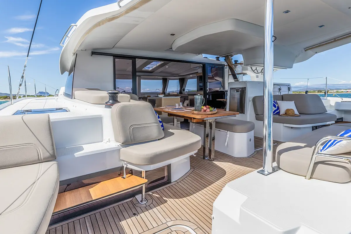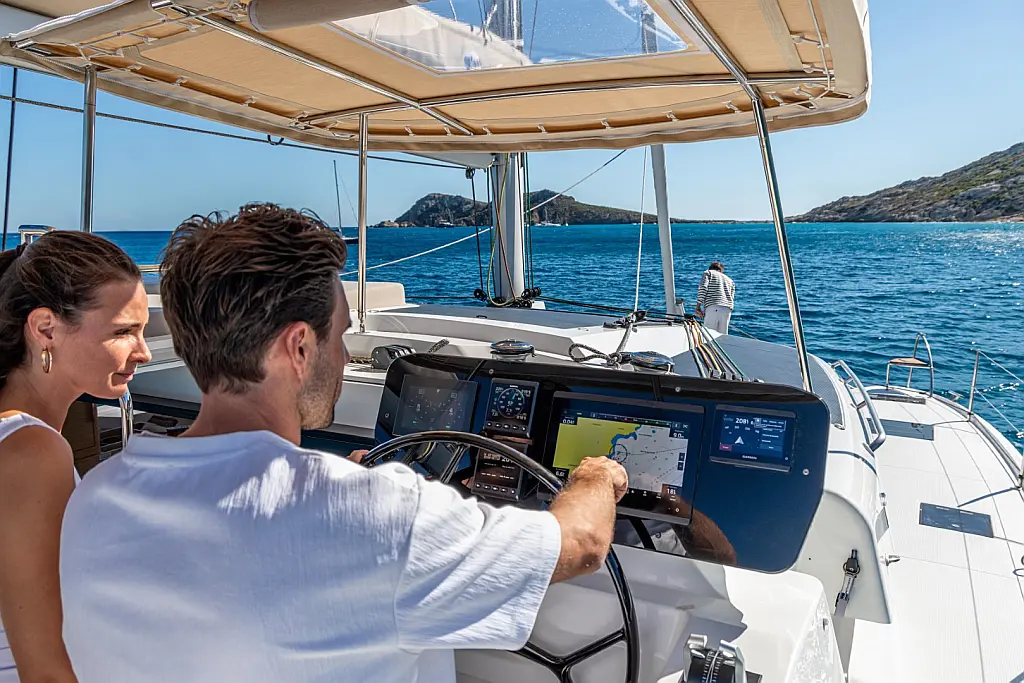 Battery charger (yes), Shore power 220V (yes), Autopilot (Garmin; outside pack), GPS charter plotter (in cockpit), VHF (yes), FM radio/USB connection (yes), Compass (X2), Navigation charts (yes), Pilot book (yes), Wind instruments (yes), Electric winch (1), Generator (yes), Electric toillet (yes), Engine (2 x Yanmar 57HP)