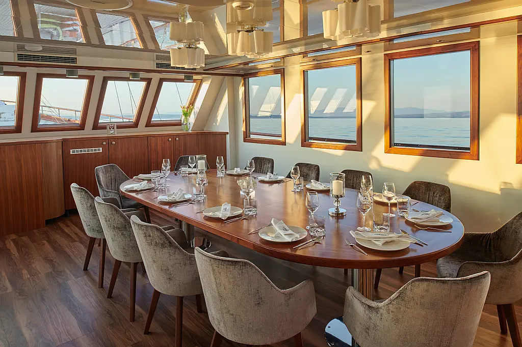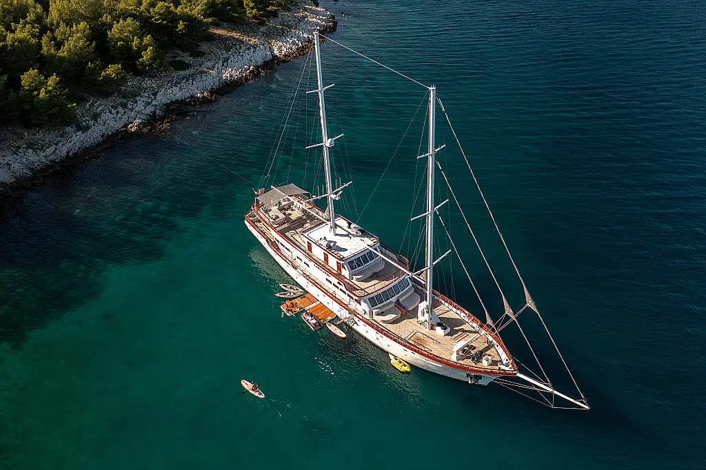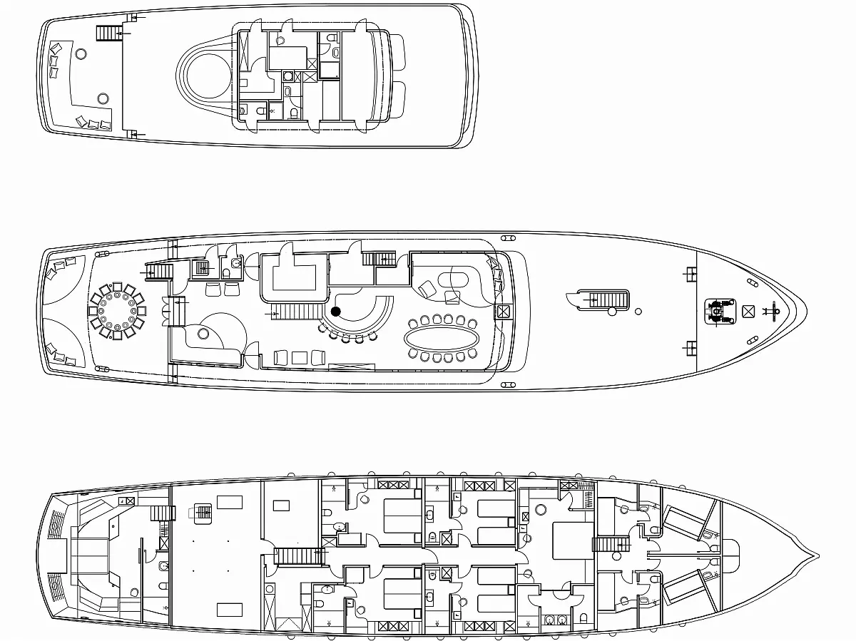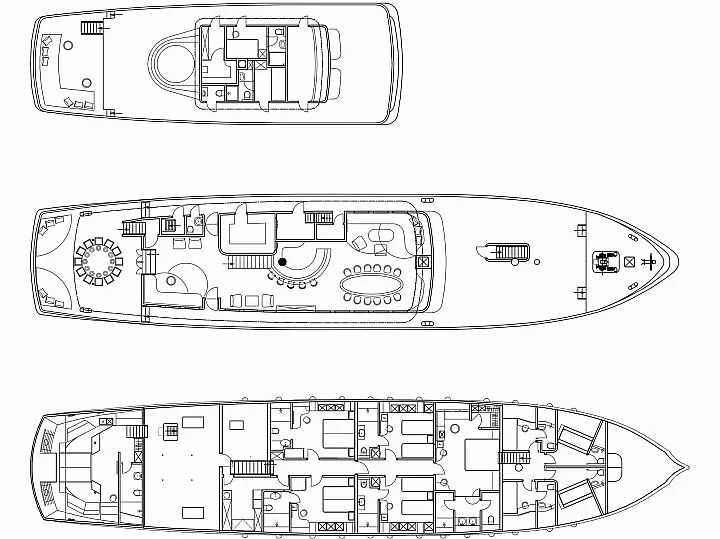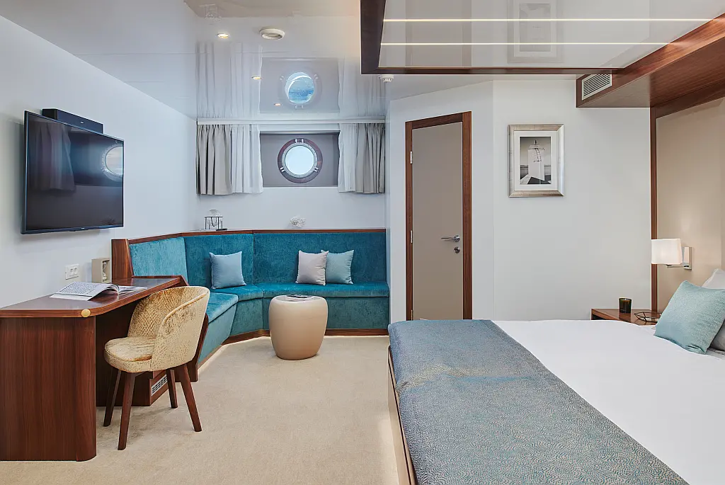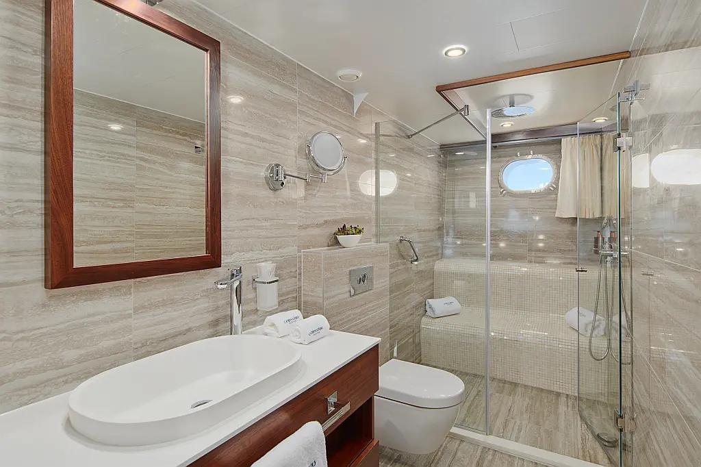 Master cabin (32m2, double bed (200*205cm), private bathroom with floor heating, SMART TV, Bose sound system, A/C 24/7), VIP cabin (30m2, double bed (180*200cm), private bathroon with floor heating, SMART TV with Bose sound system, plenty of natural light, A/C 24/7), Two double cabins (18m2, double bed (160*205cm), private bathroom, SMART TV with Bose sound system in both cabins, A/C 24/7), Two twin cabins (17m2, two twin beds (85*200cm), private bathroom, SMART TV with Bose sound system in both cabins, A/C 24/7)