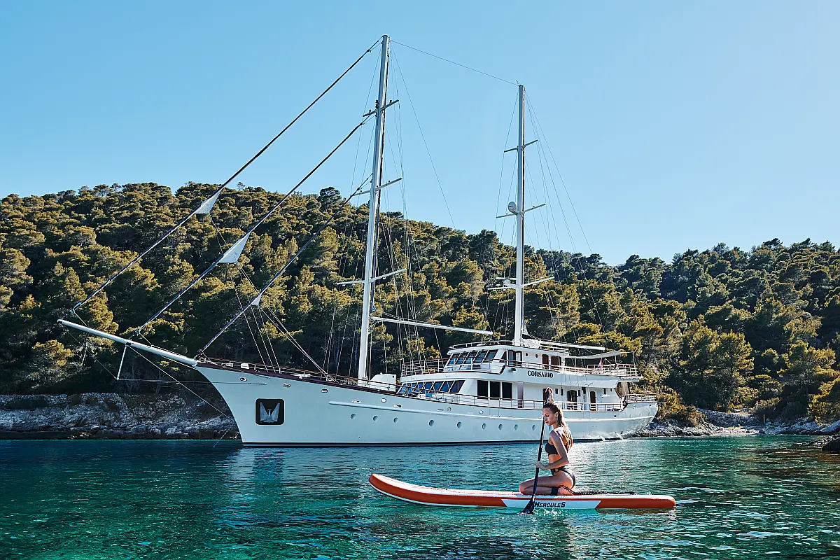 Stand up paddle boards (2), Jet -ski, Seabob, Waterslide, Fishing gear, Snorkeling gear, Various inflatables, Yoga mats, Sun loungers, Swim platform, Kayak (2), Tender, Finnish sauna, Fully equiped bar (Coffe machine, smoothie blender, fresh juice maker, fridge for wine), Indoor lounge (x2 in saloon, BOSE sound system, 2xSONY SMART TV, Playstation 4 with many games, board games, dining table for 12, A/C), Exterior lounge (x4, Bose sound system speakers, decorative pillows)