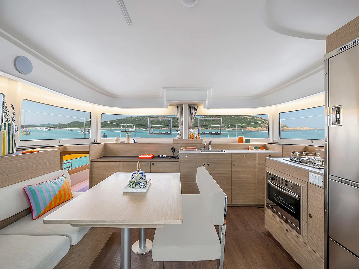 Solar panel, Hot water, Electric windlass, Bimini, Spray hood, Deck hand shower, Swimming ladder, Speakers in cockpit, Cockpit table, Autopilot, VHF DSC, Sounder, Speedometer, Anemometer, Coloured chart plotter, Freezer, Stove, Fridge, CD Player, Dvd player, MP3, Guides & Maps, Safety Equipments, Hydraulic gangway, Teak deck in cockpit, 1 GPS outside, Air Condition