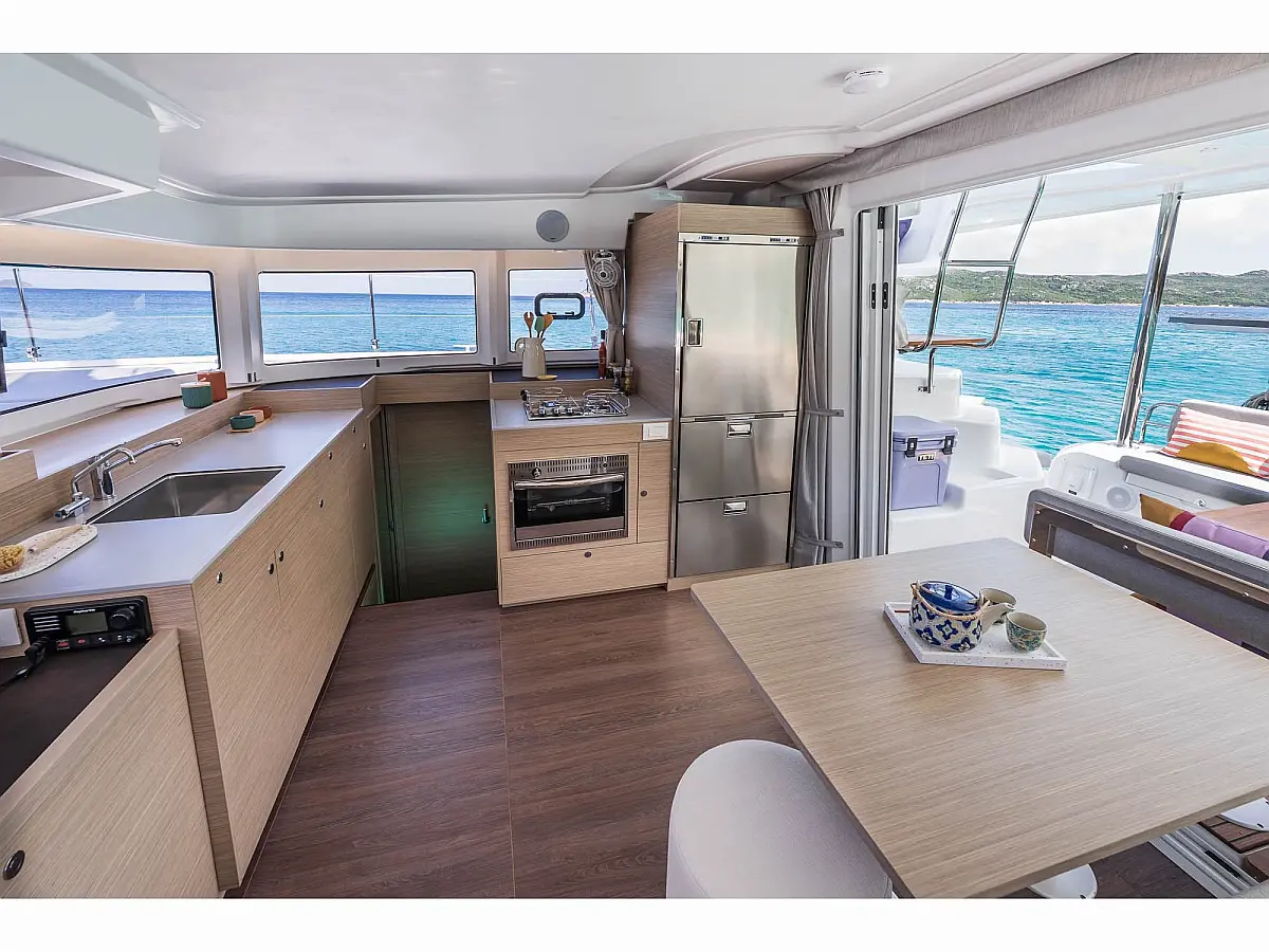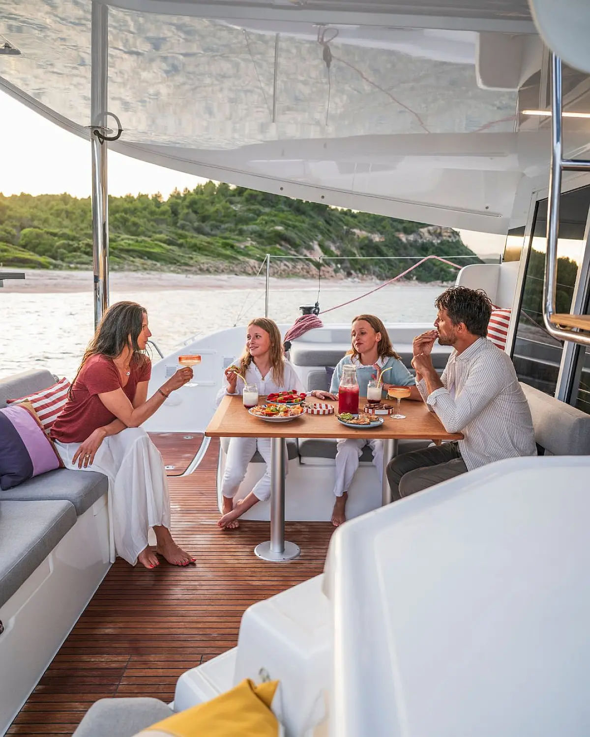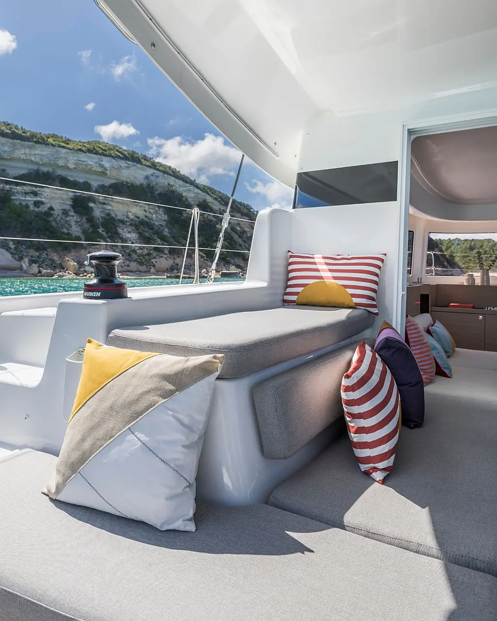 Dinghy, Teak Deck, Air Conditioning, Watermaker, Generator, Inverter, Electric Toilet, Underwater lights, Gangway, Outboard engine, Indirect Lighting in cabins