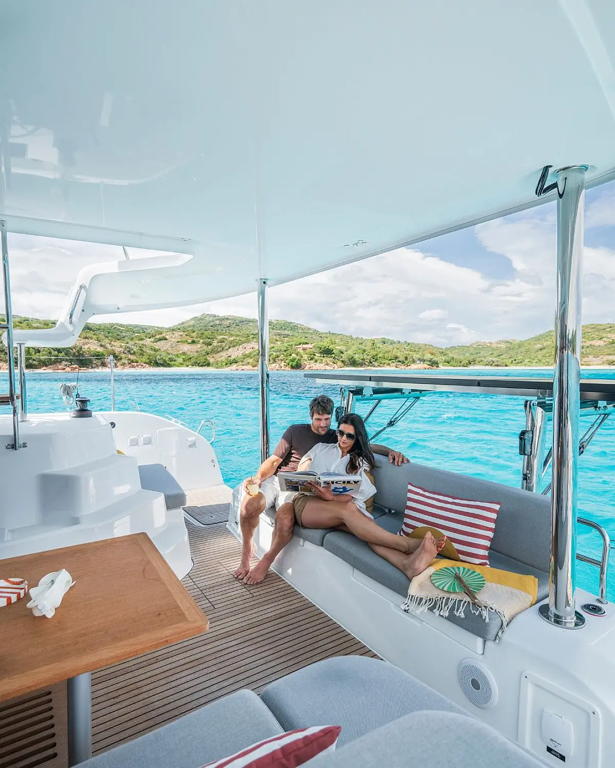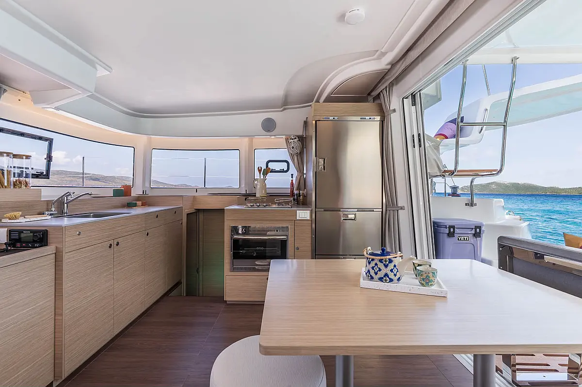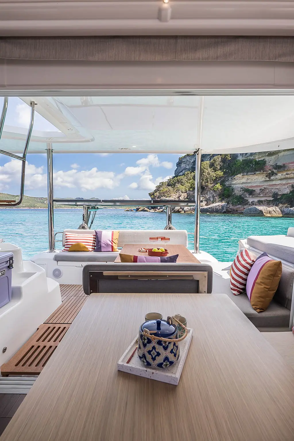 Dinghy, Teak Deck, Air Conditioning, Watermaker, Generator, Inverter, Electric Toilet, Underwater lights, Gangway, Outboard engine, Indirect Lighting in cabins
