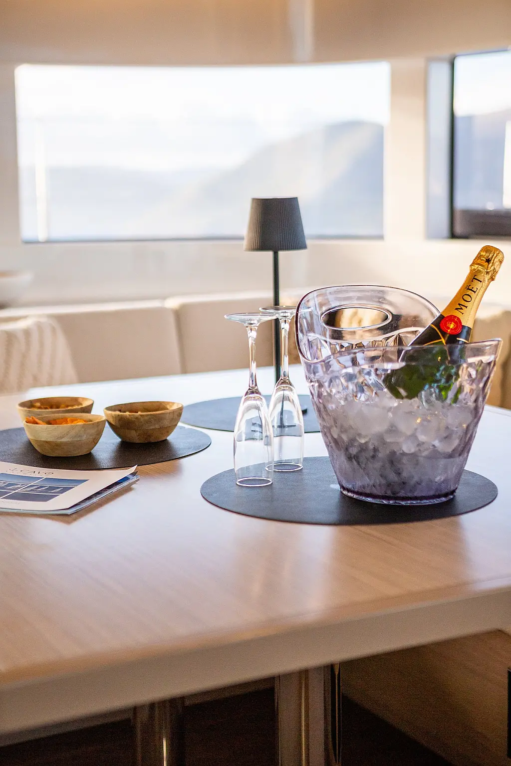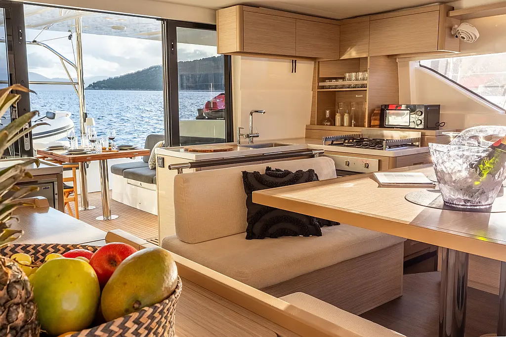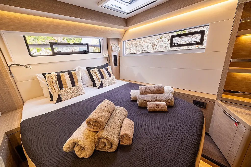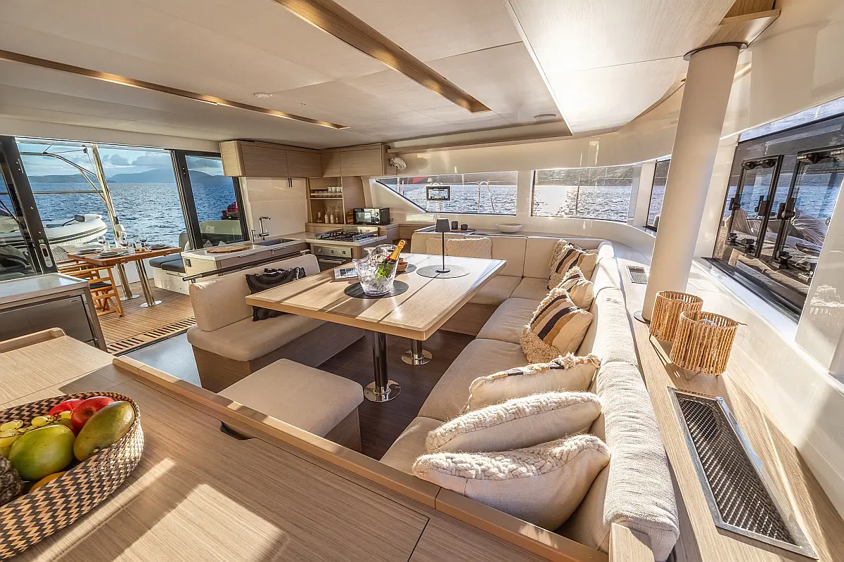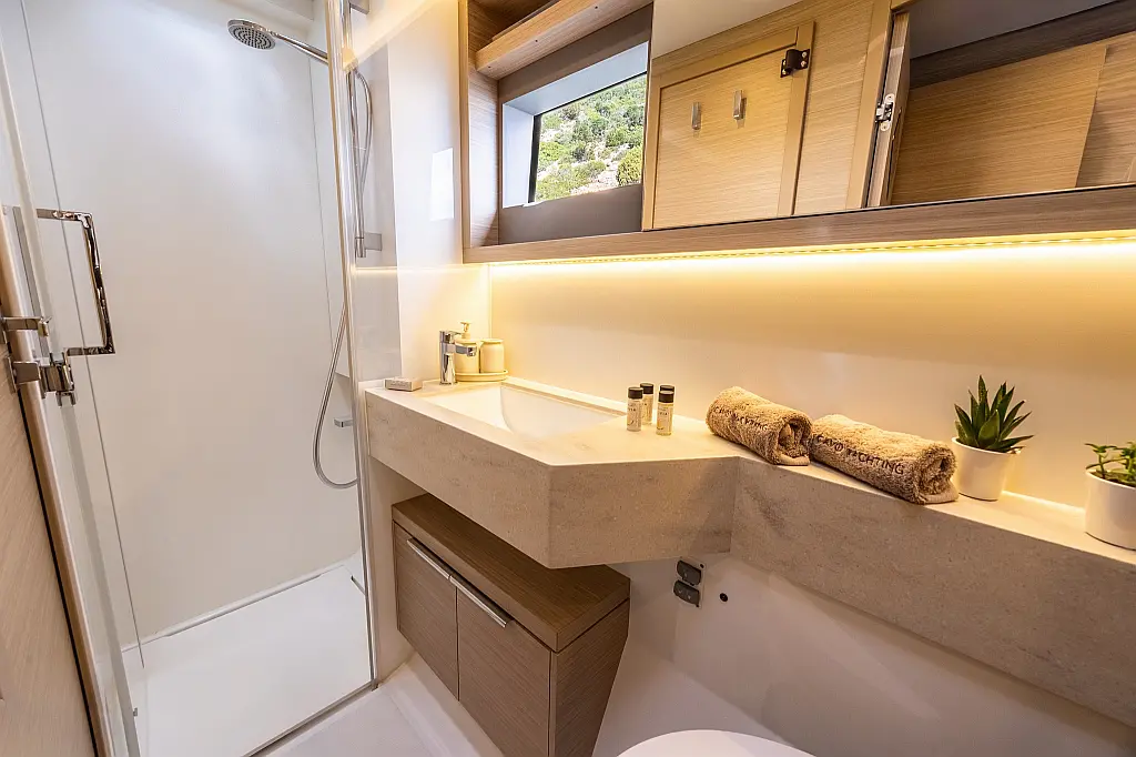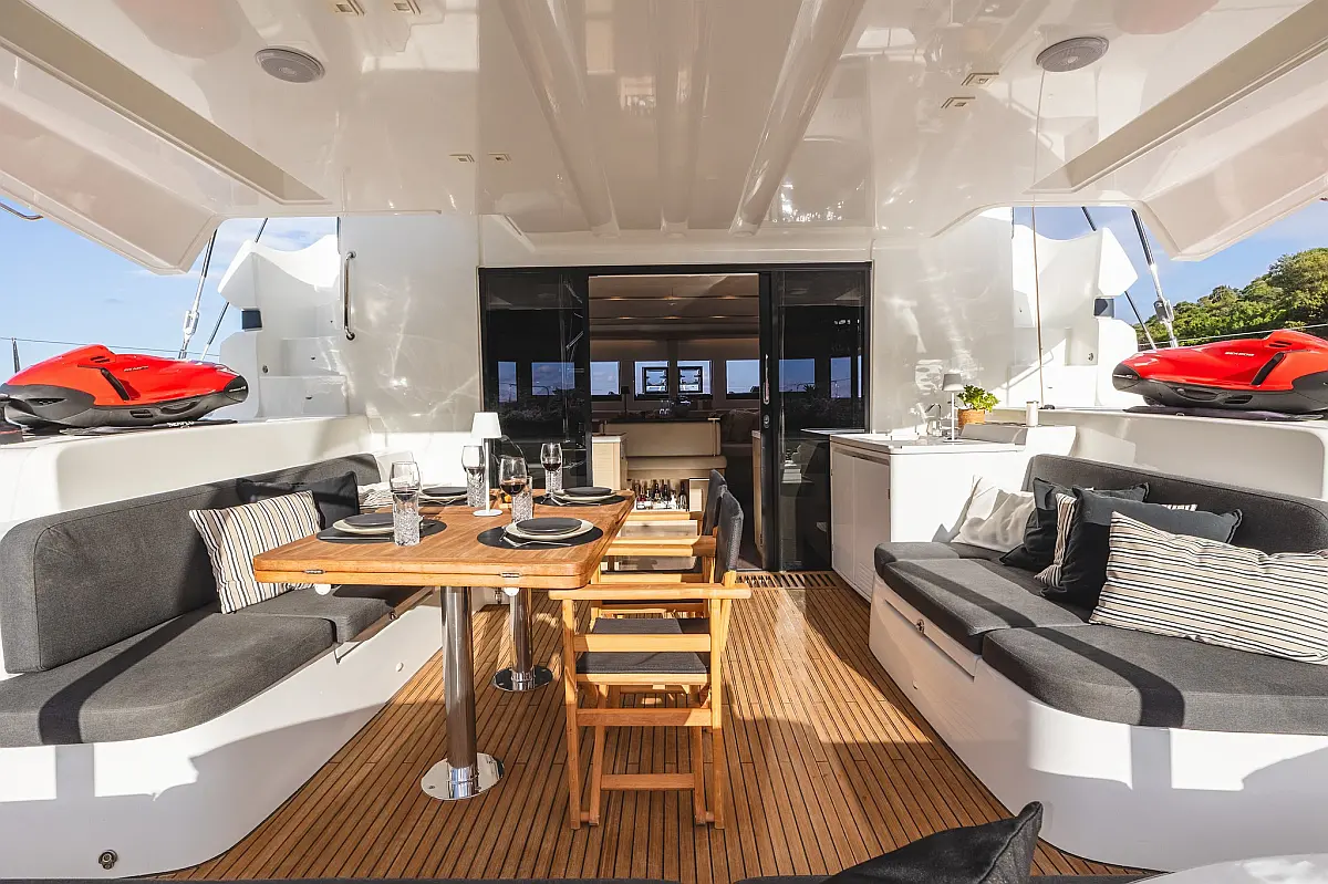 Ice-Maker, Teak Deck, Air Conditioning, Bimini (Hard Top), Watermaker, Generator, Inverter, Electric Toilet, Electric winch, Underwater lights, Gangway (Hydraulic), Large Flybridge