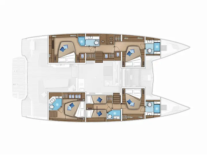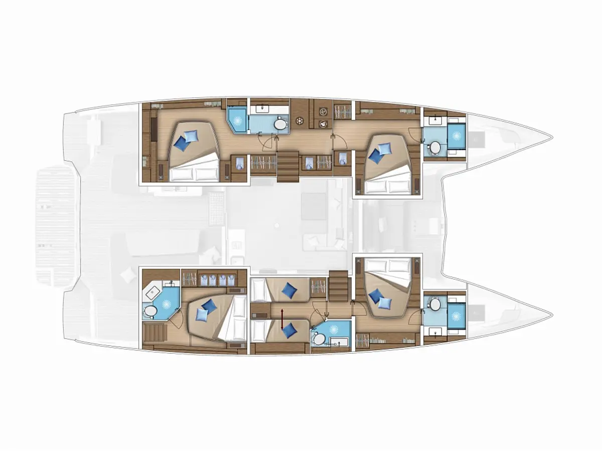 Bow thruster, Electrical circuit 230V with 63A shore power, 230V oulets & USB sockets, Service gel batteries 4x210A (Standard: 6x140A AGM) & Batteries controller, Batteries charger, Monitoring display (Navicolor), Extra for electric winch 60.2 (Main halyard winch), S/steel dinghy hoist system & manual winches (Max load: 500kg/1,103lbs), Forward pulpits with wooden seats + Lifelines openings (Port and starboard), Extra for Bolster helm seat color, Indirect lighting in cabins and salon, Aft windows with opening porthole and blind, in aft cabins, Fusion Apollo MS-RA670 player in the salon & 4 loudspeakers (Salon x2 - Aft cockpit x2), FOLDING CARBON GANGWAY 2,60m/8,53ft + 2 SOCKETS AND CARRYING BAG, WATERMAKER 280L/H SEA RECOVERY AQUAMATIC 230V, watermaker