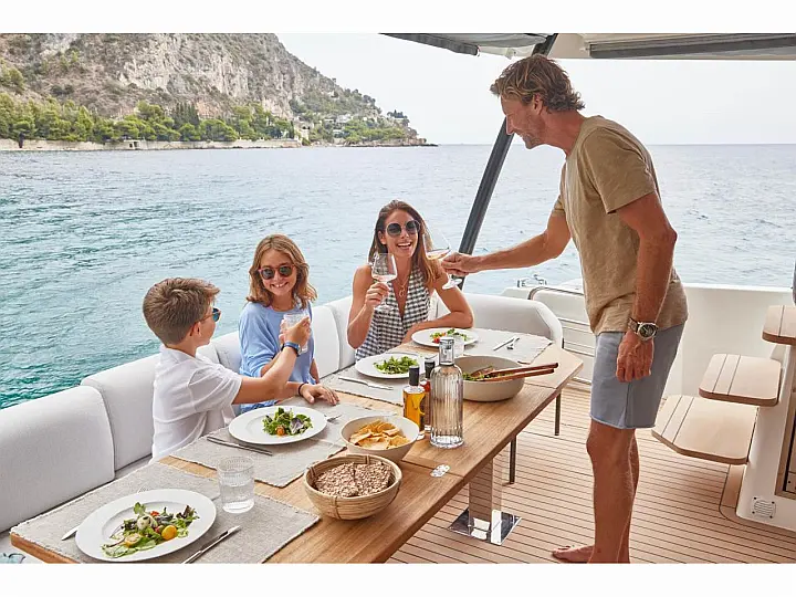 Safe, Hi-Fi USB Player, Ice-maker in cockpit, Sunbathing Matresses, A/C, Inverter, Fly-Bridge, Dishwasher, Moquette in cabins (on request), Generator, Washer-dryer, Washing machine, Grill and Fridge on the fly