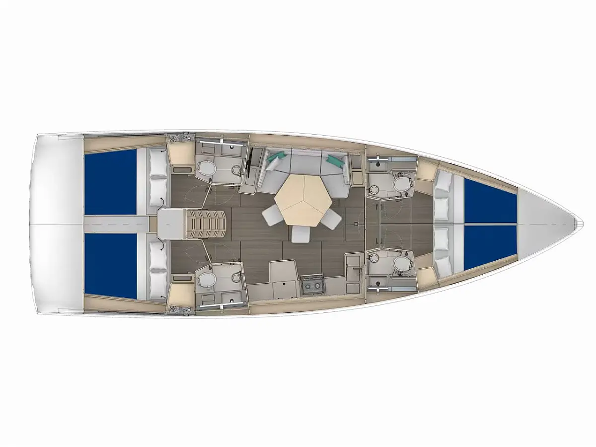 Bathing ladder, Gas bottles (Gas included), Electric windlass, Full batten mail sail, Lazy jack, 2 Steering wheels, Furling genoa, Lazy bag