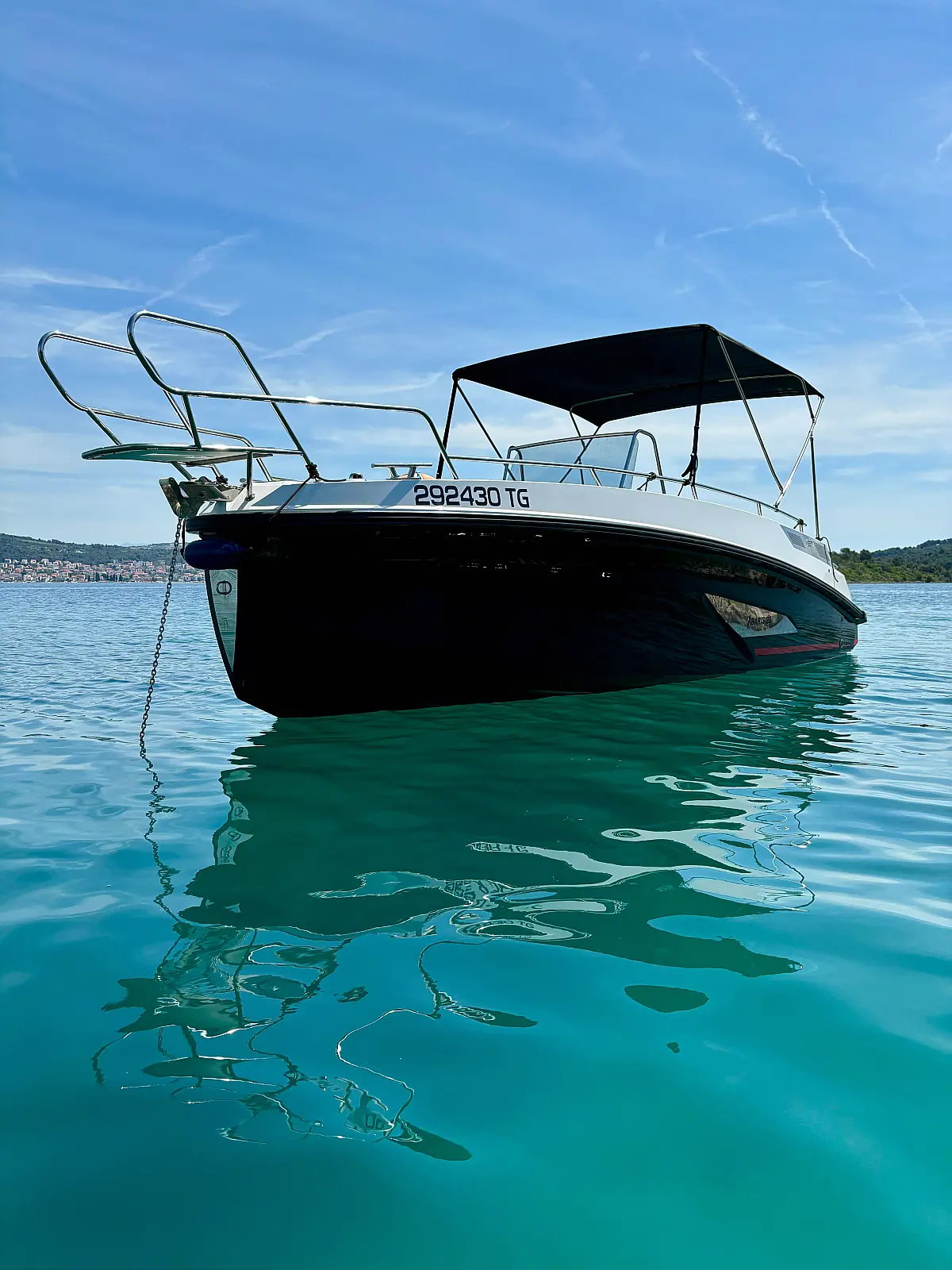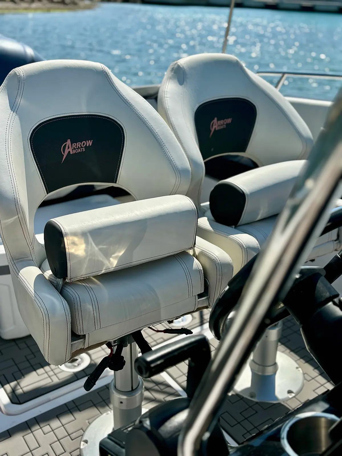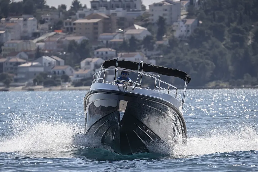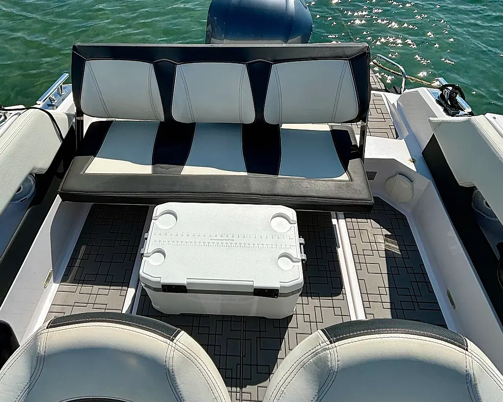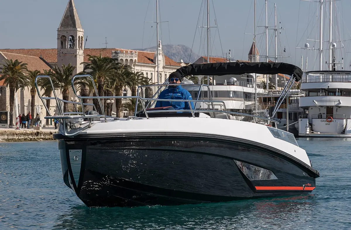 12V car type socket, Automatic bilge pump, Binoculars, Cockpit loudspeaker, GPS/Chartplotter- Lowrance Elite FS 9, Distress signals, Emergency flashlight, Fog horn, Kill switch (safety lanyard), Main power switch, No. of batteries - 2, Portable fire extinguisher, Sundeck cushions, Water sports pole, Interior table, Anchor, Bilge pump electric, Boat documents, Complete mooring equipment, Digital speedometer, Digital speedometer, Distress torches, Fenders, Hand tools, Life jackets, Medicine chest, Radio/USB slot, Swim ladder, Anchor light, Bimini top, Complete safety equipment, Boat hook, Digital tachometer, Electricity 12V (false), Fishing rod holders (false), Interior lighting (false), Life jackets for child, Navigation lights, Paper sea charts and equipment, Spare anchor, Electric Toilet, Gps with plotter, Bilge pump automatic, Fish finder, Bathing lader, Deck shower, Stereo sistem with Bluetooth, All safety and navigation equipment, Electric Winch (Windlass), Sundeck, LED underwater lights, LED cockpit lights