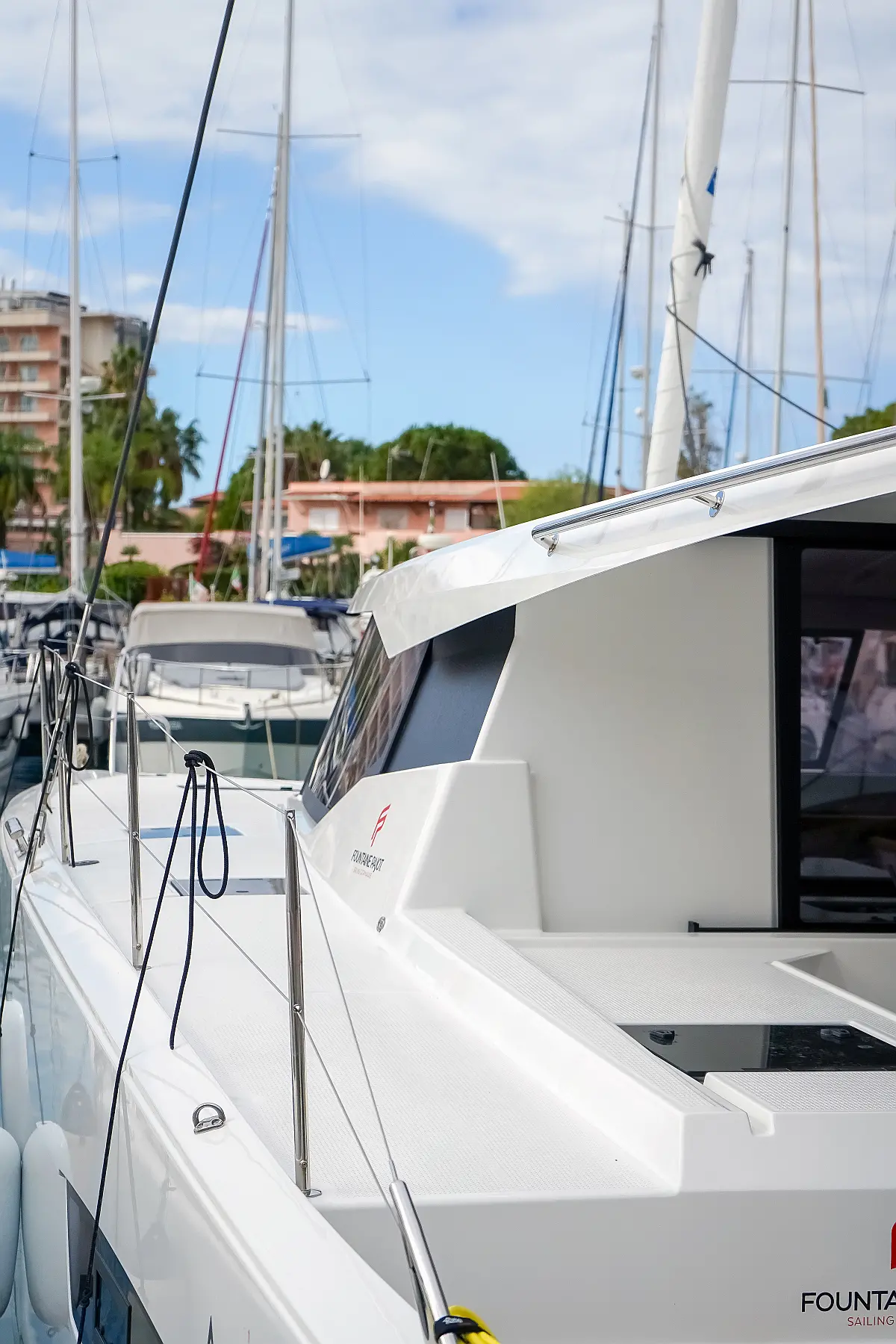 A/C, Lazy bag + lazy jacks, generator, Inverter, watermaker, Holding tank, Electric windlass, External shower, Teak in cockpit, WC electric, Loudspeakers in cockpit, Electric winches, Coffee machine