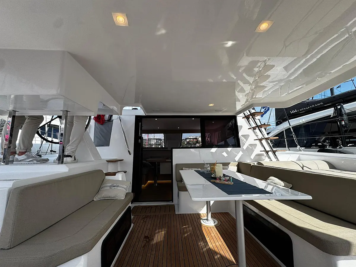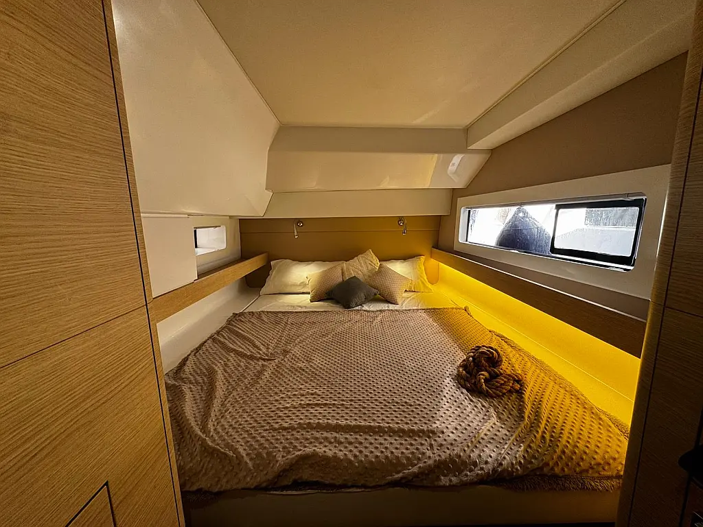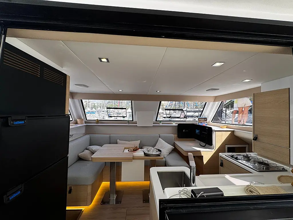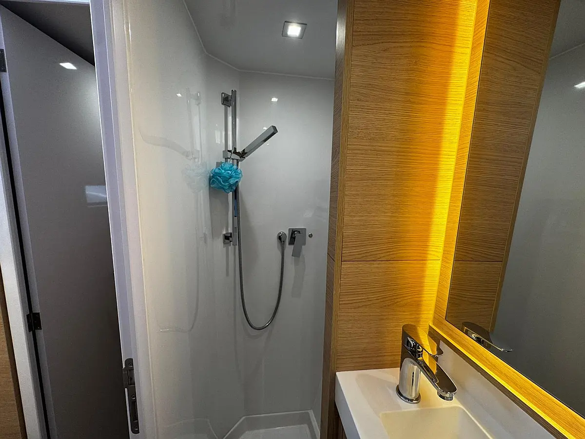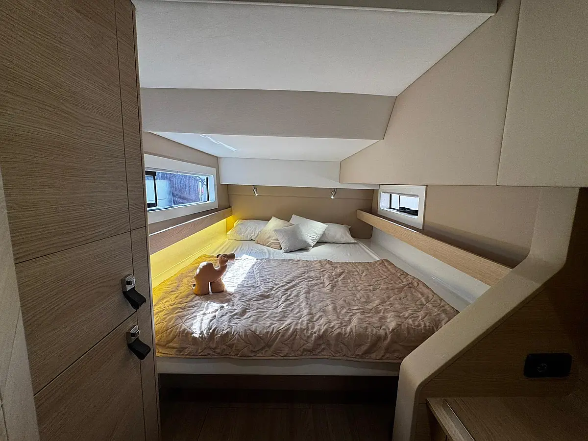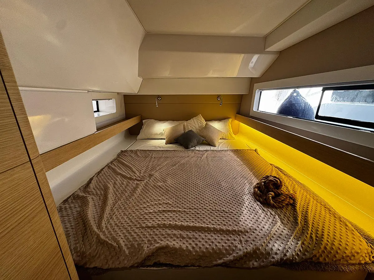 Cockpit speakers, Radio, Pillows, Shower outside, Sprayhood, Freezer, Swimming ladder, Gangway, Oven and 2 burner stove, Kitchen equipment, Casse bluetooth, Cockpit cushions, Electric WC (2)