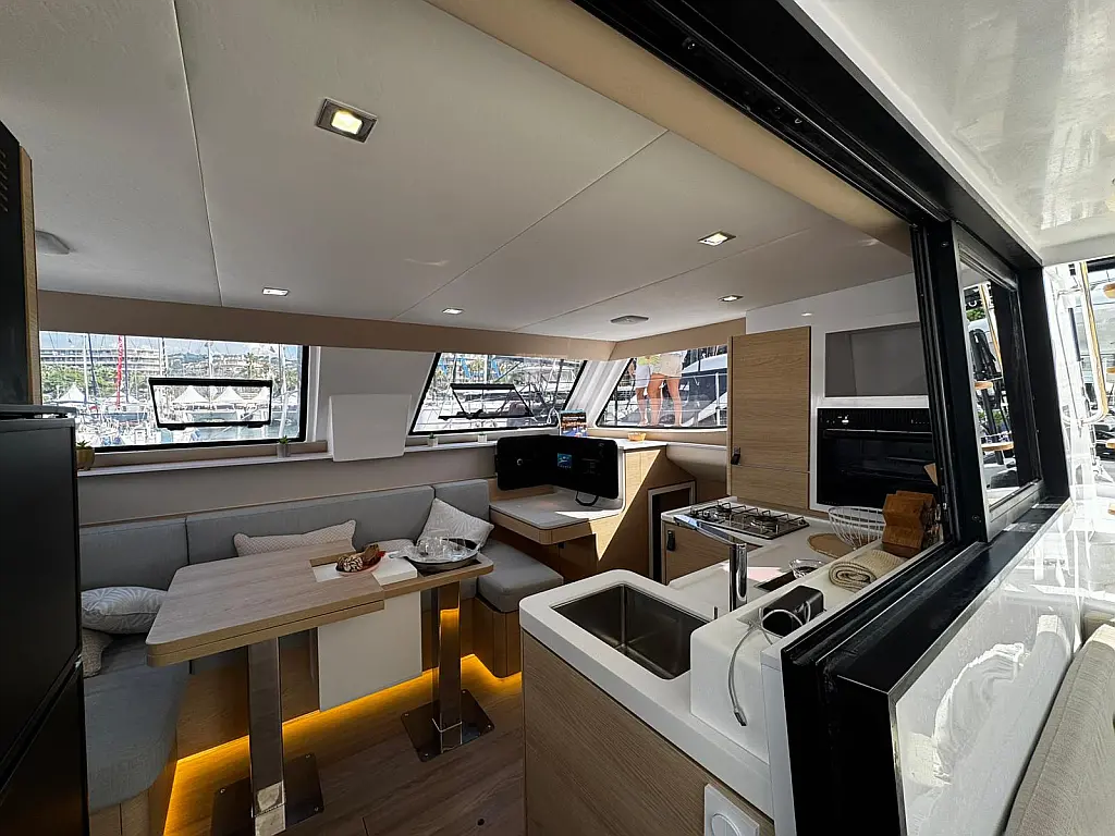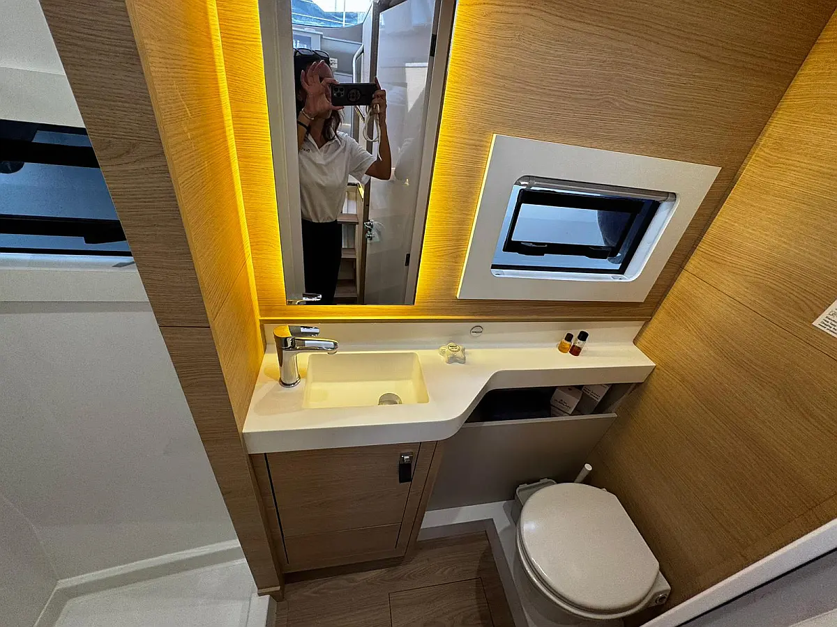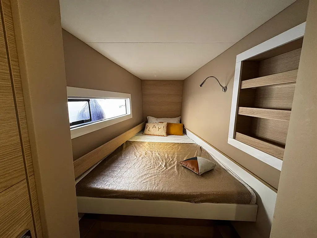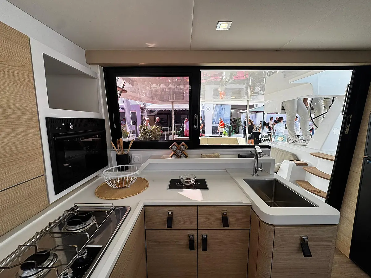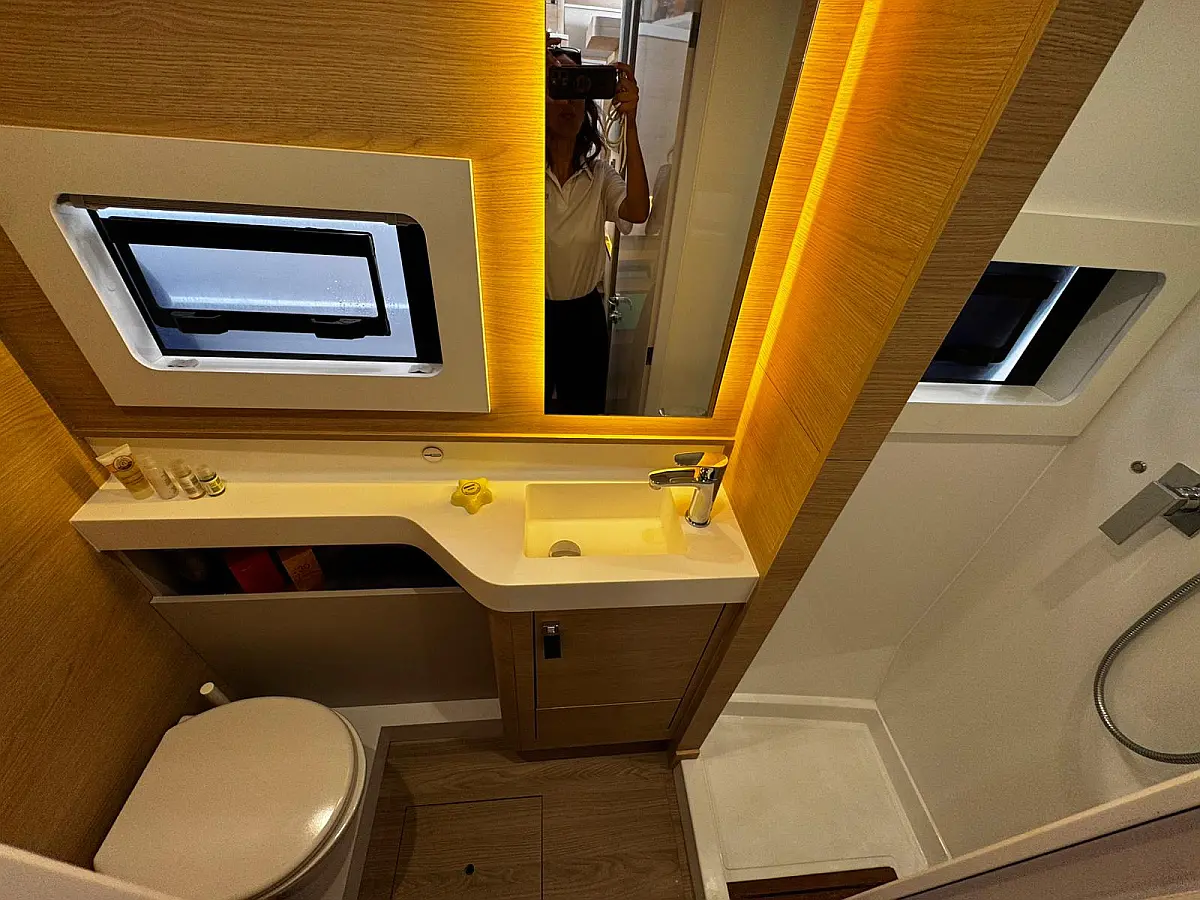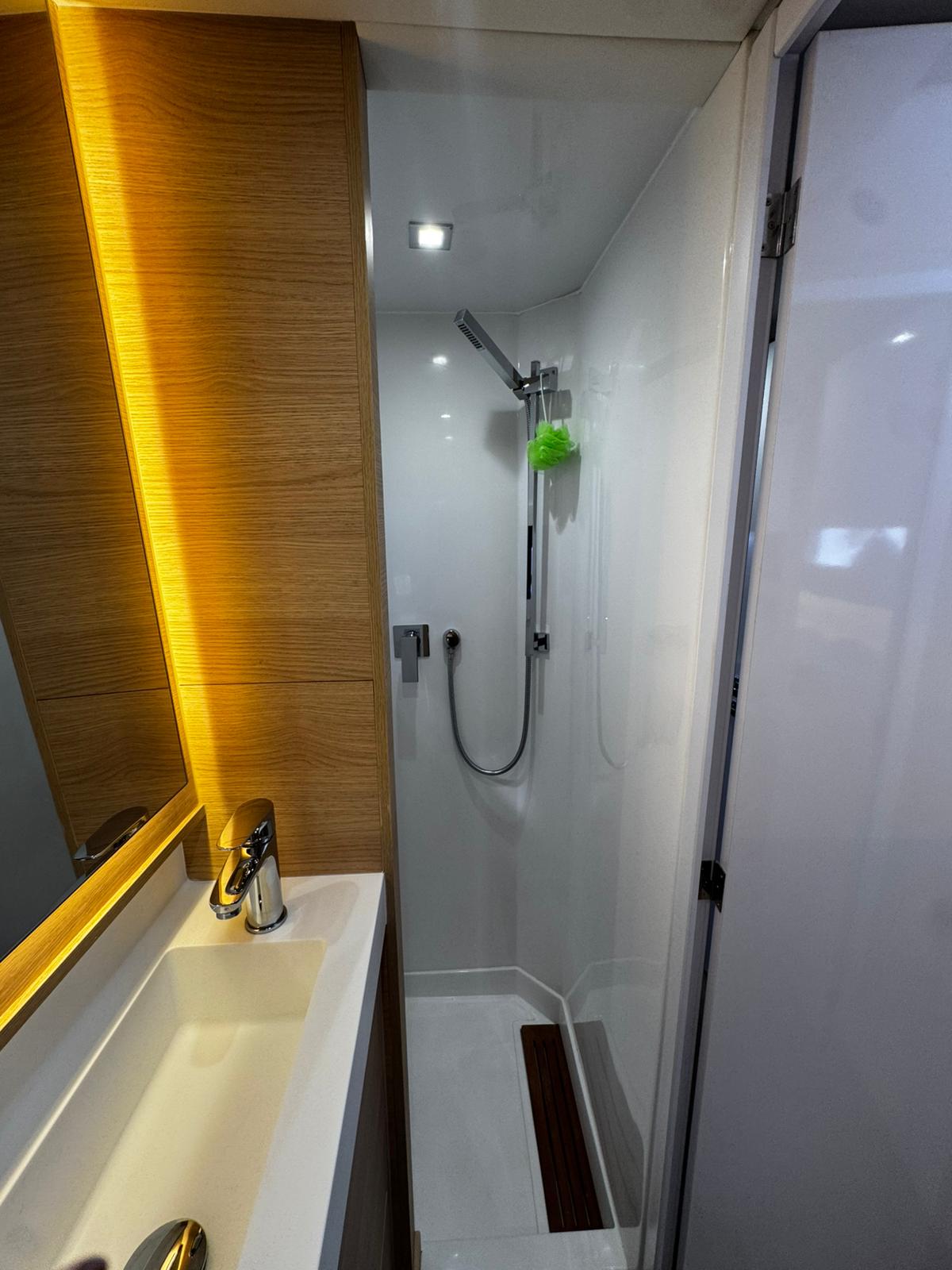 Cockpit speakers, Radio, Pillows, Shower outside, Sprayhood, Freezer, Swimming ladder, Gangway, Oven and 2 burner stove, Kitchen equipment, Casse bluetooth, Cockpit cushions, Electric WC (2)