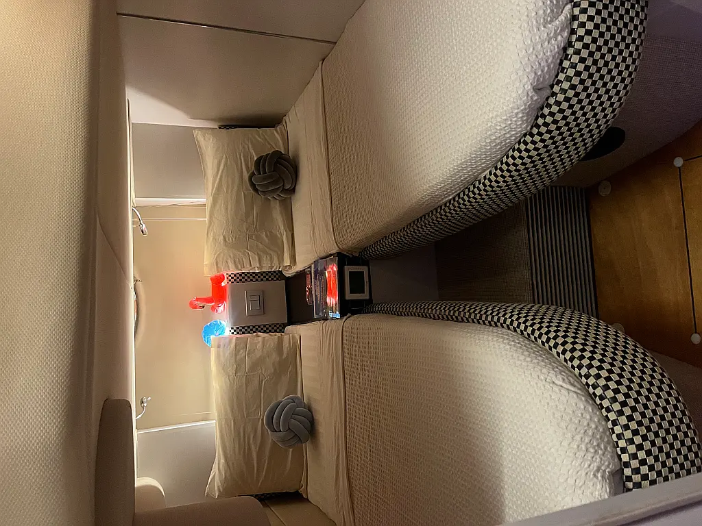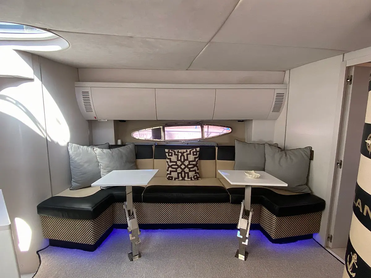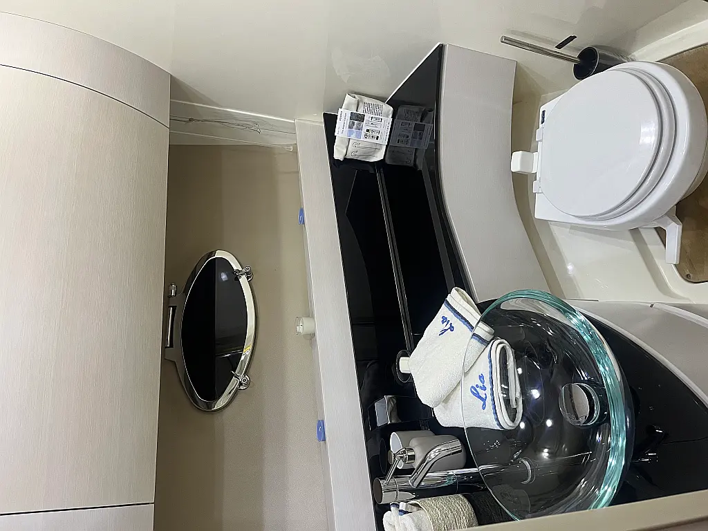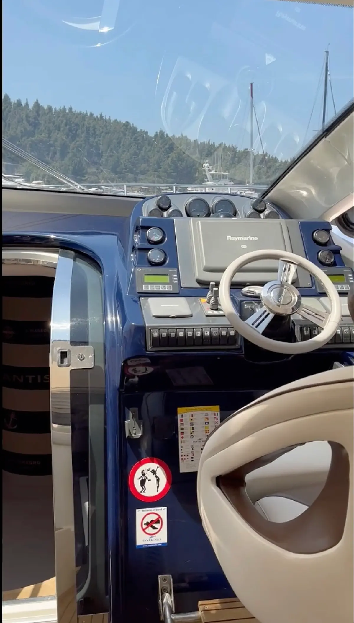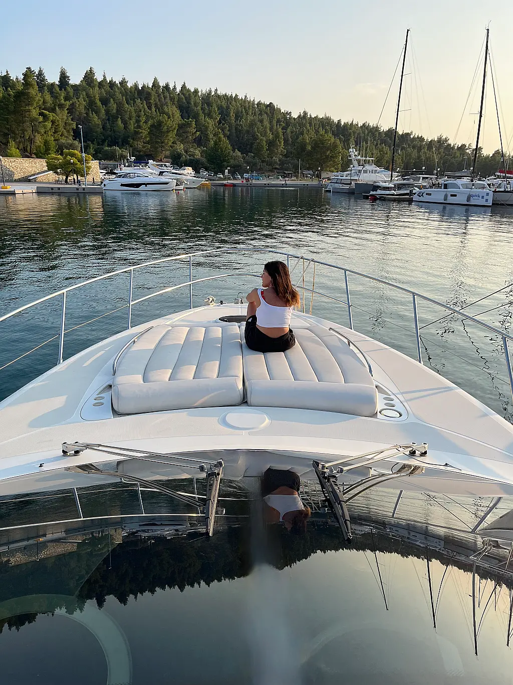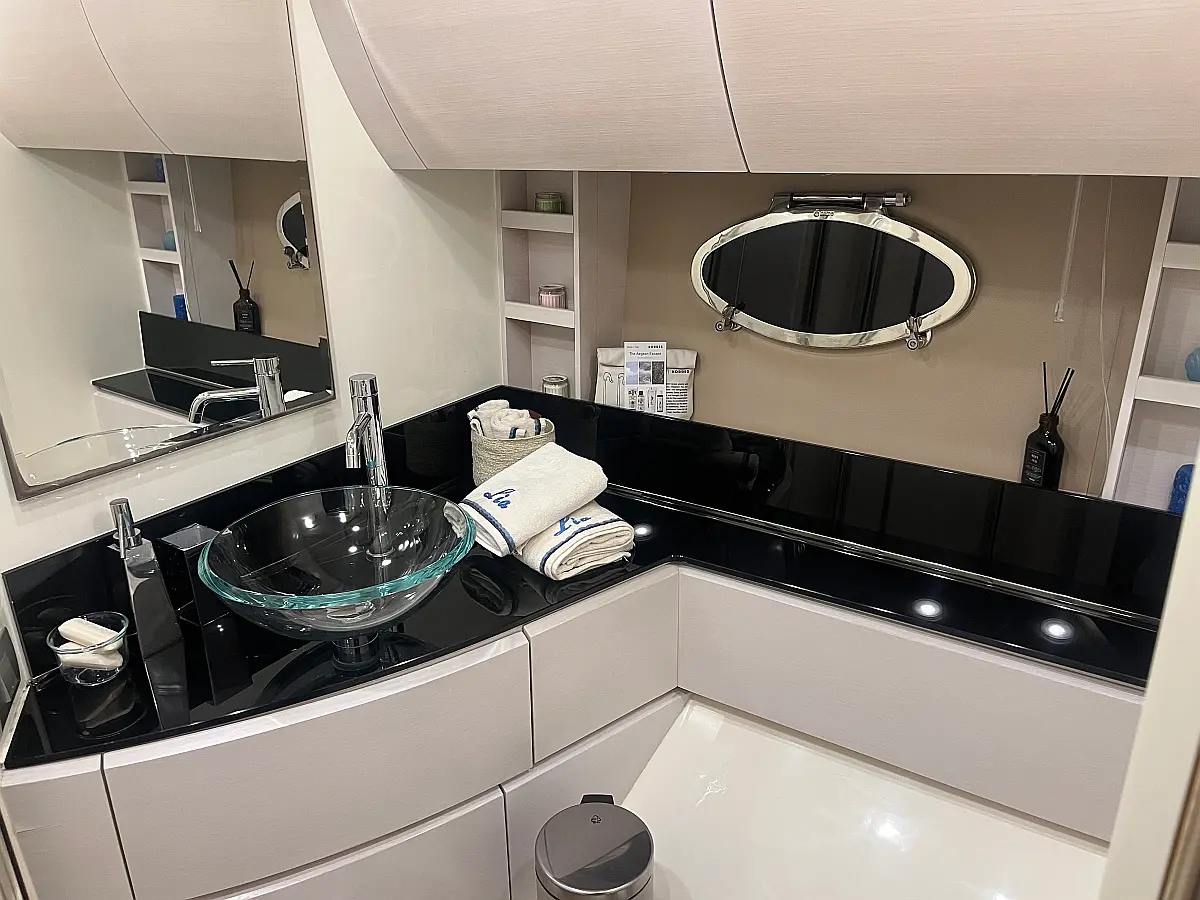 Bow thrust, TV, VHF, Fridge, Air condition, Microwave, Generator, Stereo surround system, Electric bilge pump, Manual Bilge pump, Heating, Inverter, Radar, Aft shower, Cockpit table, Sun cushions in stern, bow and in cockpit, Deep freezer, Swimming Ladder, Grill, Electric Platform, Stern thruster, Electric windlass, Bow solarium