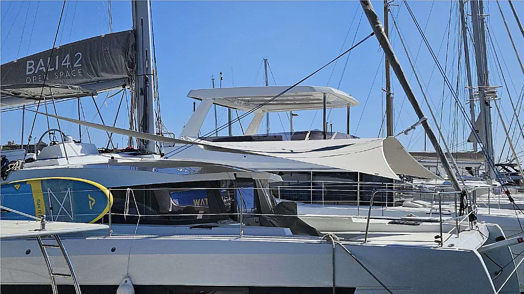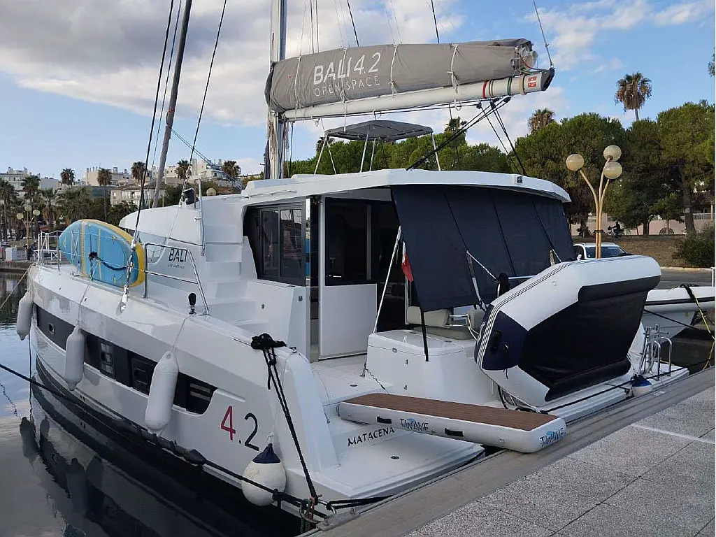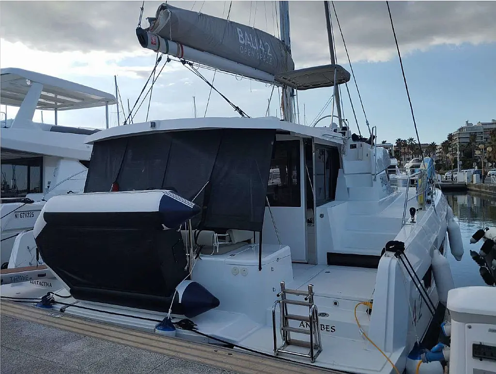 Air conditioning, Watermaker, TV, Solar panels, Bimini