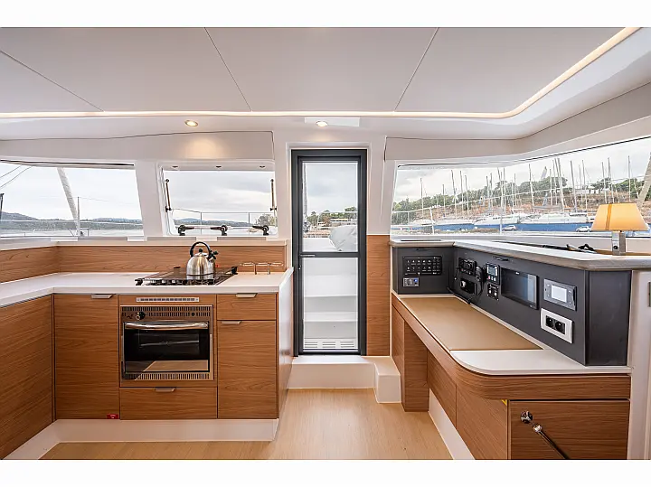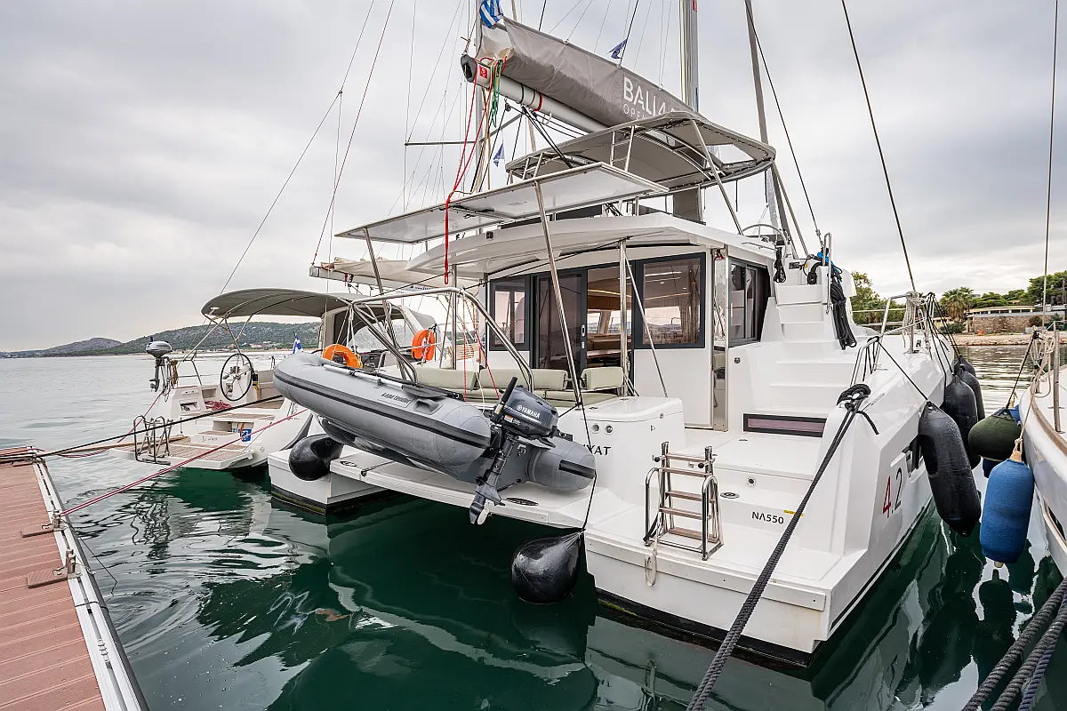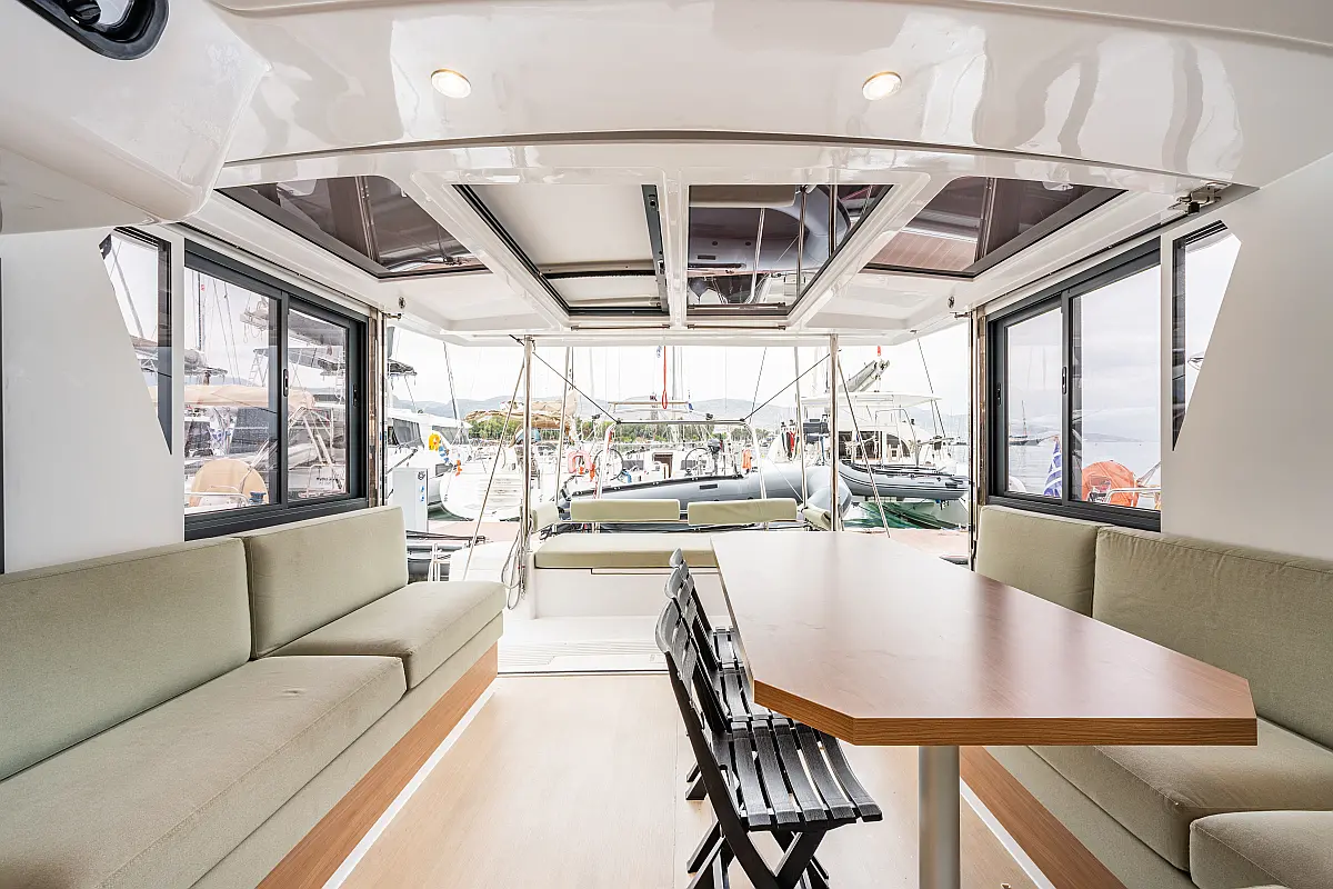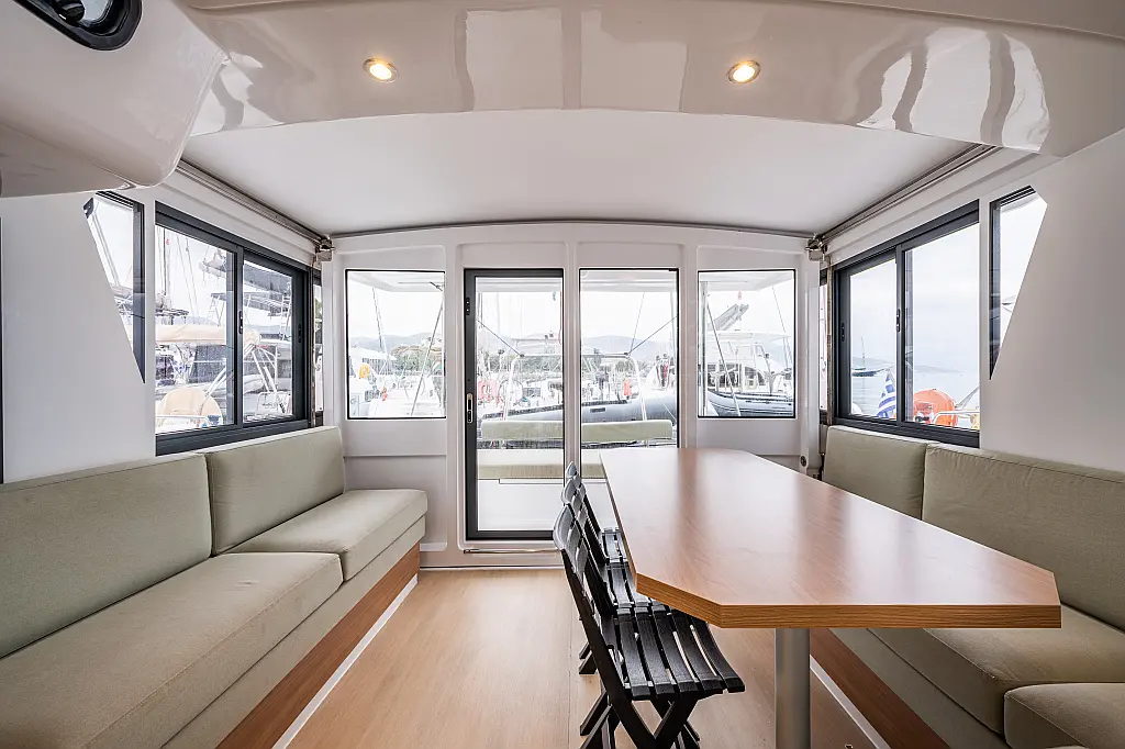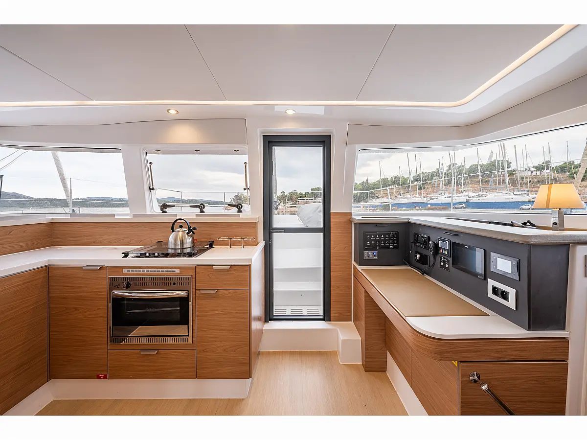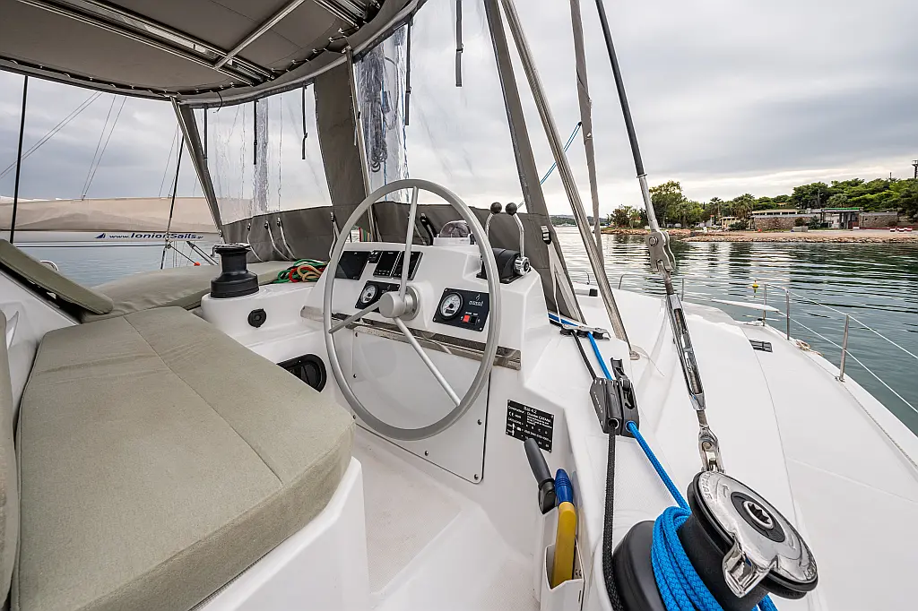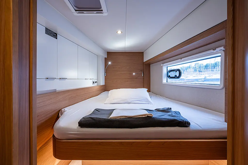 Skipper Cabin (1), Cockpit fridge, Cooking utensils, Crockery&Cutlery, Echo-sounder, Sea charts, Wind speed, Log, GPS, Cockpit control panel, Plotter, Hand bearing compass, Main compass, Box of flares, Inflatable life raft, Navigation lights, Bosuns chair, Holding Tank, Cockpit table, Bimini, Tools, Gas bottle, USB Chargers in every cabin, Fans in every cabin, Full Safety Equipment, Self Tacking Jib, Bridge GPS Plotter