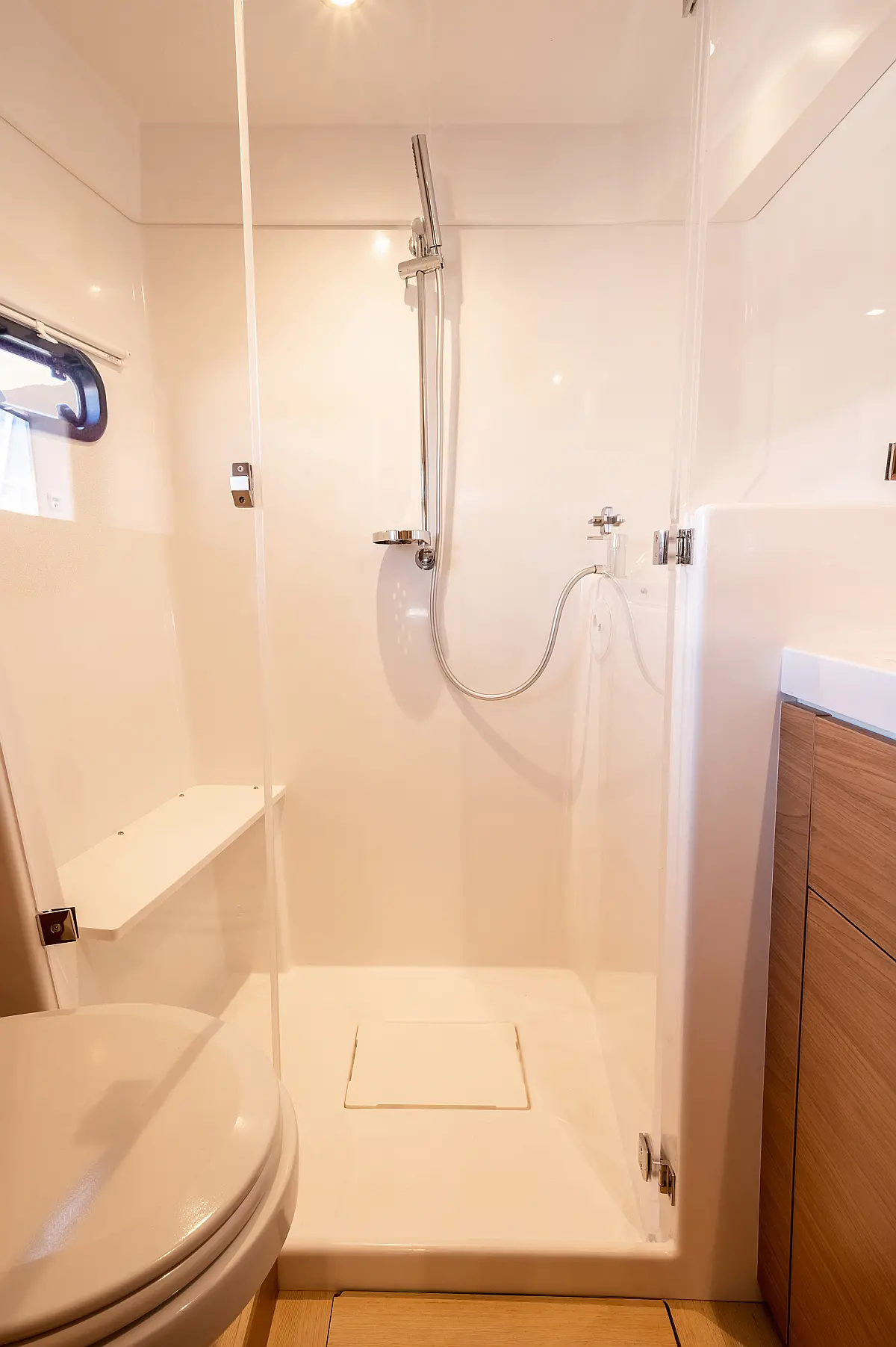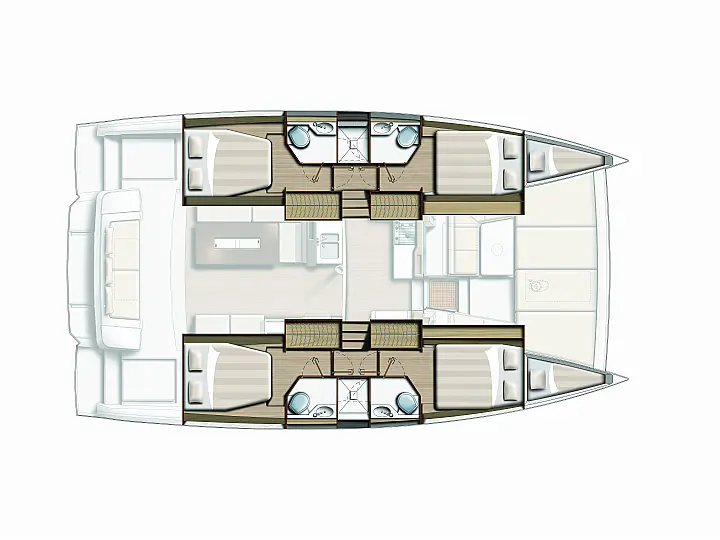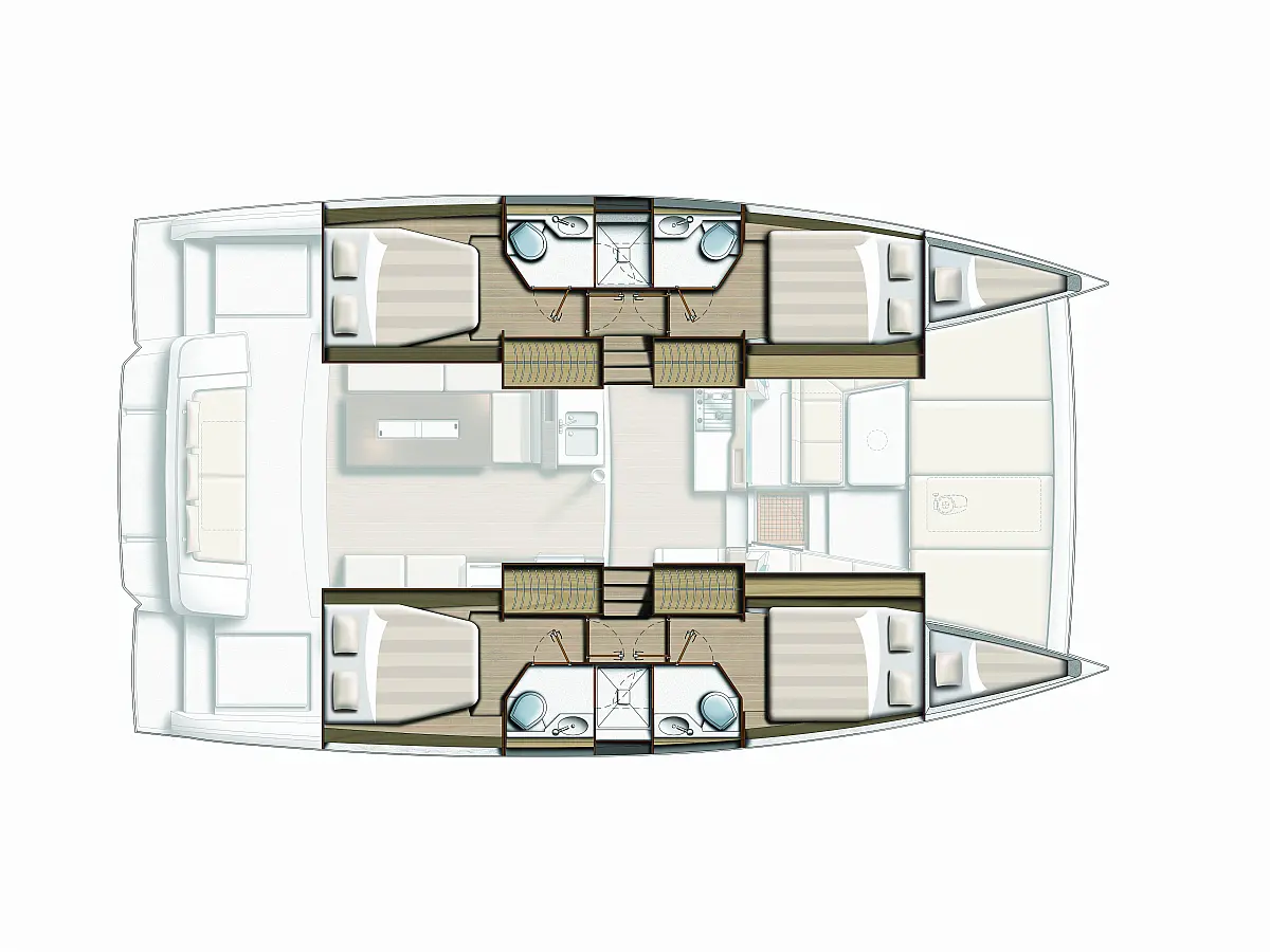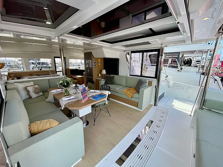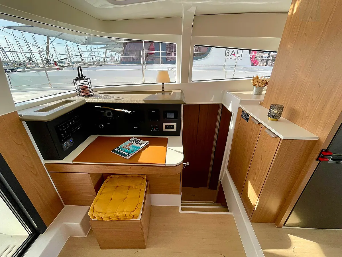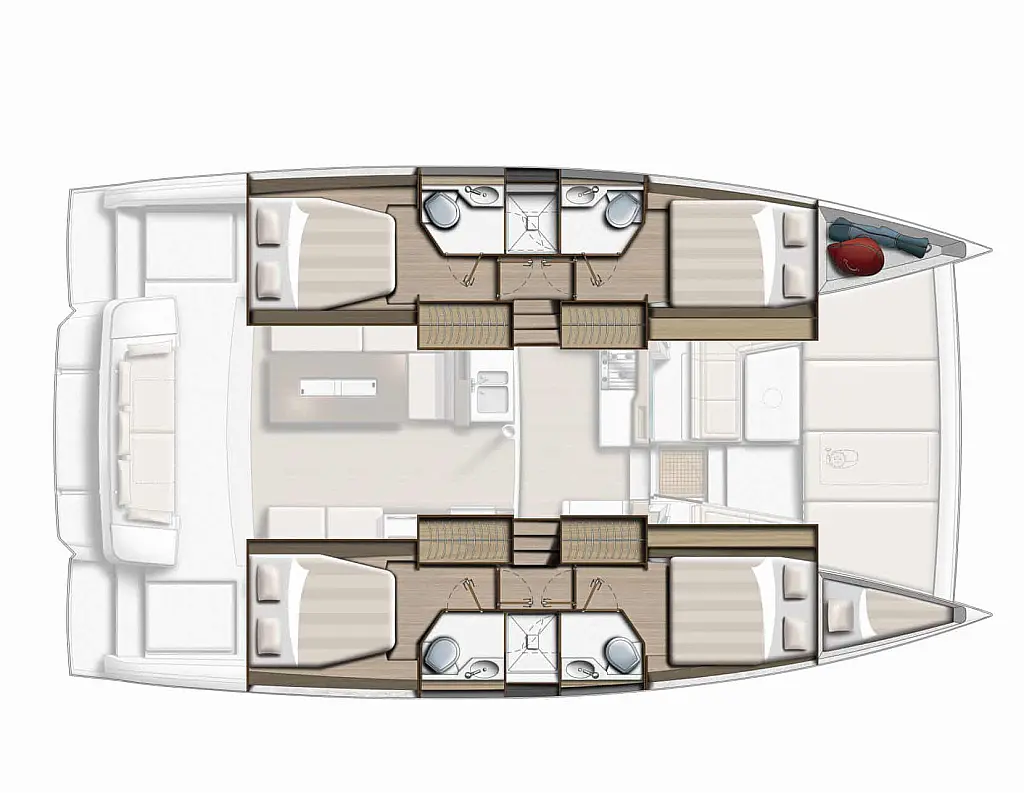Fridge, Freezer, Electric winch, Electric windlass, Cockpit cushions, Autopilot, Chart plotter, VHF, 12V/230V converter, Fresh water purifier filter, Courtesy lighting in cockpit / saloon, Gas oven, Swim ladder, Cockpit shower, Safety equipment, Watermaker 65L/h, Air condition, Plancha, Genset
