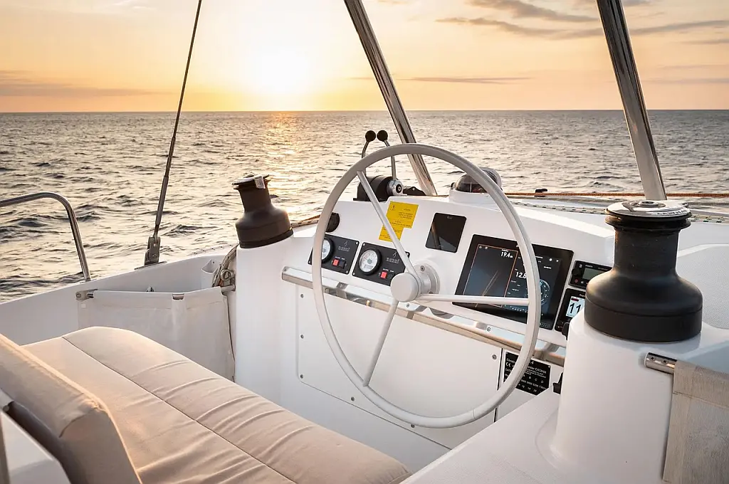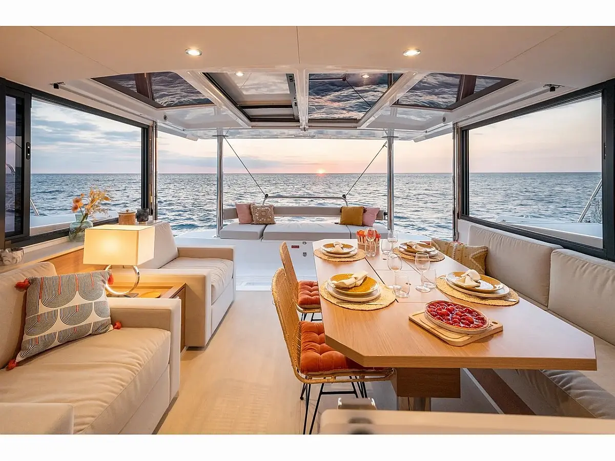 Nespresso machine, Electric toilet, Inverter, Generator (Onan 13kw), Air Condition (5), Sprayhood, Electric Anchor winch, Autopilot, Dinghy, Solar panels, Refrigerators (2), Teak deck, Electric back door, Heating, Hydraulic gangway, Water maker (200lt/h), Electric Instruments, Electric winch for Mainsail & Genoa, GPS Plotter Inside, Microwave oven, GMS Plotter on cockpit, Steering wheel, Lazy bag, VHF, AIS, Club saloon version (Club lounge seat in place of port saloon bench seat (2 armchairs opposite each other and an additional lamp + footstool), Mast lights -Spreader lights, Blue LED underwater lighting under each sugarscoop, Electric davits for tender