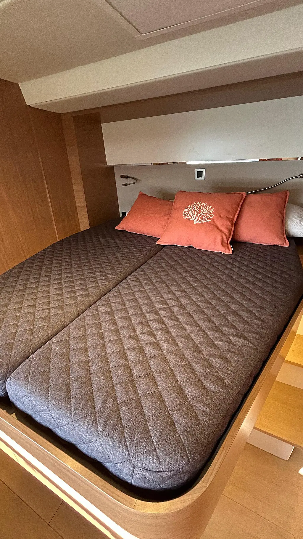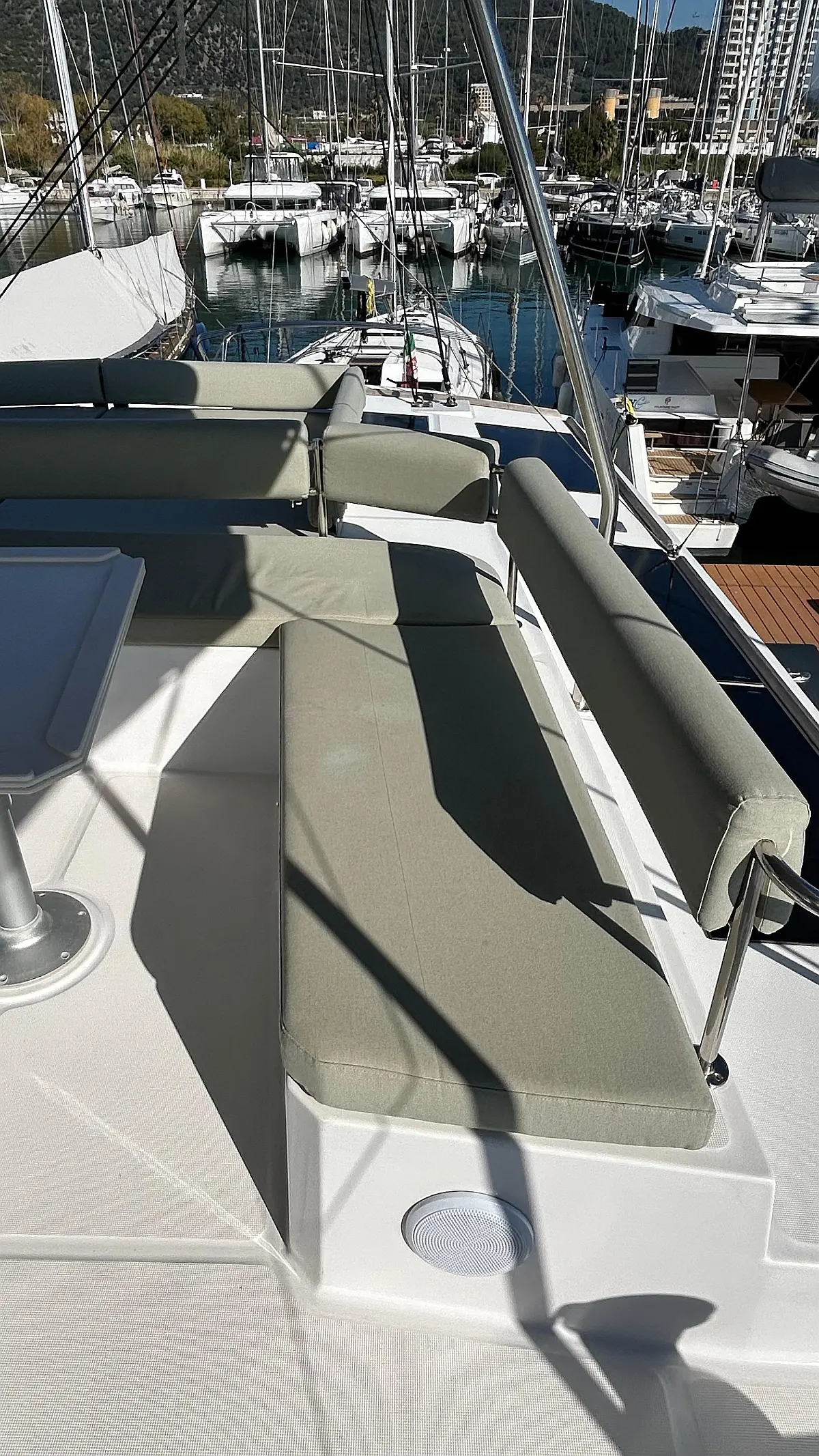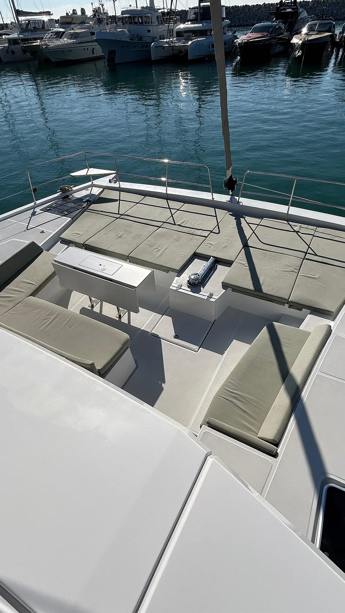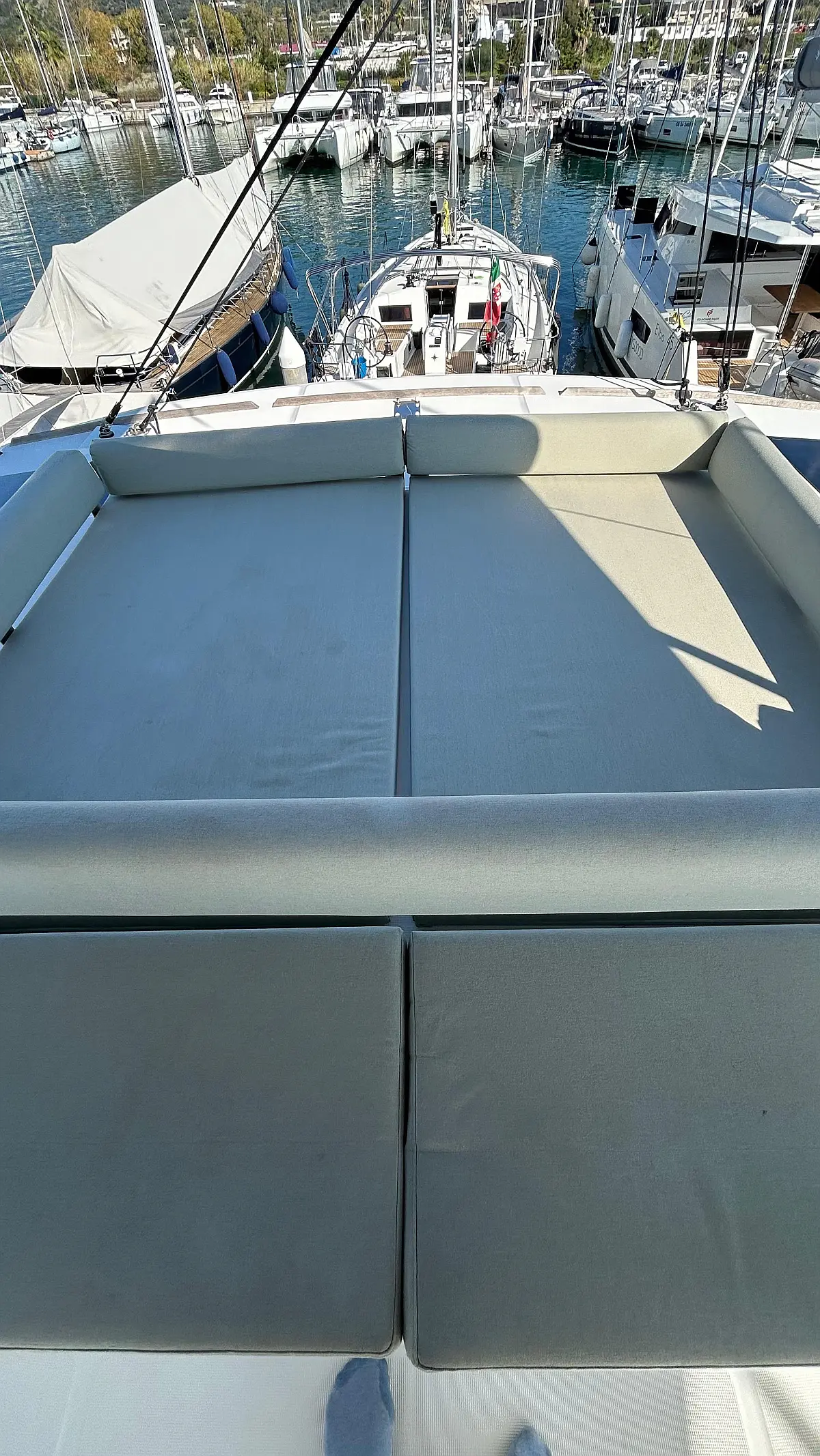 Bimini, Watermaker, Blankets (1), Cockpit speakers, Radio with CD, USB, Shower outside, Freezer, Barbecue, Oven and 3 burner stove, Swimming ladder, Kitchen equipment, Air Conditioning Cabins, Casse bluetooth, Cockpit cushions, Cushions, Electric WC (6), Generator, Internal USB outlets in cabin, Ice machine