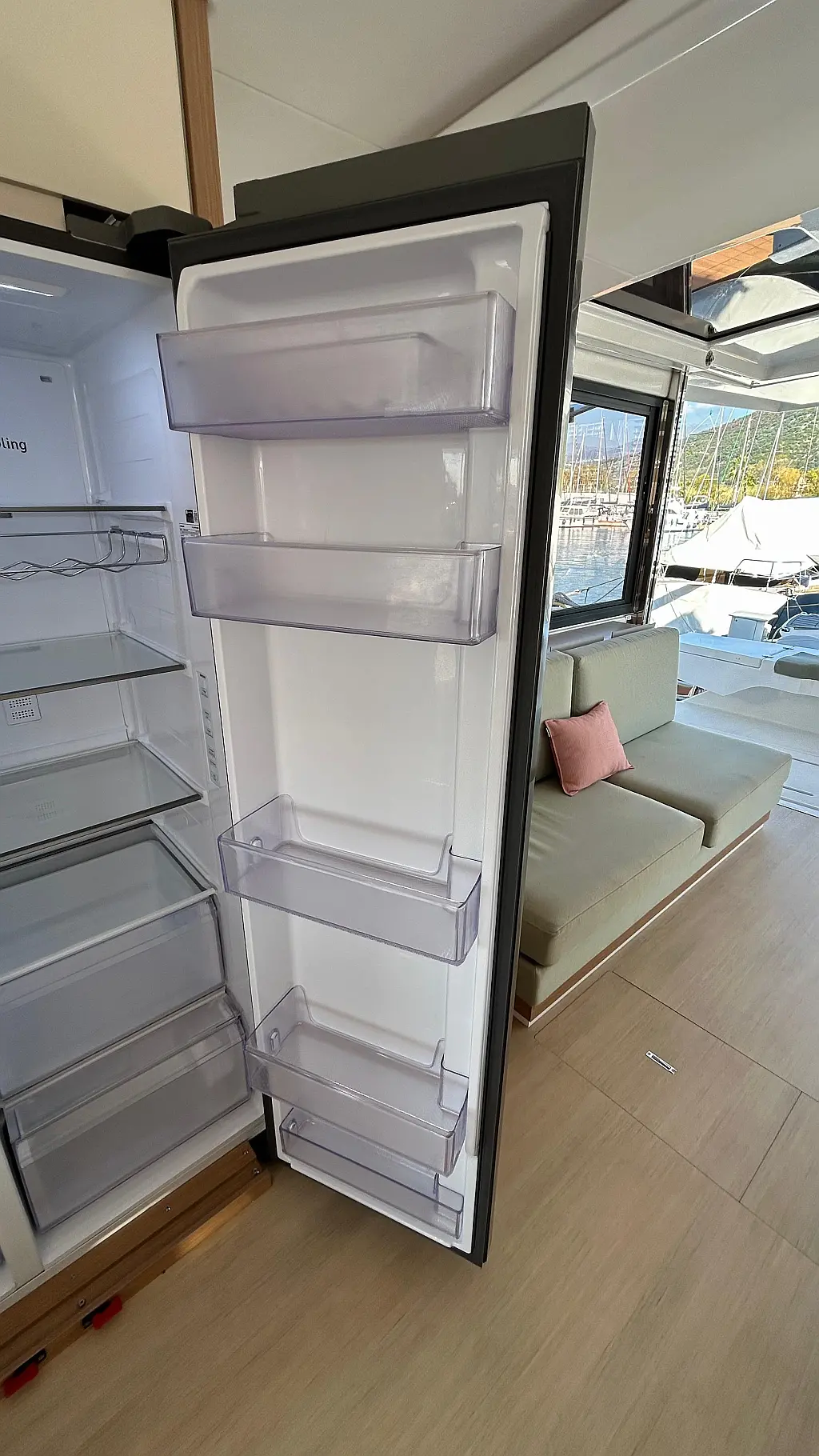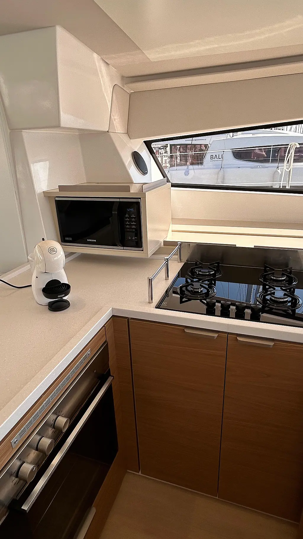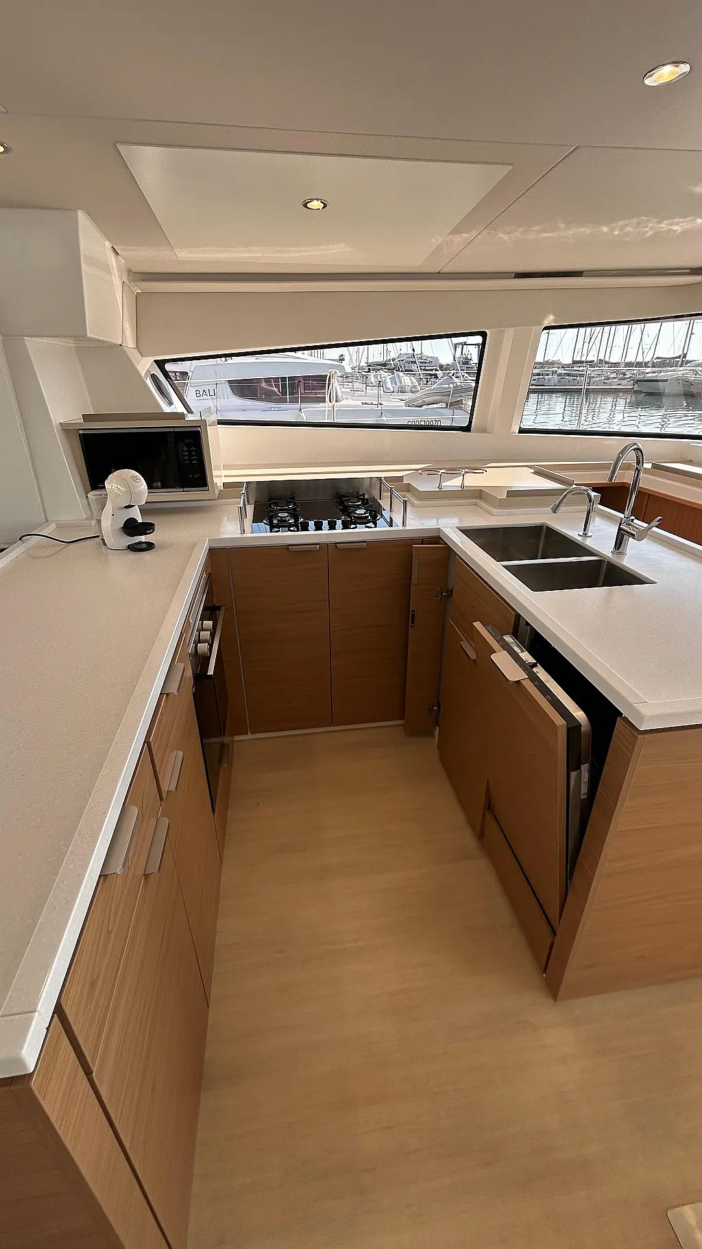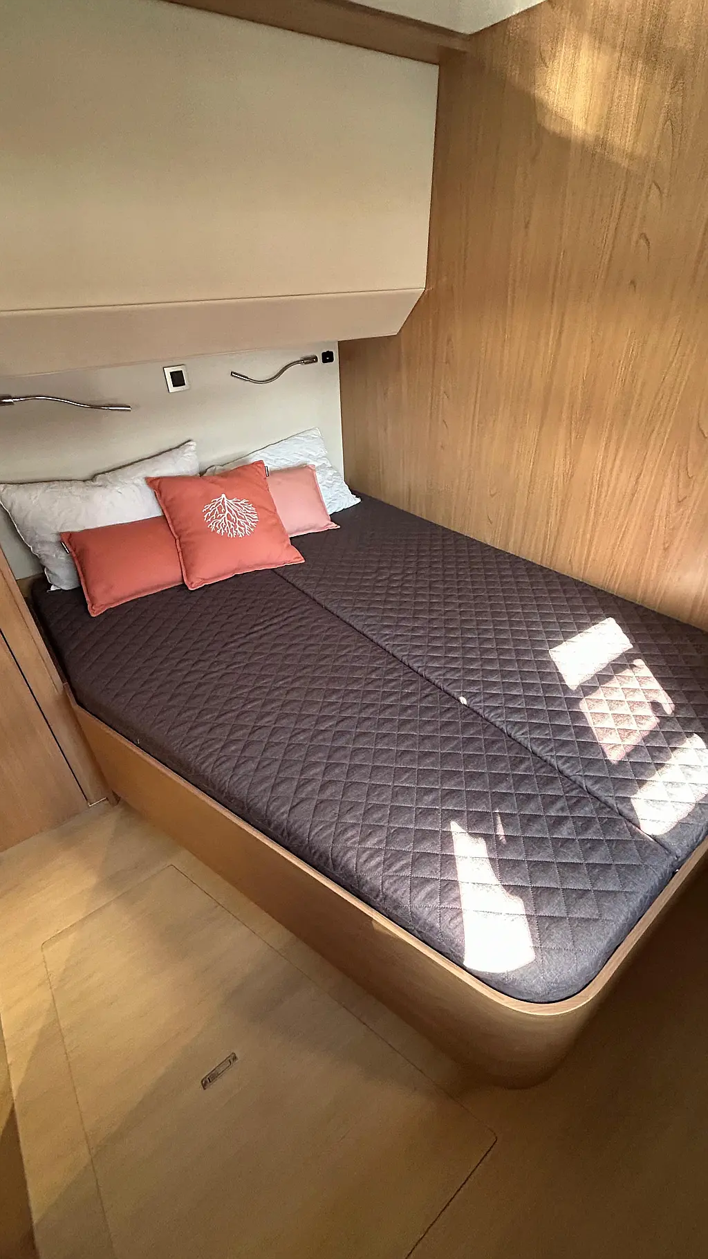 Bimini, Watermaker, Blankets (1), Cockpit speakers, Radio with CD, USB, Shower outside, Freezer, Barbecue, Oven and 3 burner stove, Swimming ladder, Kitchen equipment, Air Conditioning Cabins, Casse bluetooth, Cockpit cushions, Cushions, Electric WC (6), Generator, Internal USB outlets in cabin, Ice machine