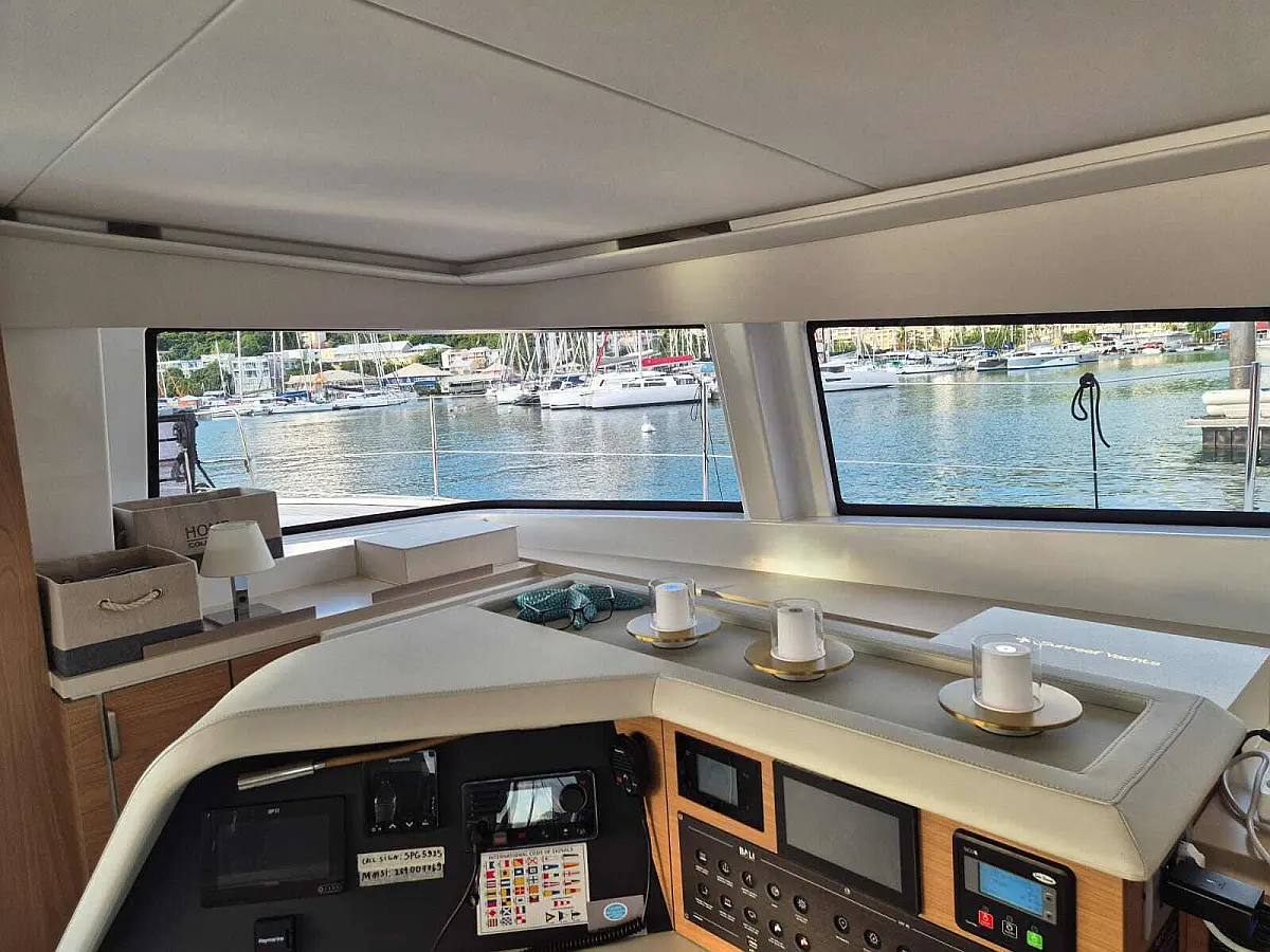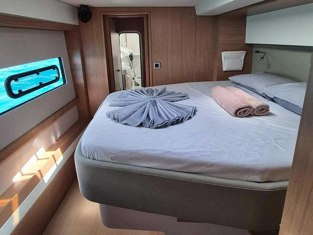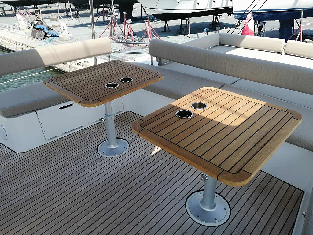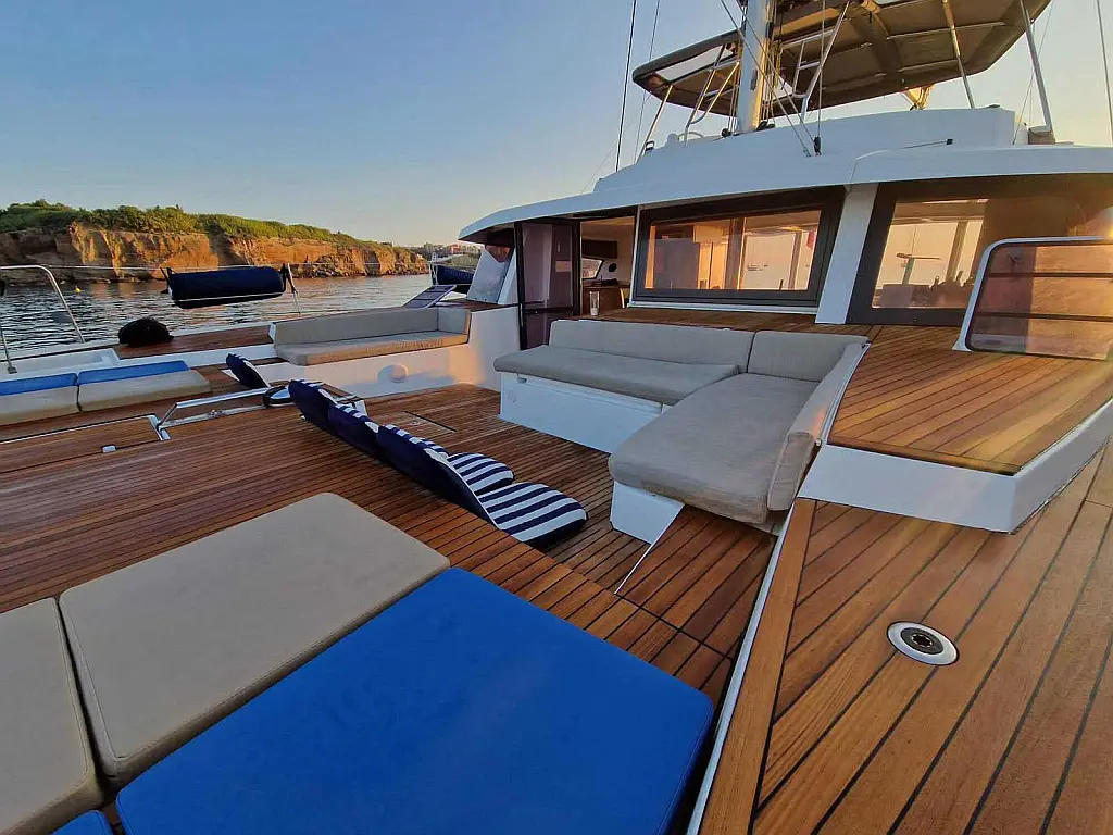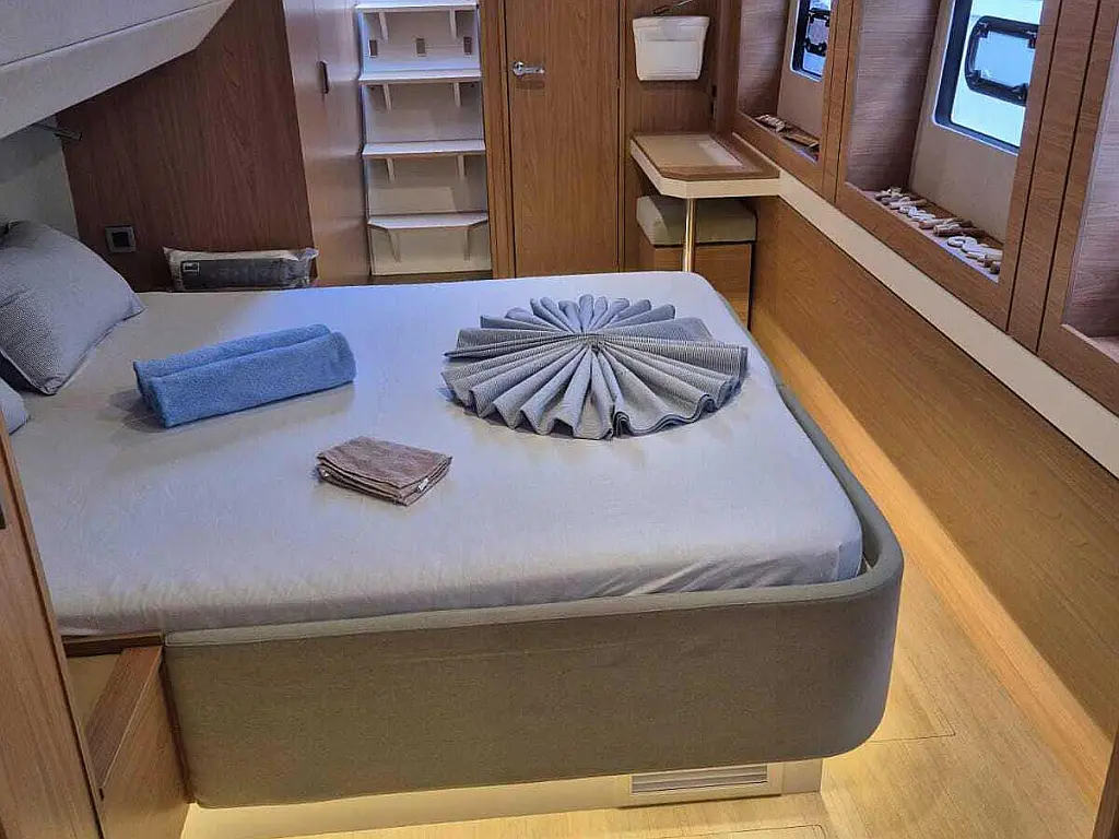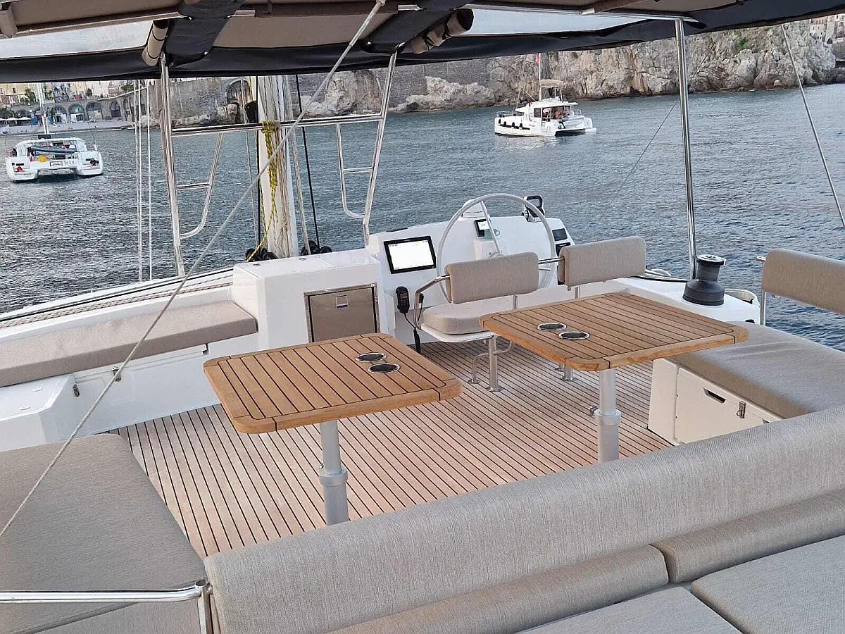 Cockpit cushions, 12V socket, Cockpit table, Air condition, Dinghy, Dishwasher, Electric anchor windlass, Freezer, Refrigerator, Fans, Fishing rods, Fully equipped kitchen, Generator, BBQ, Bluetooth Radio, Nespresso coffee machine, Snorkeling equipment, SUP, Teak deck, TV, Underwater scooter, Teak cockpit, Washing machine, Water maker, Water toys