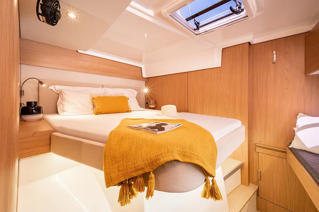 Fridge, Freezer, Electric winch, Electric windlass, Cockpit cushions, Autopilot, Chart plotter, VHF, 12V/230V converter, Fresh water purifier filter, 12V - 130 amp gel service batteries, Gas oven, Swim ladder, Cockpit shower, Safety equipment, Watermaker 65L/h, Solar pannels, Air condition, Plancha, Genset