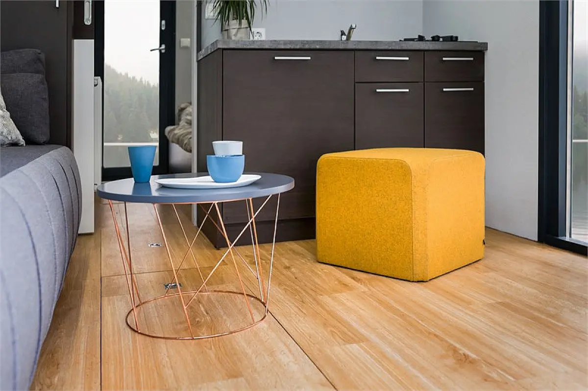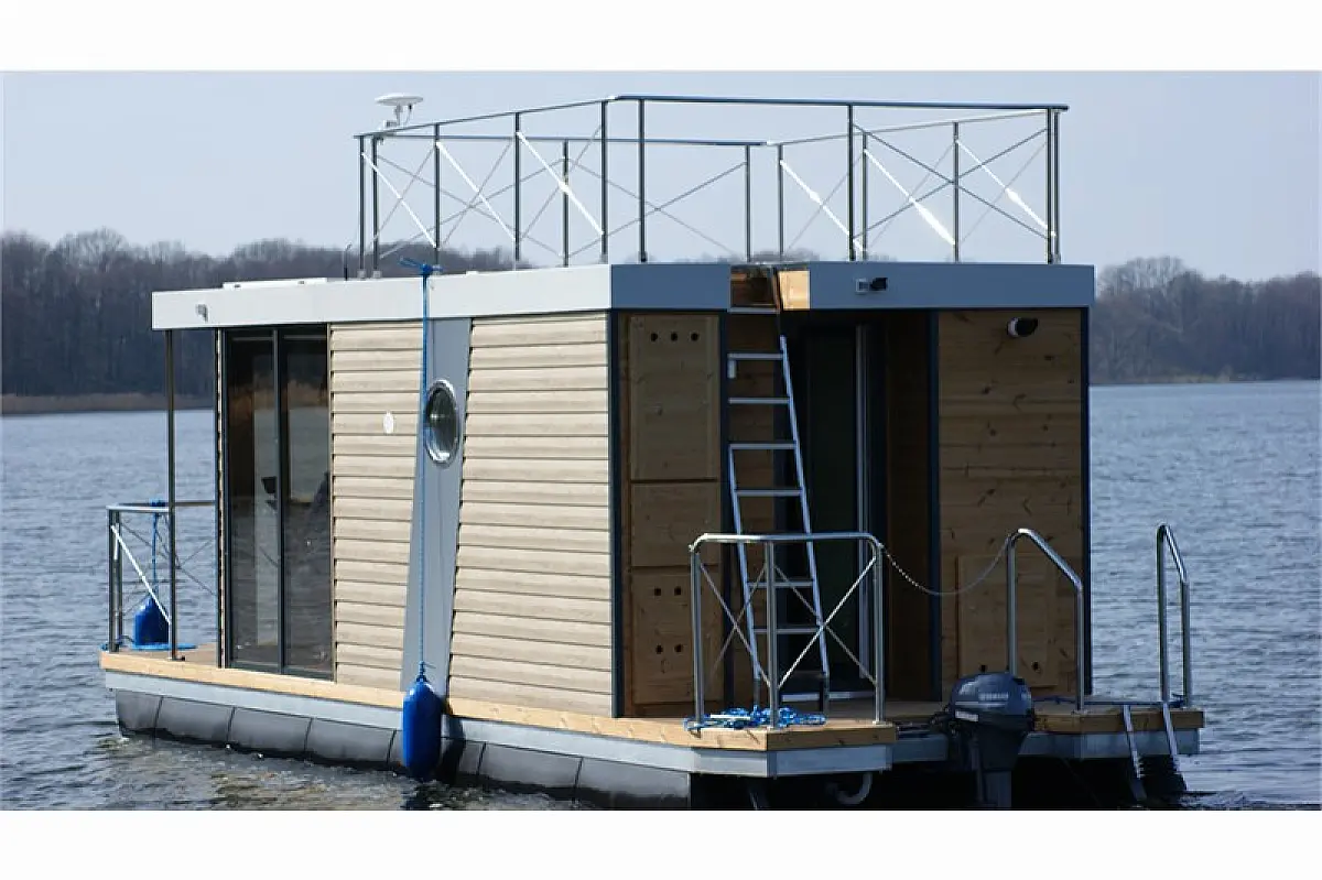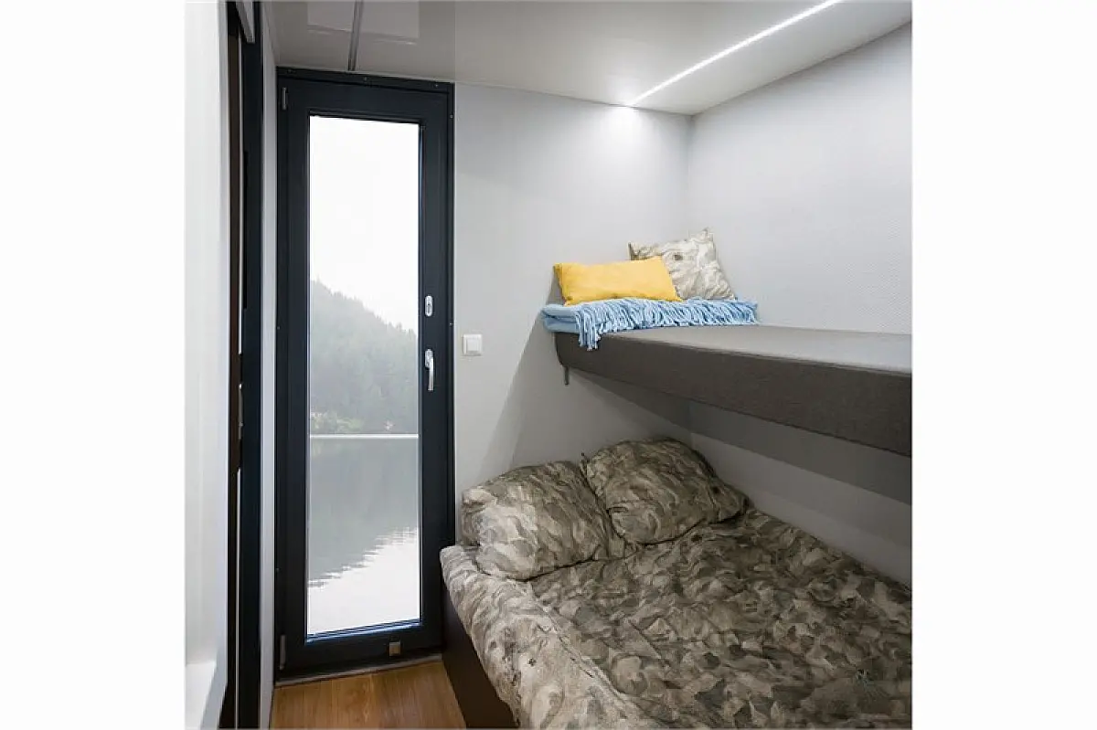 Kitchen cabinets, Sink, Bathing platform, Outboard engine, Gas stove, Sofa bed, Wardrobe, LED lighting built into the ceiling plating, Water pressure pump, Gas furnace, Hot water and heating radiators, Solar panels 2 x 250 W, Solar inverter 3 KW