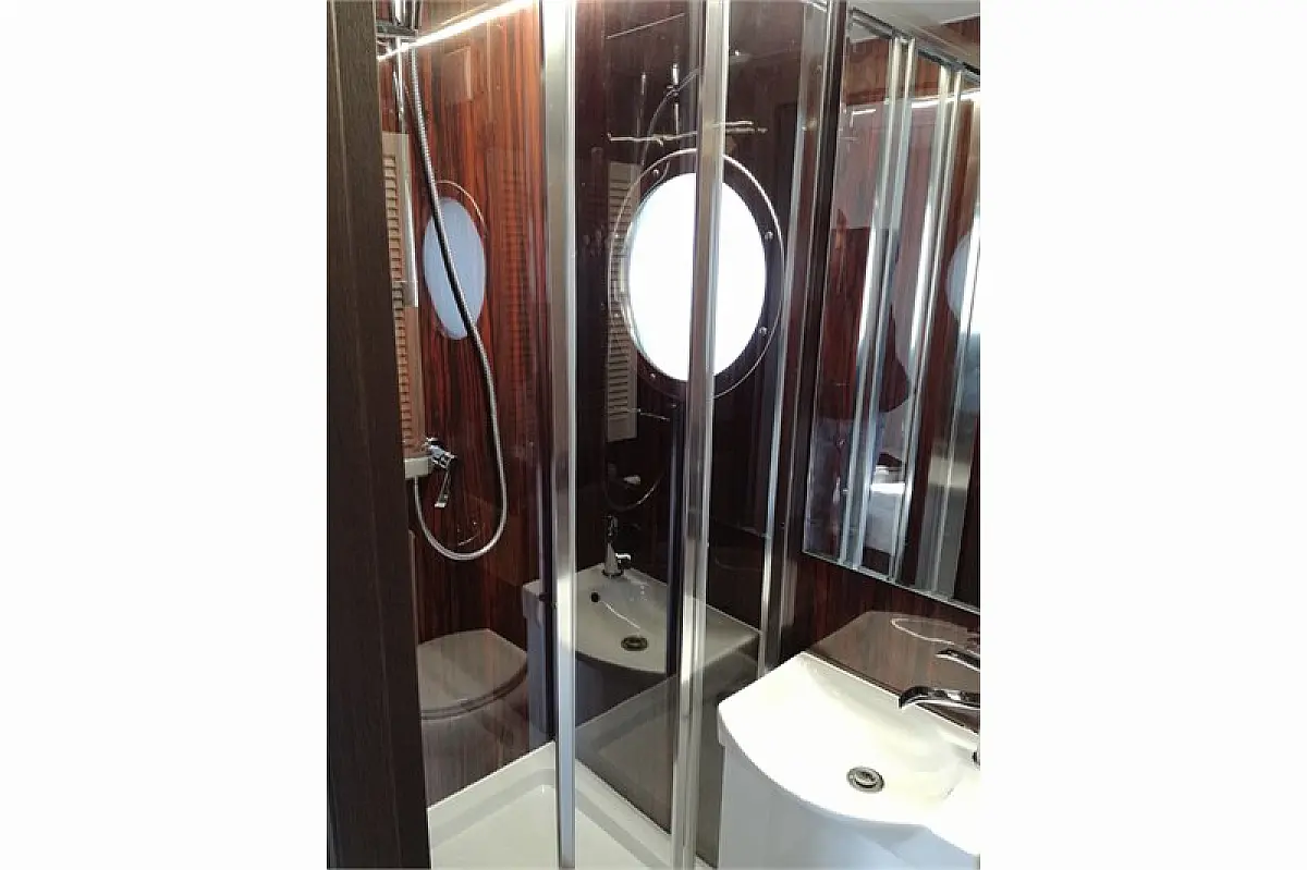 Electric Flush Toilet, Heating, Hot Water, Inverter, TV, Stove, 220 Volt Socket, Holding Tank, Shore Cable, Swimming ladder, Electric Fridge, Solar panel